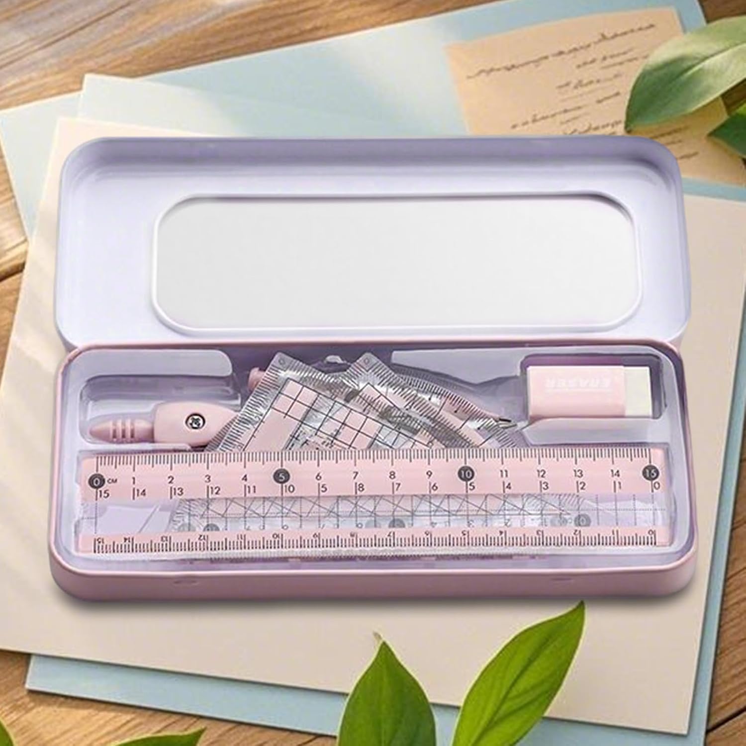 Attrezzatura Essenziale: Il set di geometria con compasso e goniometro offre misurazioni esatte grazie alle scale dettagliate, supportando progetti scolastici e compiti a casa per risultati di apprendimento efficienti Set completo cancelleria: Il set geometria offre una collezione di articoli di cancelleria ben organizzata che soddisfa le esigenze degli studenti; la fusione di praticità e design contemporaneo lo rende adatto all'uso quotidiano, garantendo che sia un eccellente regalo per il rientro a scuola per giovani studenti alle prese con compiti di geometria Designo pratico di archiviazione: Il kit di geometria offre una soluzione funzionale con scomparti ben divisi che contengono saldamente un set di 8 strumenti, prevenendo la perdita degli e garantendo organizzazione per un accesso immediato quando riposto in zaini o cassetti, ideale per studenti e creativi che necessitano avere gli strumenti sempre a portata di mano durante progetti o lezioni Design Creativo Giovanile: Il set di geometria mostra motivi geometrici accattivanti abbinati a un tema bicromo trasparente, ottenendo un effetto colorazione fashion che stimola l'interesse degli adolescenti durante lo studio. Design per concentrazione: Le scale a contrasto morbido migliorano la visibilità riducendo l'abbagliamento, favorendo un utilizzo confortevole durante attività dettagliate come compiti di geometria o esercizi di disegno tecnico