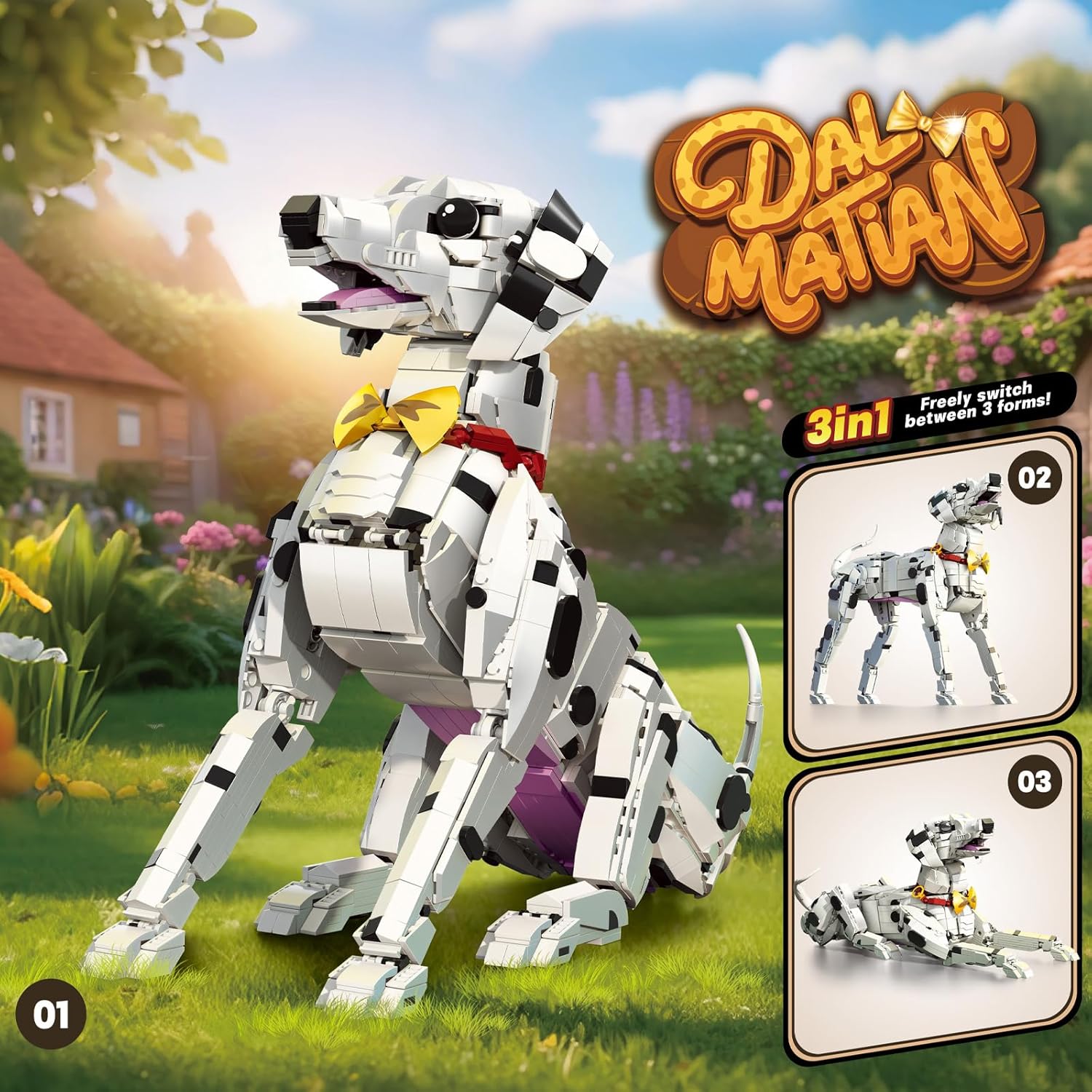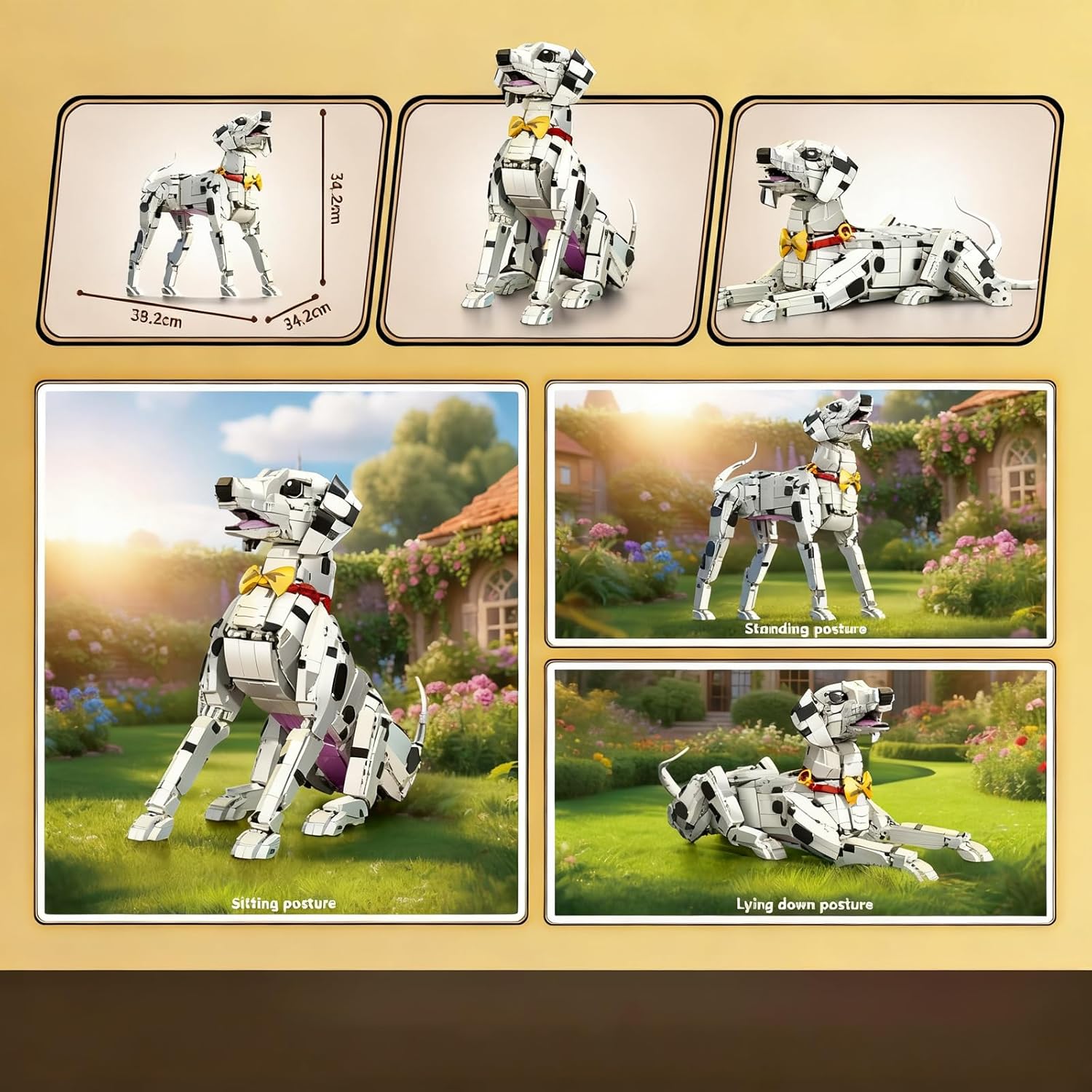 Design dalmata trasformabile 3 in 1: costruisci un adorabile dalmata che può alternare tre pose realistiche! Questo innovativo set da 1869 pezzi consente al tuo cucciolo maculato di stare in piedi, sedersi o sdraiarsi e assumere varie posizioni naturali del cane con incredibile precisione e fascino. Caratteristiche realistiche ed espressione adorabile - Con grandi occhi espressivi che scioglieranno i cuori e un elegante papillon giallo intorno al collo! Questo dalmata dal volto nobile unisce un aspetto elegante ad una personalità giocosa ed è un compagno irresistibilmente dolce che porta sempre gioia. Movimento flessibile degli arti: goditi le gambe completamente articolate che si muovono liberamente per assumere le pose naturali del cane! Grazie agli snodi flessibili, potrai posizionare il tuo dalmata in varie pose realistiche, facendolo apparire vivo, come se la sua coda scodinzolasse da un momento all'altro. Esperienza di costruzione di prima classe: con 1869 componenti di alta qualità, questo sofisticato modello crea un impressionante pezzo da esposizione che misura 38,2 × 19,9 × 34,2 cm! Perfetto per i costruttori adulti che cercano un progetto gratificante che celebri il migliore amico dell'uomo sotto forma di mattoncini. Il regalo perfetto per gli amanti dei cani - Il regalo ideale per gli amanti della dalmata, i proprietari di cani e i costruttori di hobby! Questo cucciolo maculato di facile manutenzione non richiede passeggiate o cure, ma offre semplicemente un divertimento infinito e un'aggiunta decorativa a qualsiasi casa o ufficio.