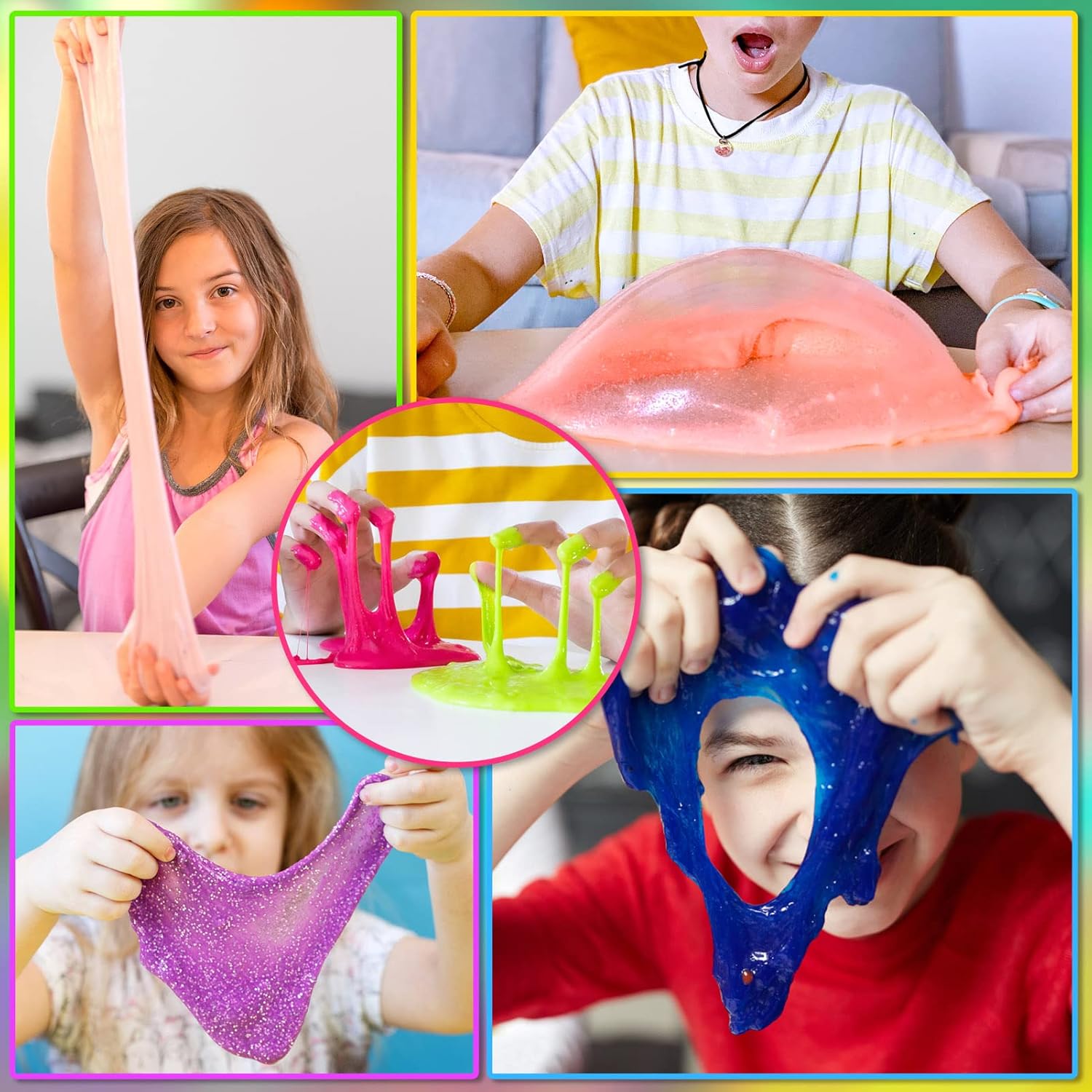 Il set di slime fatto in casa contiene tutto il necessario per tenere occupati ragazzi e ragazze per ore e ore Aumenta la creatività del tuo bambino e lo aiuta a sviluppare le abilità motorie e a migliorare la coordinazione occhio-mano Abbastanza forniture di slime per fare il tuo slime. è un modo gratuito per creare emozionanti progetti di slime e arte Raccomandato dai 6 anni in su Adatto per il gioco al chiuso
