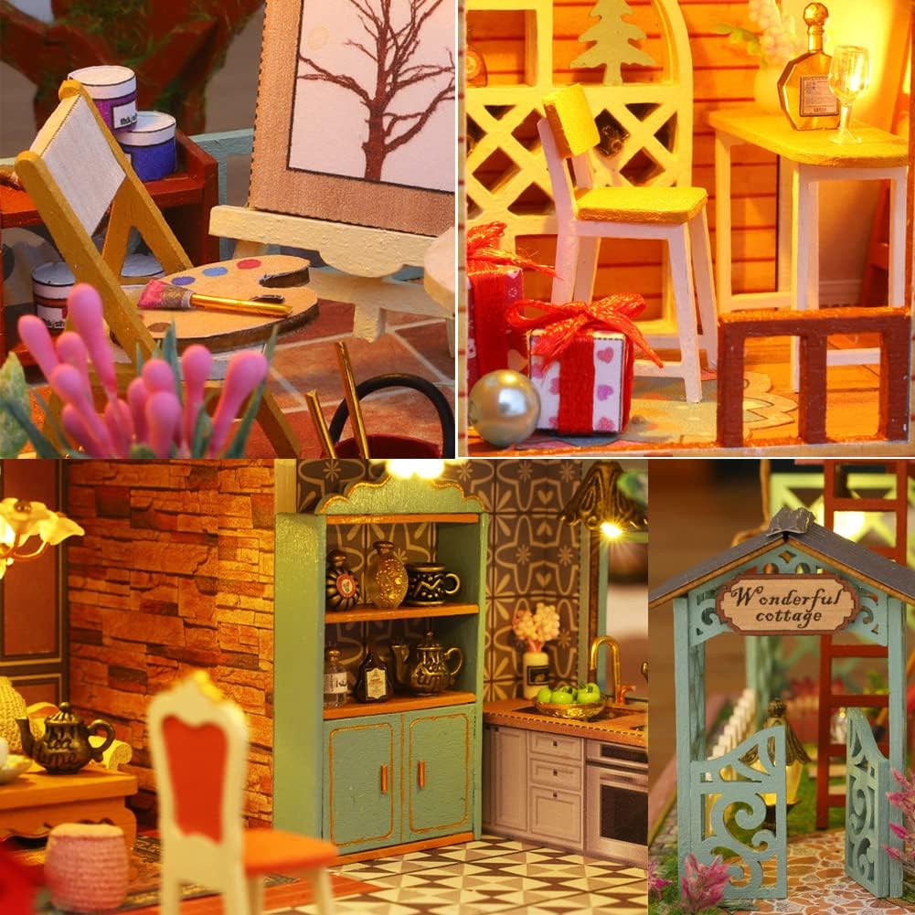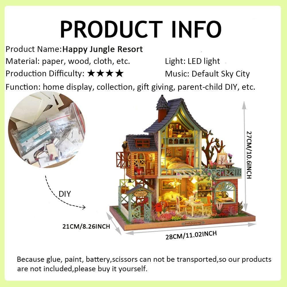 Questa casa delle bambole 3D è realizzata in legno di alta qualità e tutti i componenti dei mobili sono realizzati a mano, inclusi taglio, cucitura e incollaggio. Lintero processo richiede circa 1-2 ore. Il processo di creazione stimola la pazienza e le abilità pratiche, stimolando al contempo la creatività e il pensiero logico. Questa casa delle bambole in miniatura è un regalo ideale per feste e compleanni, perfetta per Natale, il Ringraziamento o anche per un compleanno. È sia un bellissimo elemento darredo che un prezioso ricordo. Il design raffinato evoca la sensazione di essere trasportati in un rifugio nella giungla. In questa casa in miniatura, puoi goderti momenti di pace con il tuo amato animale domestico e apprezzare il romanticismo e la bellezza della natura. Il prodotto viene fornito con un dettagliato manuale di istruzioni a colori con chiare istruzioni passo passo e foto, rendendo il montaggio e il posizionamento di ogni componente semplici e divertenti. È disponibile una copertura antipolvere opzionale. Nota: utensili, colla e batterie non sono inclusi nella confezione (a causa delle restrizioni sui viaggi aerei). Fare riferimento alle informazioni sul prodotto per dimensioni e peso del prodotto finito. Se avete domande, non esitate a contattarci.