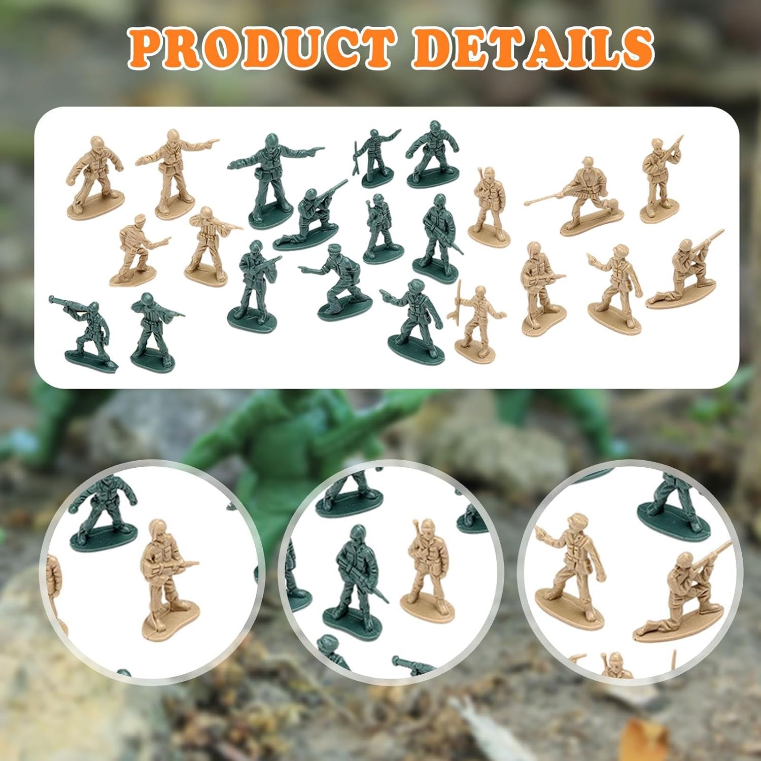 【Materiale premium】: realizzati in PP di qualità, questi modelli di soldati in scala 1/72 sono progettati per resistere a ore di gioco, garantendo divertimento a lungo termine per il tuo bambino 【Istruttivo e divertente】: questo set di mini figure di soldati è anche un ottimo strumento educativo per imparare a conoscere diversi tipi di soldati e attrezzature 【Il generoso set include 100 mini soldati】: il pacchetto contiene 100 figure di soldati in scala 1/72, che creano ampie scene di battaglia o possono essere combinate con altri set per possibilità ancora più divertenti 【Set di gioco coinvolgente】: questo kit di modelli di soldati in scala 1:72 offre una varietà di figure di soldati, consentendo ai bambini di creare i propri scenari di battaglia 【Dimensioni compatte per una facile maneggevolezza】: Ogni mini soldato è alto circa 2,5 cm/0,98 pollici, il che lo rende perfetto per le manine dei più piccoli durante il gioco