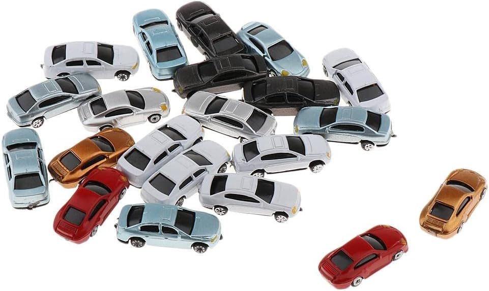 Veicoli in plastica di alta qualità per la decorazione della tavola di sabbia Perfetto per layout di treni in scala HO, repliche di auto in miniatura e decorazioni paesaggistiche per modellismo architettonico, mini kit da giardino fatato e miniature per auto Ideale per usi decorativi, paesaggi di parcheggio in scala e accessori per layout stradale Include 20 pezzi di modellini di auto in formato 1:100, 1:200 e 1:150 per un uso versatile
