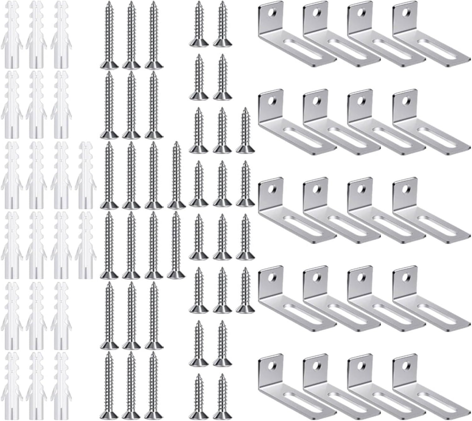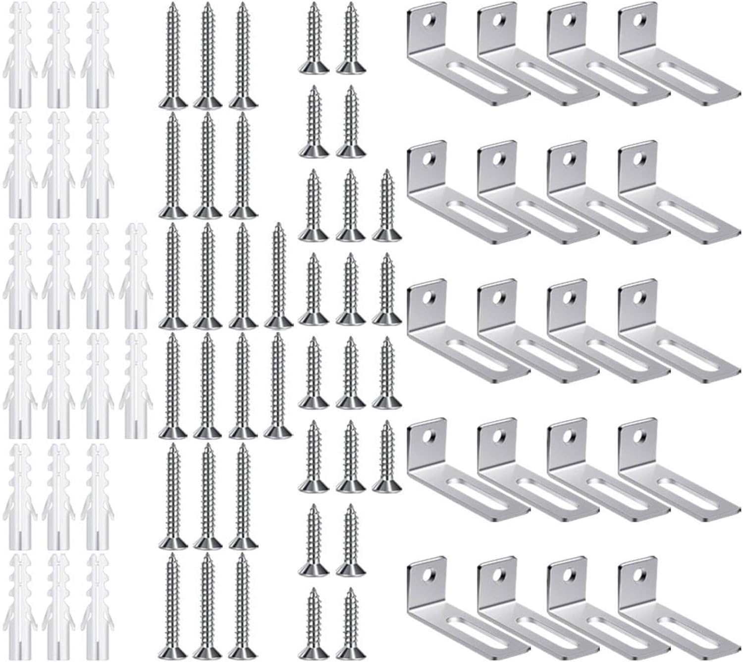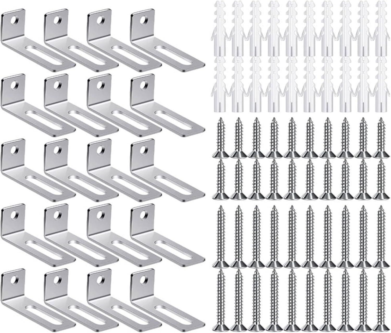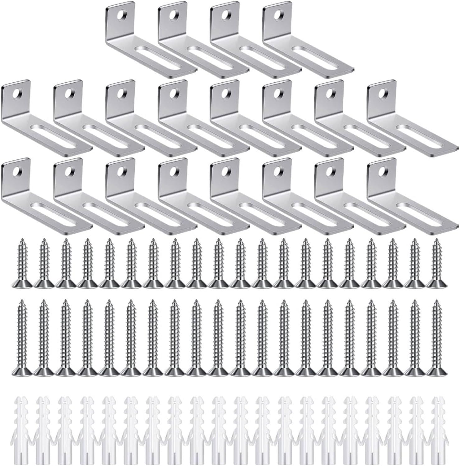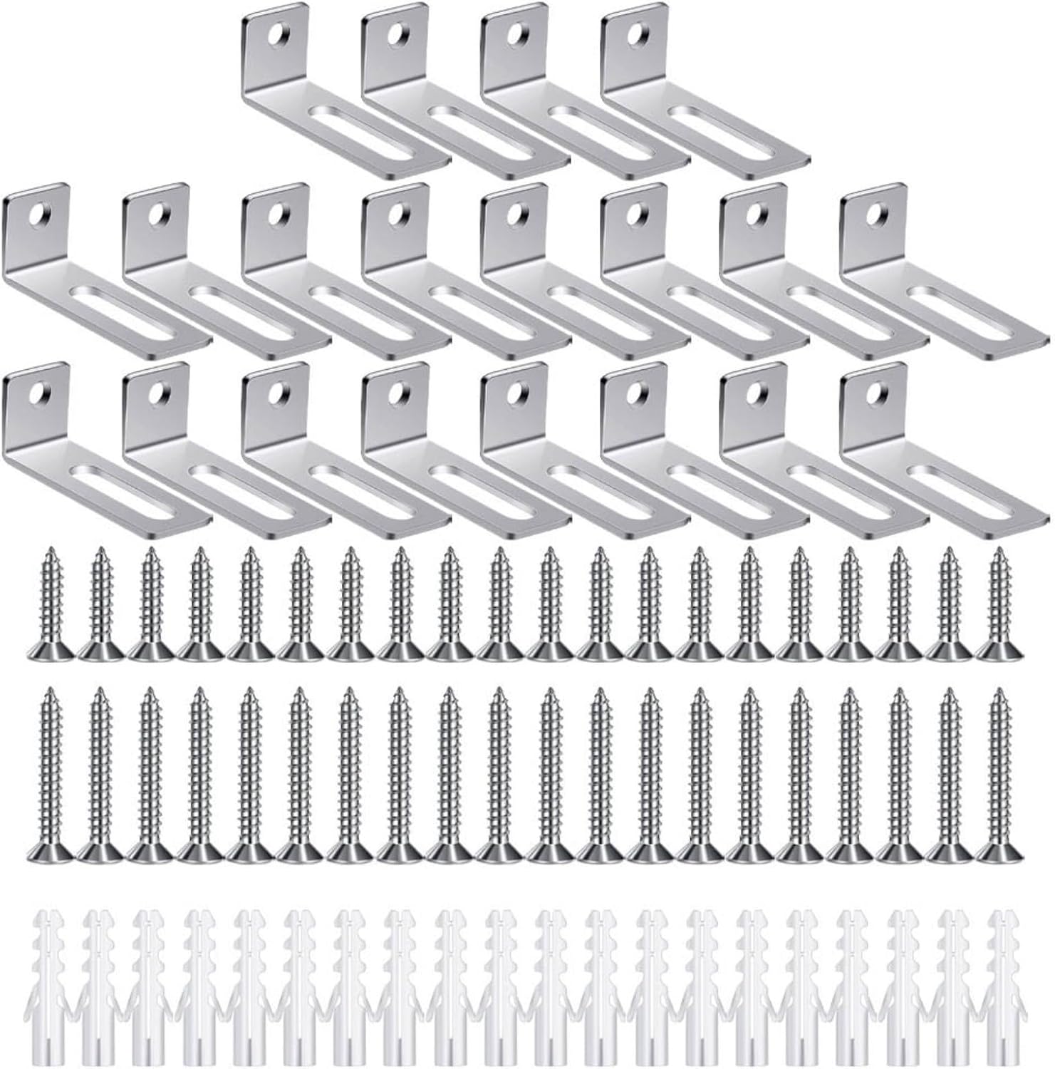 "Hardware di montaggio sicuro per lavagna bianca: il kit completo di montaggio a parete include 20 staffe ad angolo retto, 20 tubi di espansione, 20 viti corte e 20 viti lunghe per fissare saldamente la lavagna a una varietà di superfici murali a casa o in ufficio. Versatile kit di montaggio a parete: hardware di montaggio su scheda Progettato per adattarsi a una vasta gamma di dimensioni di scheda, questo set di staffe di montaggio si adatta a diverse esigenze di installazione, offrendo praticità per aule, sale riunioni e spazi di lavoro creativi. Installazione facile e veloce: fornito con istruzioni chiare e tutti i componenti necessari, questo hardware di montaggio per lavagna bianca consente di completare l'installazione in pochi minuti, senza la necessità di strumenti o abilità professionali. Materiali di lunga durata: realizzata in metallo robusto, ogni staffa di montaggio è costruita per sostenere il peso della lavagna resistendo all'usura nel tempo, offrendo prestazioni stabili e riducendo gli sforzi di manutenzione. Finitura elegante e pulita: il design hardware a basso profilo si fonde perfettamente nel tuo arredamento, consentendo alla tua lavagna di essere un punto focale funzionale ed elegante piuttosto che una distrazione visiva nel tuo spazio."