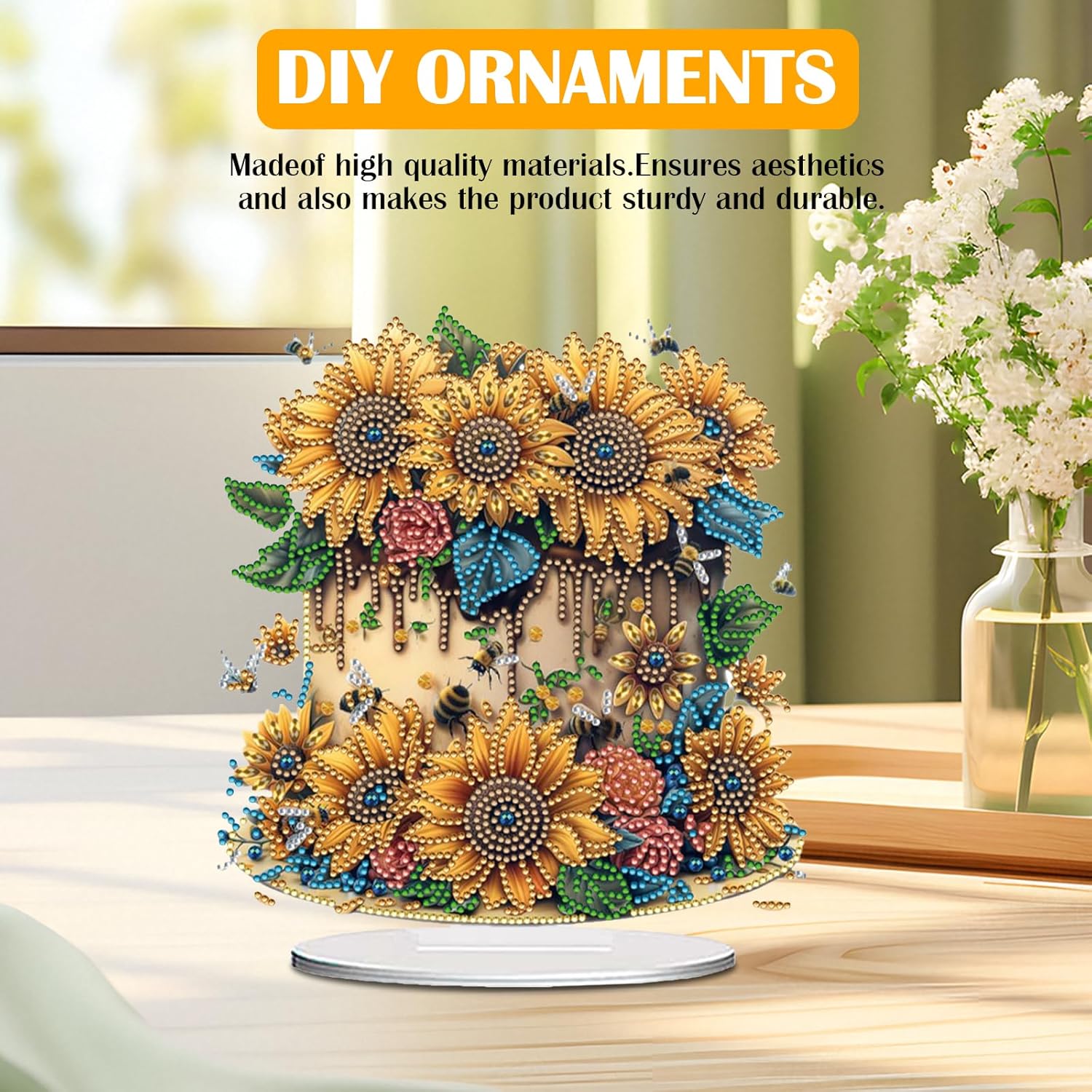 Flower Ornaments Kit Kit a doppio lato Tabella Top Ornament Kits Table Table Decor Decorazioni per la casa personalizzate: con le nostre decorazioni da tavolo da telaio 5D, hai l'opportunità di personalizzare l'arredamento della casa. Crea pezzi che riflettono il tuo stile e aggiungono un tocco speciale al tuo spazio abitativo. Ogni opera d'arte diventa un antipasto di conversazione e una parte amata della tua casa. Splendida opera d'arte in cristallo: il risultato finale è una straordinaria opera d'arte di ornamenti da tavolo da tavolo da tavolo che ti lascerà stupito. Questi ornamenti di pittura di diamanti aggiungono un tocco di eleganza e glamour in qualsiasi spazio. Visualizzali a casa tua o regalarli ai propri cari come regali unici e accattivanti. Crea una bella arte: le nostre decorazioni per desktop per diamanti per diamanti ti consentono di creare squisite opere d'arte per decorare la tua casa o regalare come regali fatti a mano. Simile alla pittura digitale, questo concetto di arte del diamante 5D prevede l'uso di un modello di adesivo numerato. Usa lo strumento per raccogliere e posizionare i diamanti in resina colorati sui corrisponde Rilassante e terapeutico: impegnarsi in questo tavolo che l'attività dei kit di ornamenti per la pittura di diamanti offre un'esperienza rilassante e terapeutica. Adatto ad adulti e principianti, fornisce un modo calmante e divertente per esprimere la creatività e rilassarsi dallo stress quotidiano.