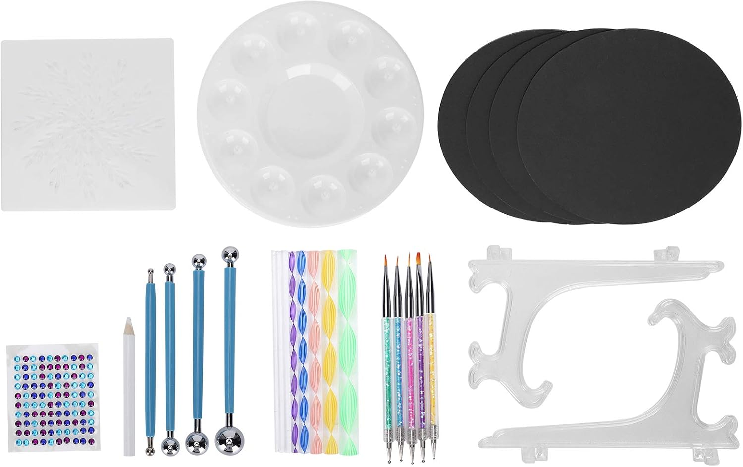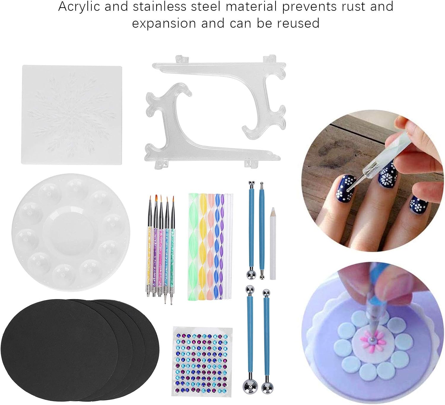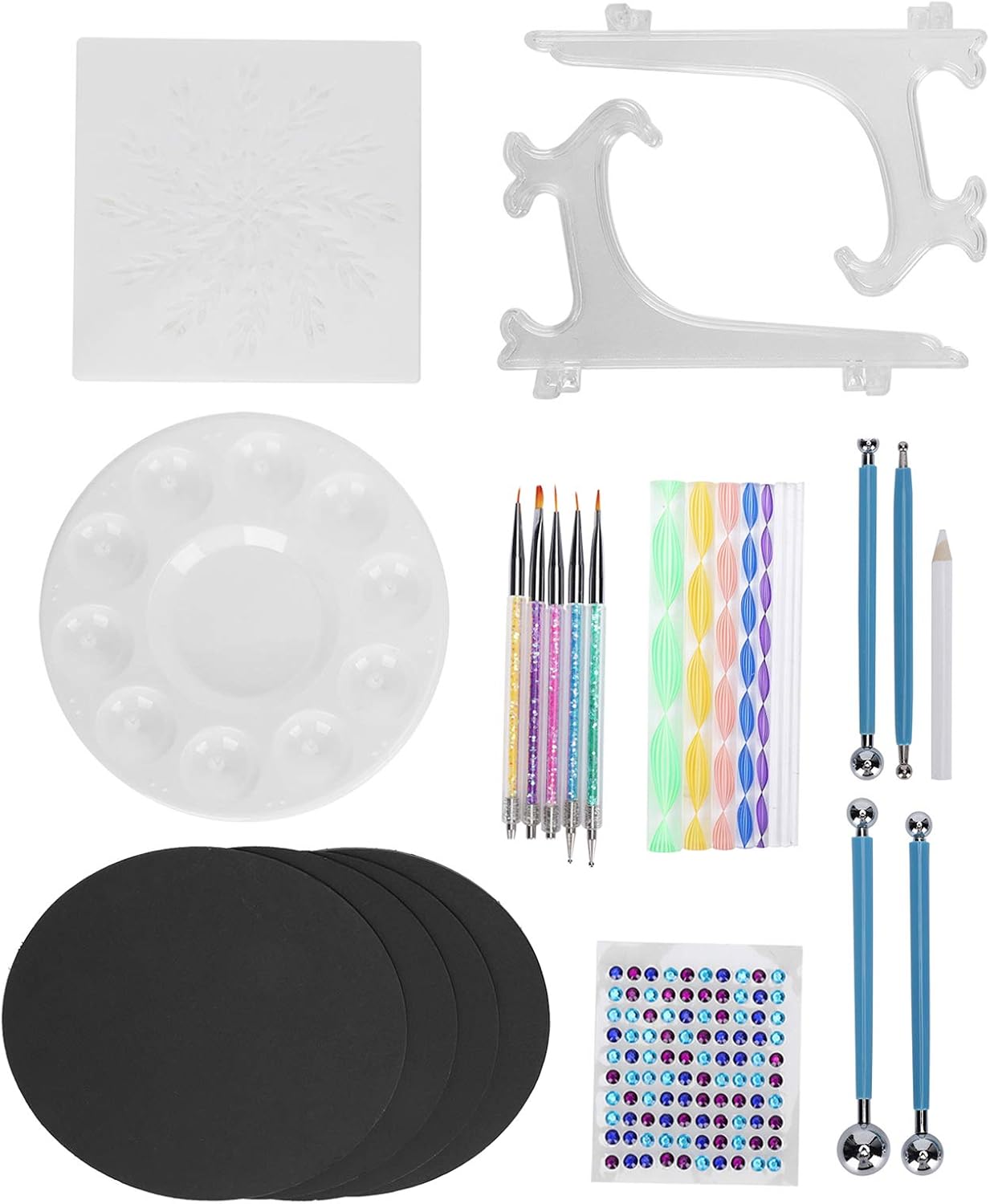[KIT MANDALA PREMIUM DA 34 PEZZI] Il nostro set completo include tutto il necessario per splendidi modelli mandala art-8, 5 penne diamantate, 4 stilo in acciaio, 8 bastoncini acrilici e altro ancora. per creare intricati motivi a punti su rocce, tele, carta e altre superfici con risultati professionali. [STRUMENTI DI GRADO PROFESSIONALE] Progettati con acciaio inossidabile di alta qualità e materiali acrilici durevoli, questi strumenti di punteggiatura non si deformano né si deformano. Il design ergonomico offre il controllo per creare punti uniformi e motivi mandala impeccabili con punte di diverse dimensioni. [ DI MODELLI FACILE DA USARE] Sia i principianti che gli esperti adoreranno gli stencil inclusi che aiutano a delineare i disegni dei mandala. Combinalo con penne punteggiate di varie dimensioni per creare opere d'arte mozzafiato con simmetria e risultati dall'aspetto professionale. [SET CREATIVO MULTIUSO] Oltre all'arte dei mandala, questi strumenti versatili funzionano magnificamente per disegni di nail art, decorazione di torte, modellazione di argilla, goffratura di metalli e altri progetti di artigianato. Un must per artisti, artigiani e appassionati di fai da te. [FACILE DA PULIZIA E PORTATILE] Tutti gli strumenti sono dotati di superfici lisce che si puliscono facilmente con un panno umido. La struttura leggera ma resistente rende questo set adatto agli artisti in movimento. Include una comoda soluzione di archiviazione per mantenere i tuoi strumenti organizzati.