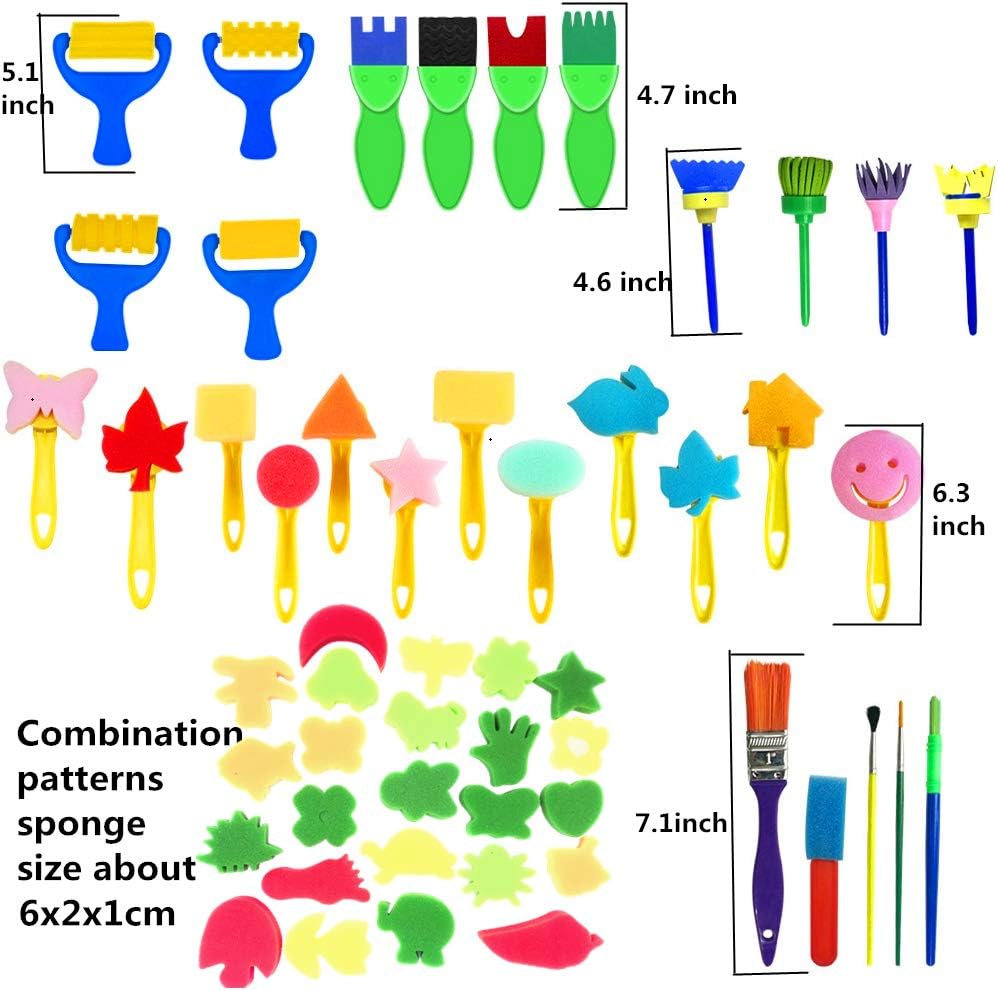 🎨Materiale sicuro di alta qualità: Realizzato principalmente in plastica EVA di alta qualità, non tossica e sicura, con schiuma e spugna ad assorbimento d'acqua. Lasciati sentire più a tuo agio, in modo che il tuo bambino possa godere appieno del divertimento di giocare. 🎨Eccellenti ausili per la prima educazione: set di pennelli in schiuma di spugna, in grado di stimolare e coltivare l'immaginazione e la creatività dei bambini disegnando o fai-da-te, perfetto per l'apprendimento precoce per i bambini. Oltre a ciò, può aiutare i bambini a rafforzare i muscoli della mano per sviluppare le capacità motorie. 🎨Regali per bambini perfetti: giocattoli per l'apprendimento in età prescolare perfetti per età 3-6 anni. Pennelli da 57 pezzi Sponge Painting, sufficienti per soddisfare le esigenze dei bambini fai da te permettono al tuo piccolo artista di creare modelli diversi o condividerli con gli amici. 🎨Riutilizzabile: tutti gli strumenti di pittura sono lavabili per usi ripetuti, facili da asciugare e da pulire. Con i Kids Art Smock, una copertura comoda e buona, la dose non macchia gli indumenti per bambini, ha delle tasche che sono ideali per i bambini per conservare vernici, pennelli, carta qualsiasi cosa vogliano lì dentro. 🎨Miglior servizio clienti: non esitate a contattarci se avete qualche domanda.