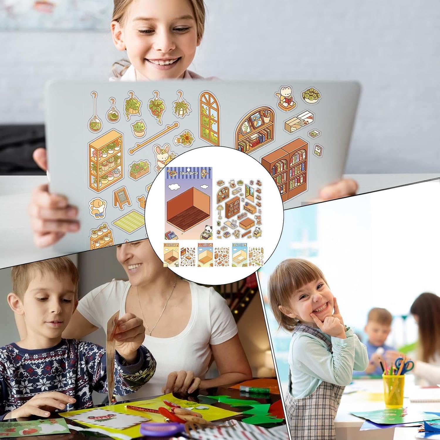 Regalo creativo: gli adesivi per la casa progettati come un presente meraviglioso per ragazzi e ragazze, ideali per compleanni, feste o attività del giorno per stimolare la creatività e il divertimento Anti-Stress Creativo: Scopri la progettazione di adesivi fatti in casa per una fuga serena di fronte alle pressioni quotidiane. Assicura un momento piacevole per passare creatively e serenamente. Costruzione affidabile: la robusta composizione in PET di questi adesivi combina proprietà tecniche e resistenza. Garantiscono una funzionalità duratura senza degradazione, anche dopo anni di uso regolare. Disposizioni personalizzabili: sperimenta con il design degli interni disponendo degli elementi modulabili di parti e mobili per comporre un cottage 3D che aggiunge profondità e divertimento al taccuino di gioco Nessun taglio richiesto: grazie al loro design adesivo diretto questi adesivi fatti in casa sono facili da usare eliminando la necessità di tagliare e ottimizzando il tempo per decorare senza sforzo