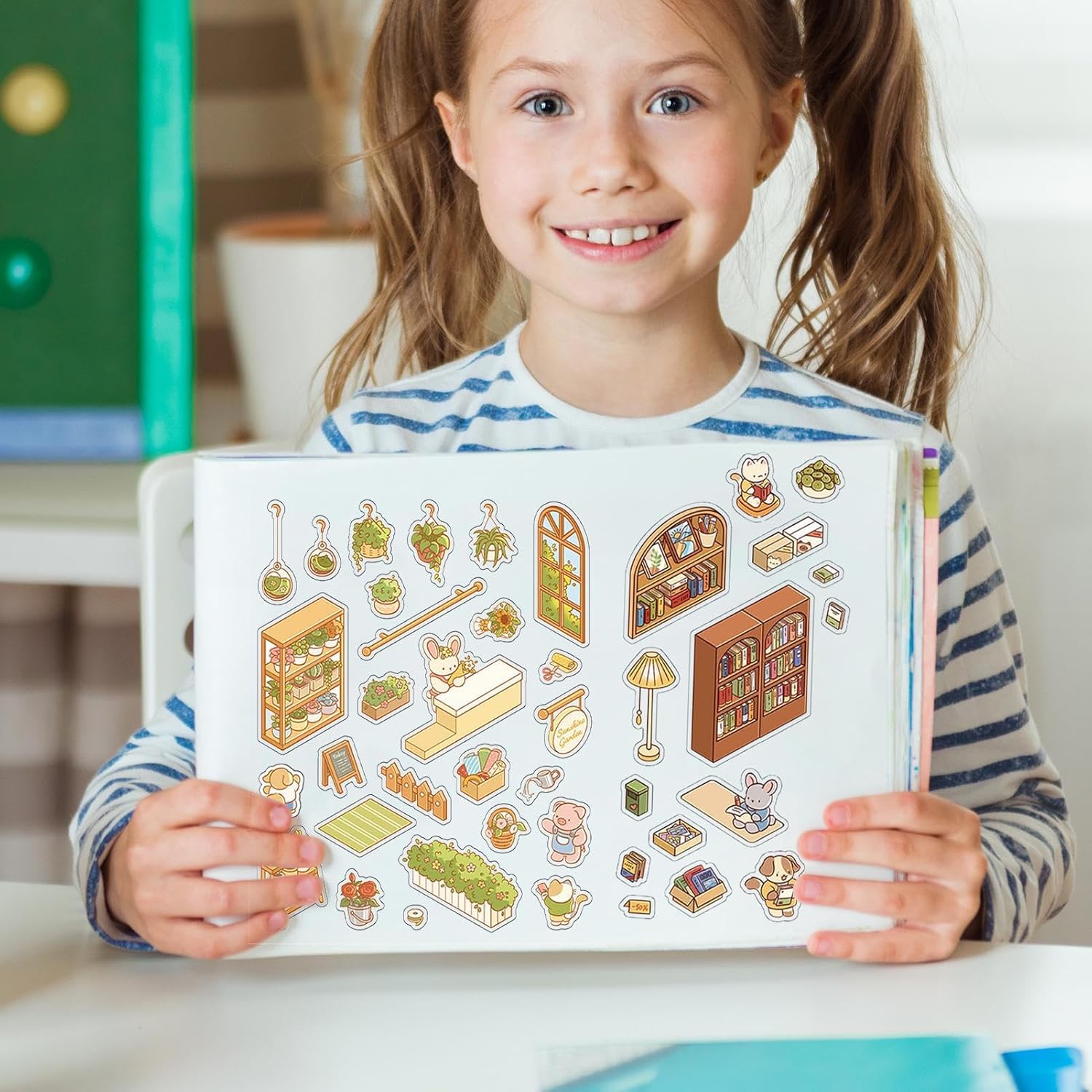 Regalo eccezionale: questi adesivi fatti in casa sono un regalo fantastico per ragazzi e ragazze, aggiungendo facilmente eccitazione a compleanni, feste e celebrazioni della Giornata. Ideale per stimolare la creatività e il divertimento durante le attività festive. Tempo libero lenitivo: Immergiti nella creazione di adesivi fatti in casa per una pausa rilassante lontano dallo stress. Questa attività semplice e gratificante offre relax e soddisfazione personale, ideale per rigenerarsi senza intoppi. Costruzione affidabile: dotato di una composizione in PET resistente e durevole, questi adesivi combinano perfettamente robustezza e proprietà materiali superiori. La loro lavorazione garantisce una funzionalità persistente senza deterioramento, per un'aderenza sicura e una lunga durata. Scena 3D realistica: Usa una varietà di elementi decorativi e mobili per progettare layout e formare una scena di cottage tridimensionale, stimolando la creatività e l'immaginazione attraverso il libro di attività Installazione intuitiva: questi adesivi fatti in casa sono incredibilmente semplici da usare, basta posizionarli direttamente senza tagliare per un'esperienza di decorazione e senza problemi