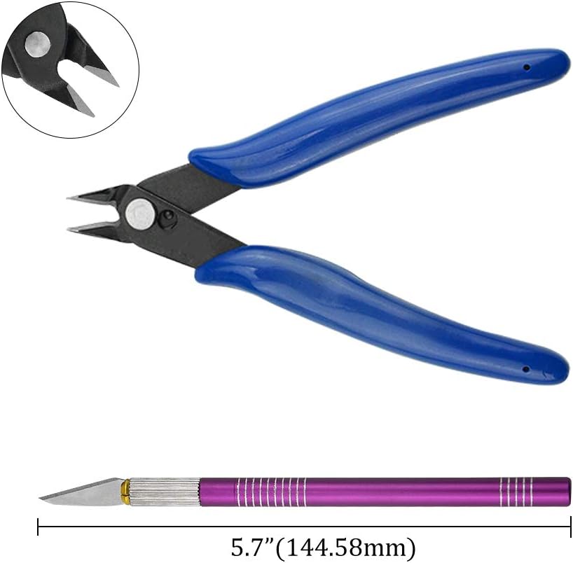 Funzione completa: questo set di strumenti di base è adatto a principianti e modellisti avanzati. Puoi usarlo per realizzare giocattoli, automobili, robot, cartoni animati e altri oggetti artigianali. Perfetto per progetti fai da te: strumento perfetto per riparazioni domestiche generali, artigianato avanzato o arti e mestieri. Grande quantità: 2 pinze (1 dritta, 1 angolata), 1 coltello per incisione.