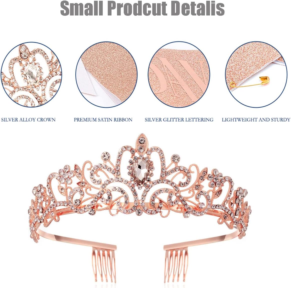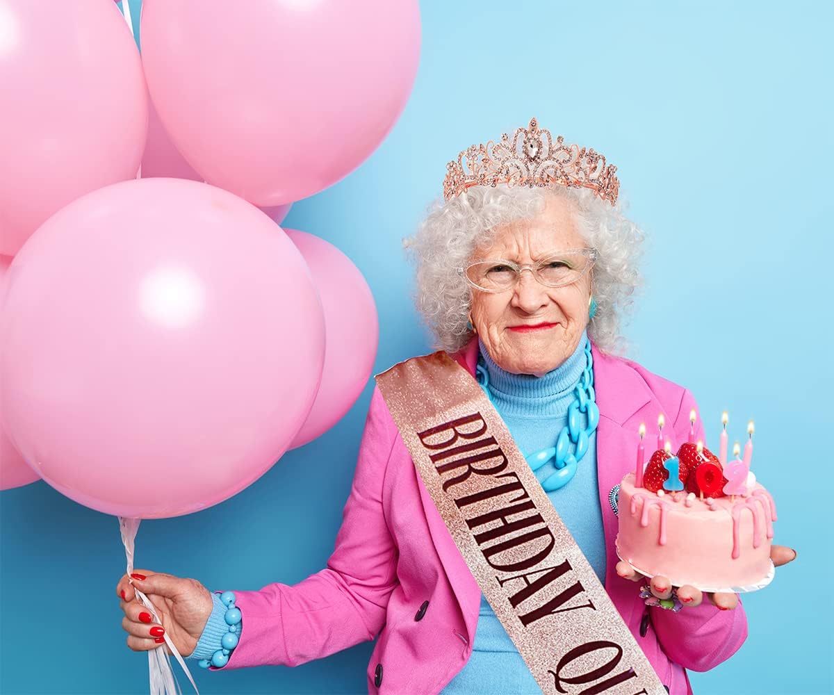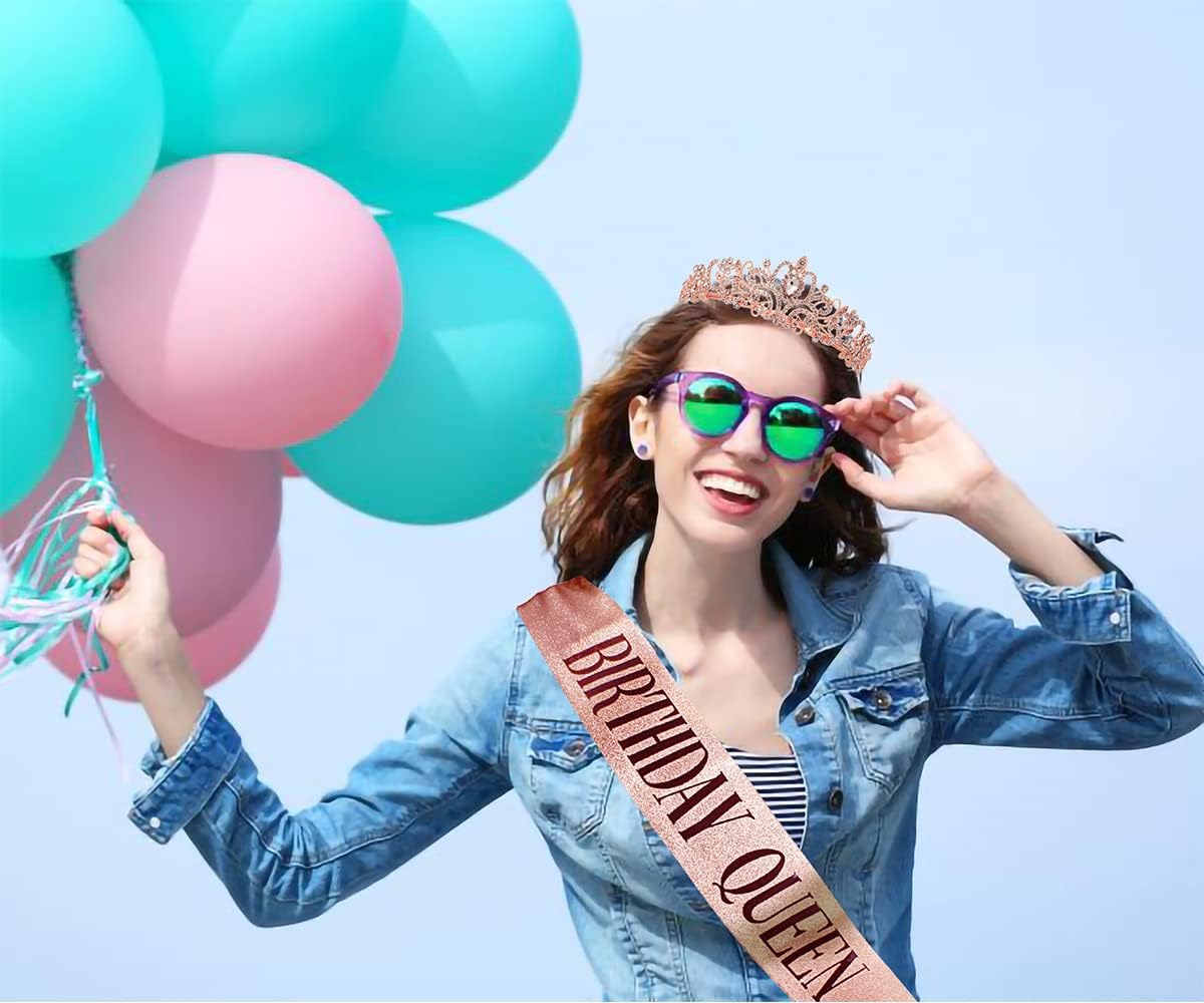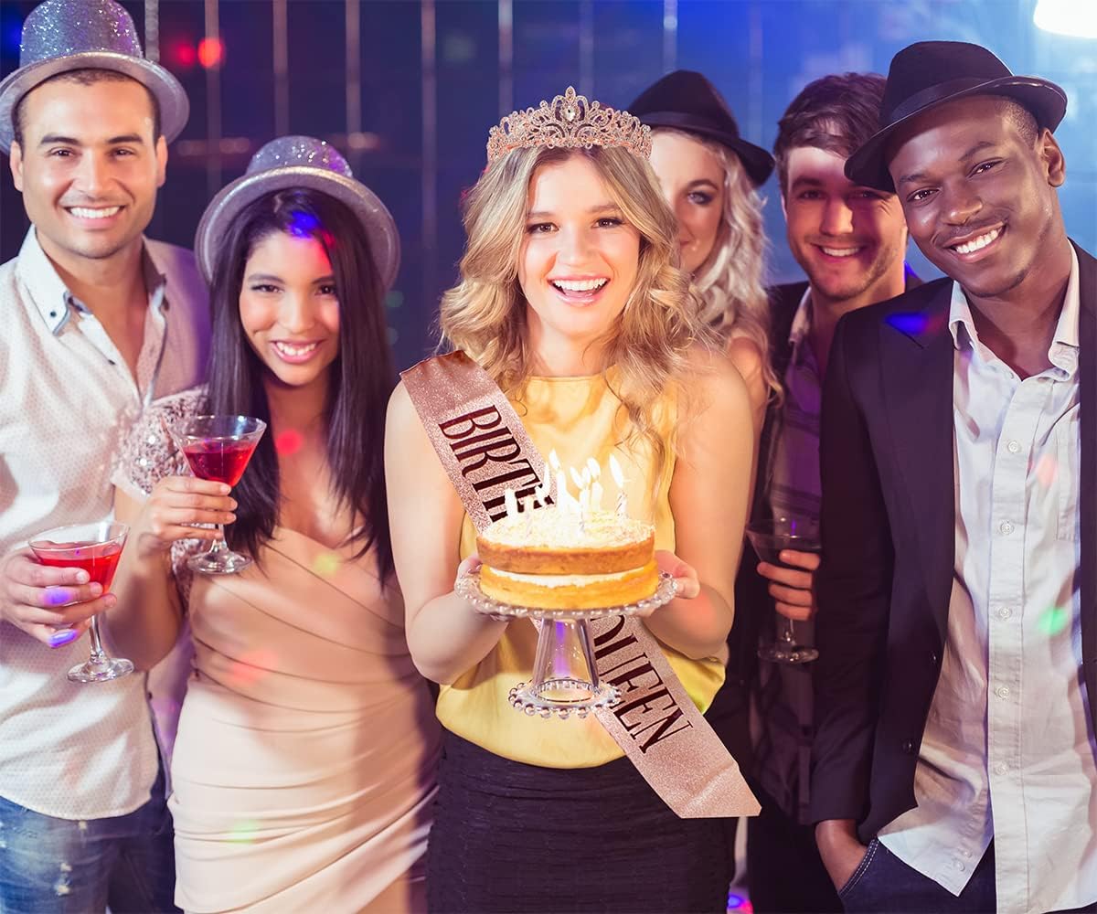 Set regalo di compleanno per donne "Regina del compleanno" fascia + tiara con strass Fascia di compleanno realizzata in morbido tessuto glitterato con pellicola in rilievo pressata a caldo, si adatta a qualsiasi outfit ed è abbastanza stente da durare fino alla notte. Tiara con strass La corona di compleanno è realizzata in lega di metallo, cristalli e strass, materiale di alta qualità e pregevole fattura; perfetto per ragazze e donne Taglia unica. La fascia di compleanno è di circa 156 x 10 cm (lunghezza x larghezza), lunga e può essere facilmente regolata tramite clip per adattarsi a diversi tipi di corporatura. La tiara con strass glitterati è di circa 13 x 15 x 4 cm / 5,1 x 5,9 x 1,6 pollici, che è anche regolabile e viene fornito con design a pettine, che può durare e stabile sui capelli Grande valore Ottieni la fascia e la tiara allo stesso tempo e sii pronto per la festa di compleanno La fascia glitterata dorata e la scritta in lamina nera sembrano grandi su Instagram. Ci siamo divertiti a creare questo set di regali di compleanno, speriamo che aggiungano altrettanto divertimento alle tue feste