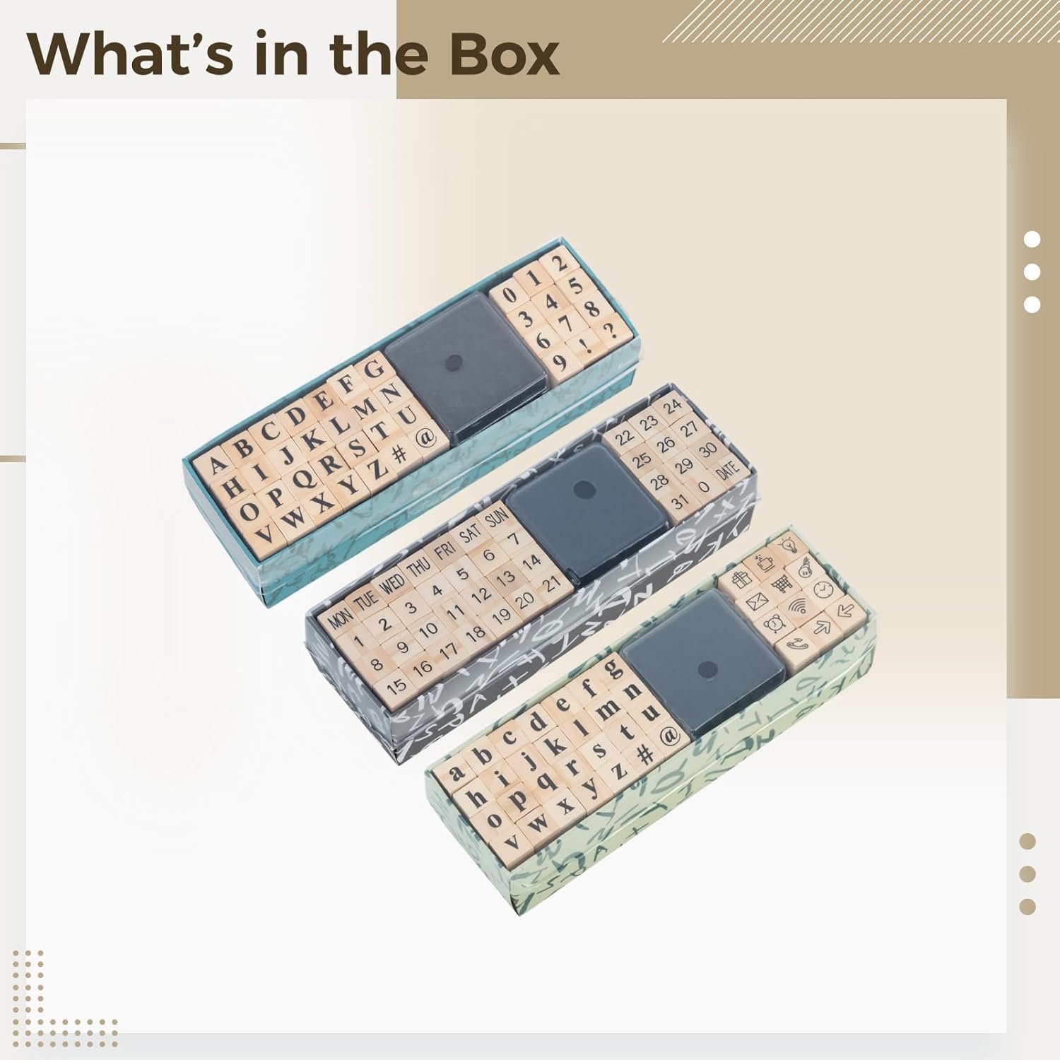 Kit all-inclusive: quaranta timbri in gomma in legno (ventisei lettere, dieci numeri, quattro simboli); tampone di inchiostro incluso; confezionato in una scatola colorata; ideale per uso domestico o in classe; facile da installare per il fai da te Apprendimento coinvolgente: interazione pratica con lettere e numeri; supporta l'educazione della prima infanzia; aumenta il riconoscimento delle lettere e le abilità della lingua inglese; rende l'apprendimento divertente e interattivo Design retrò a macchina da scrivere: carattere maiuscolo per una chiara visibilità; crea stampe nitide e pulite; dona ai progetti un tocco vintage; per vari lavori di artigianato con la carta Creazioni personalizzate: aggiungi messaggi unici a biglietti, inviti, etichette e regali; personalizza diari e album di ritagli; porta un tocco personale all'artigianato fatto a mano Design adatto ai bambini: legno liscio e naturale con testine in gomma per stampe dettagliate; design leggero (87,8 g) per mani piccole; la scatola blu stampata offre una comoda conservazione