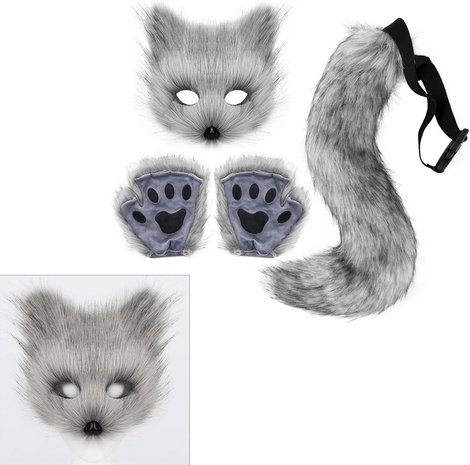 Kit di travestimento da volpi per Halloween, 3 pezzi, include coda di volpe, guanti per adulti, Halloween, cosplay Caratteristiche: La confezione include: 1 pezzo di peluche, 1 coda lunga; 1 paio di guanti. Realizzato in tessuto, leggero e comodo da indossare. Halloween volpi vestire costume set per adulti cosplay feste, feste di compleanno per bambini, Halloween, mascherate Questa volpe con corda elastica, coda lunga dotata di cintura regolabile con fibbia, comoda e facile da indossare, si adatta alla maggior parte dei bambini, adolescenti e adulti, non si sente troppo stretta e troppo larga. Questo set di volpi vestire castume, peluche e coda lunga animale cosplay set per bambini e adulti, feste a tema animali, Halloween vestire. Adatto per Halloween, feste cosplay, spettacoli di laurea, spettacoli teatrali scolastici, attività per bambini e genitori. Specifiche tecniche: Componente: Panno Colore: Grigio Scuro; Giallo Erba; Bianco; Grigio; Nero Dimensioni: ca. 20 x 20 cm. Dimensioni dei guanti: ca. 20 x 20 cm. Dimensioni della coda: ca. 50 x 10 cm. Peso: circa 285 g. La confezione include: 1 peluche. 1 coda lunga. 1 paio di guanti Nota: 1. Si prega di considerare un margine di errore di 0-1 cm dovuto alla misurazione manuale. 2. L'immagine potrebbe non rispecchiare il colore reale a causa delle diverse impostazioni dei monitor