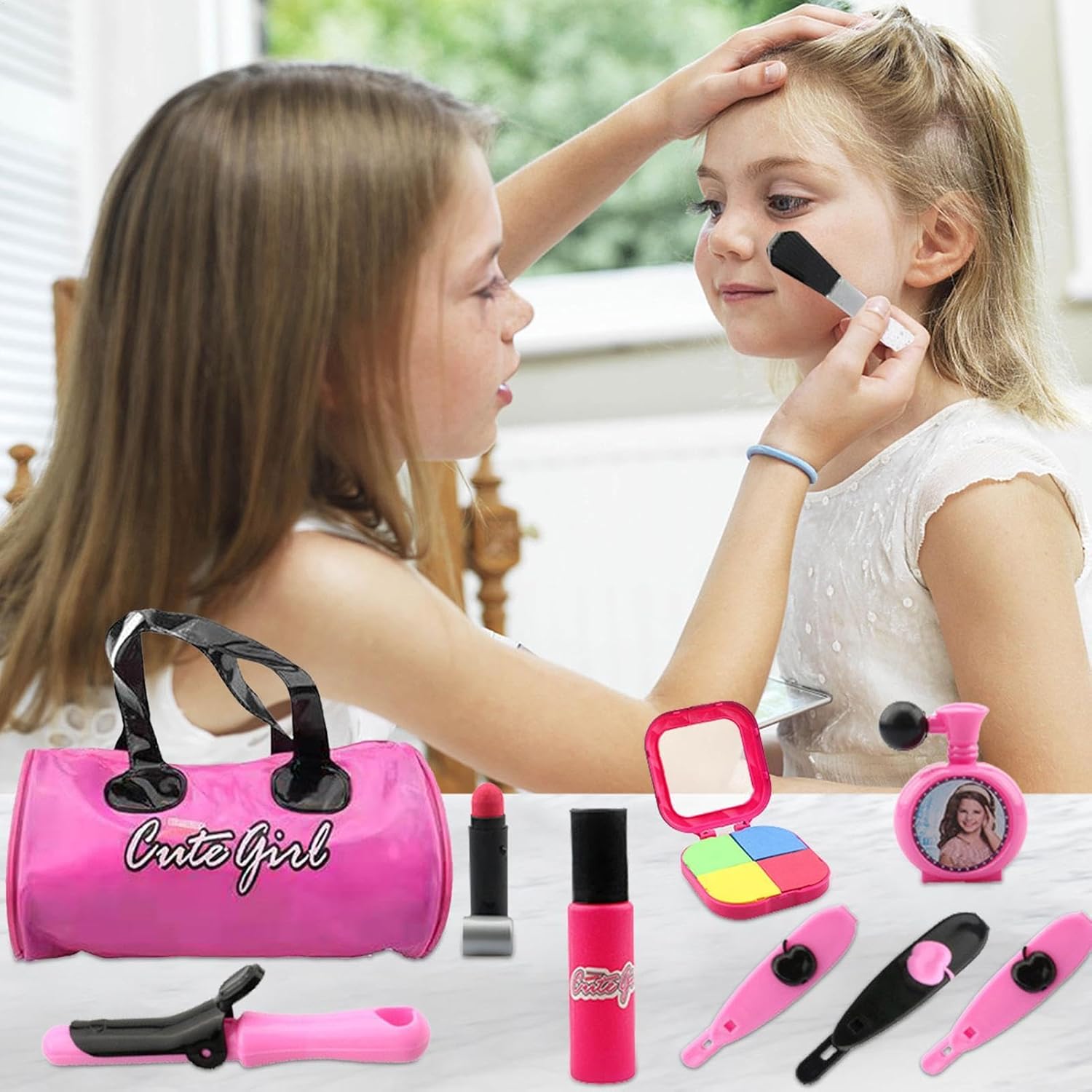 Amico: goditi ore di piacere con il nostro set di trucco che include un asciugacapelli, uno specchio, diversi stili di ferro riccio, 2 paia di forbici simulate facili da usare con un pettine e una di conservazione per una maggiore comodità. Crea più acconciature. Funziona a batterie: con tutti gli strumenti necessari per un gioco fantasioso, incluso un asciugacapelli a batteria, due batterie AA da 1,5 V non incluse, questo set è perfetto per le ragazze che amano vestirsi. Usura del supporto: il nostro set di trucco pronto è realizzato in robusto materiale ABS, che garantisce la massima durata che dura incredibilmente. Non preoccupatevi perché sicuramente lo userai, il che lo rende il regalo perfetto per i bambini. Perfezionando abilità motorie fini: immergendo i bambini in un gioco creativo e divertente che gioca un gioco, questo set di trucco insegna le basi dell'acconciatura promuovendo al contempo il miglioramento delle capacità motorie. Osserva lo sviluppo di tuo figlio. Regalo appropriato: stimola la creatività di tua figlia con questo set di trucco. Un fantastico regalo di 3 anni, ideale per eventi di classe, compleanni o vacanze. Lascia che giochi e immagina di essere una truccatrice.