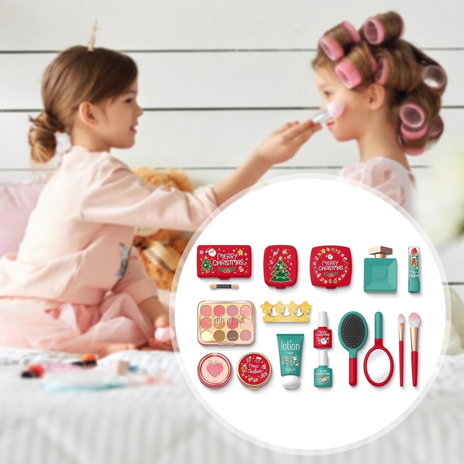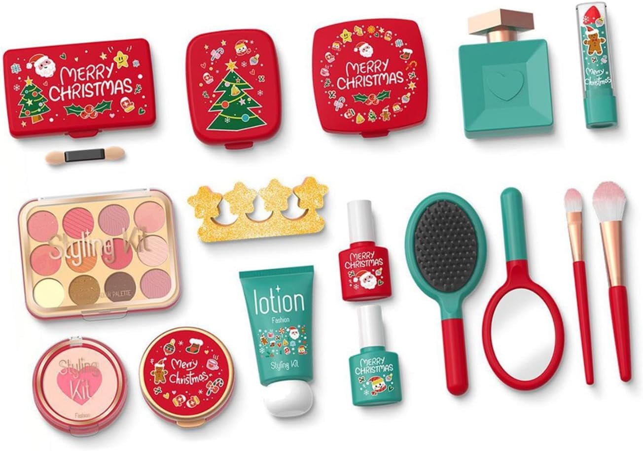 【Materiale】: Realizzato in PP di qualità, ogni pezzo è leggero e costruito per resistere al gioco entusiasta, garantendo durata per i bambini piccoli 【Design realistico】Progettato con dettagli vividi e realistici, il giocattolo per il trucco sembra un vero trucco, stimolando la creatività e l'immaginazione del tuo bambino 【Incoraggia la creatività】: giocare con kit cosmetici finti aiuta a sviluppare le capacità motorie fini, la coordinazione occhio-mano e le abilità sociali del tuo bambino attraverso giochi di ruolo e giochi interattivi 【Custodia portatile】: questo kit per il trucco finto è facile da riporre o da portare con sé per appuntamenti di gioco, viaggi o riunioni di famiglia 【Set di trucco natalizio festivo】: questo kit di trucco finto è progettato appositamente per i bambini, con un allegro tema natalizio e una confezione, ottimo come regalo per le vacanze e per il gioco festivo