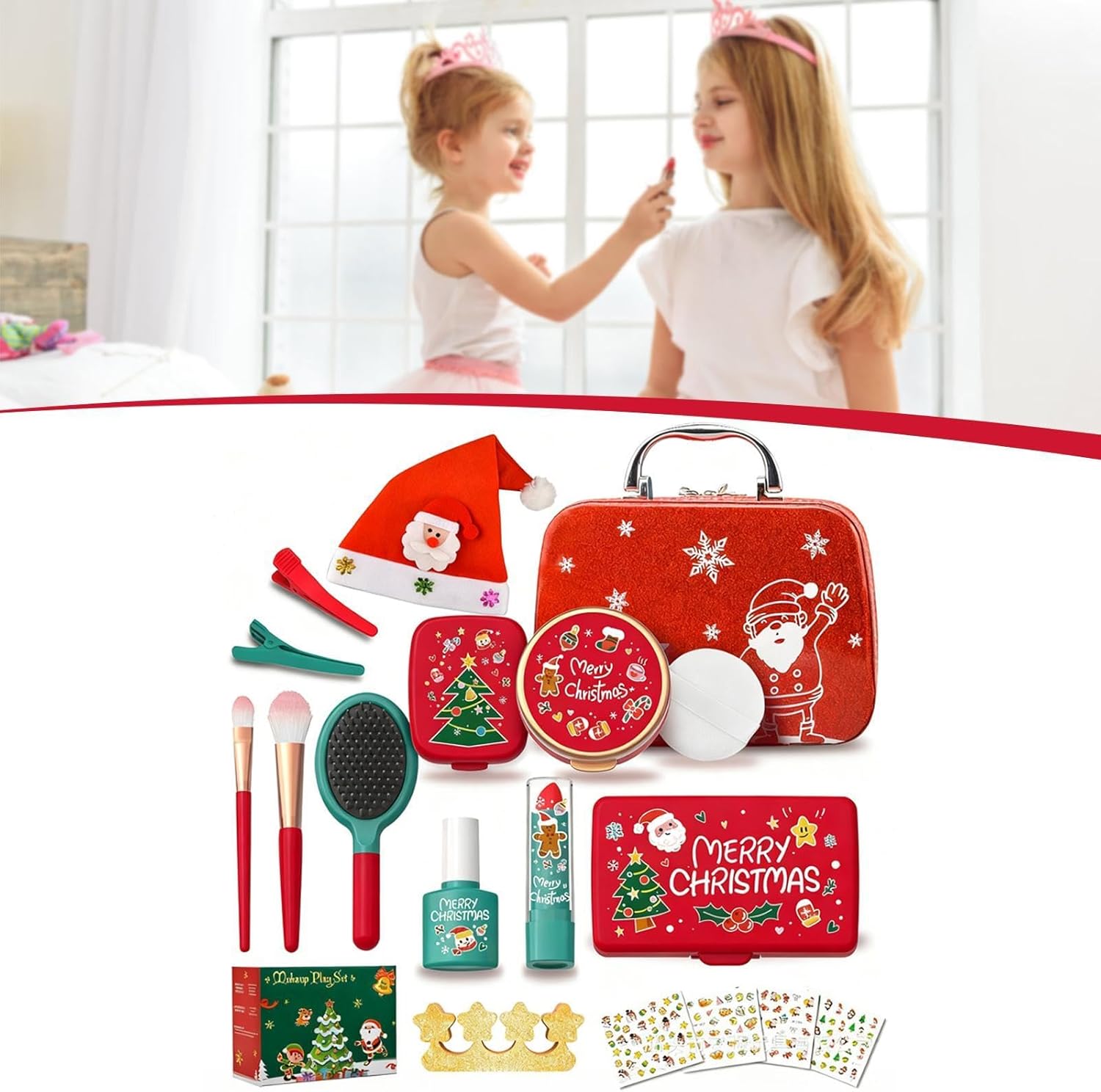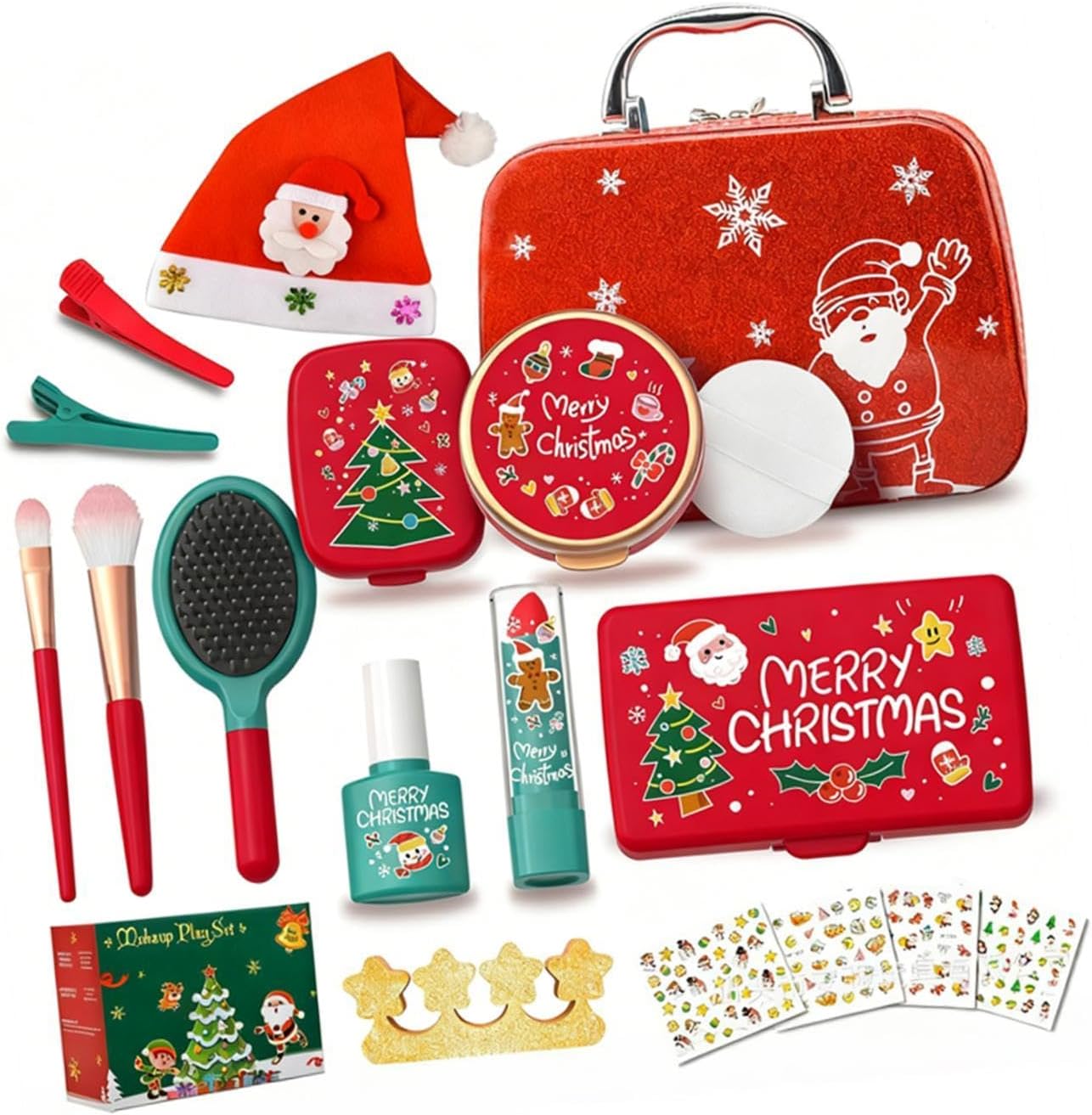 【Materiale】: Realizzato in PP di qualità, ogni pezzo è leggero e costruito per resistere al gioco entusiasta, garantendo durata per i bambini piccoli 【Design realistico】Progettato con dettagli vividi e realistici, il giocattolo per il trucco sembra un vero trucco, stimolando la creatività e l'immaginazione del tuo bambino 【Incoraggia la creatività】: giocare con kit cosmetici finti aiuta a sviluppare le capacità motorie fini, la coordinazione occhio-mano e le abilità sociali del tuo bambino attraverso giochi di ruolo e giochi interattivi 【Custodia portatile】: questo kit per il trucco finto è facile da riporre o da portare con sé per appuntamenti di gioco, viaggi o riunioni di famiglia 【Set di trucco natalizio festivo】: questo kit di trucco finto è progettato appositamente per i bambini, con un allegro tema natalizio e una confezione, ottimo come regalo per le vacanze e per il gioco festivo