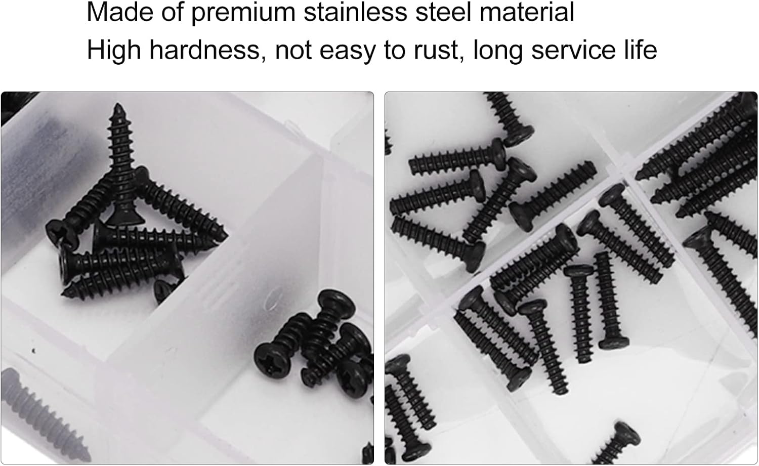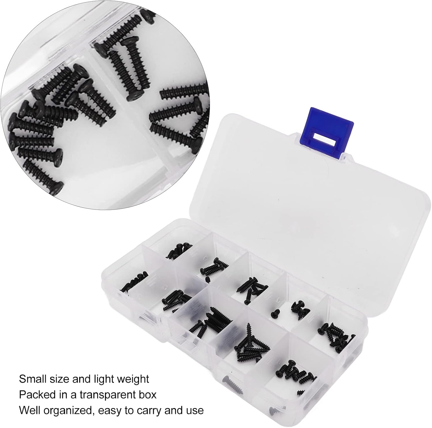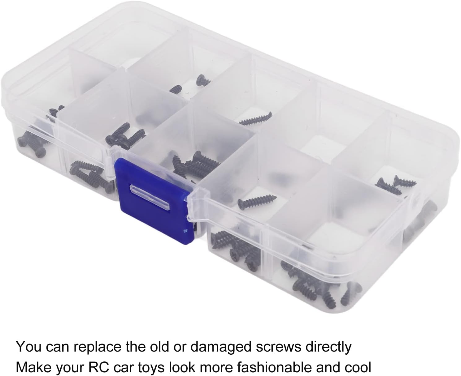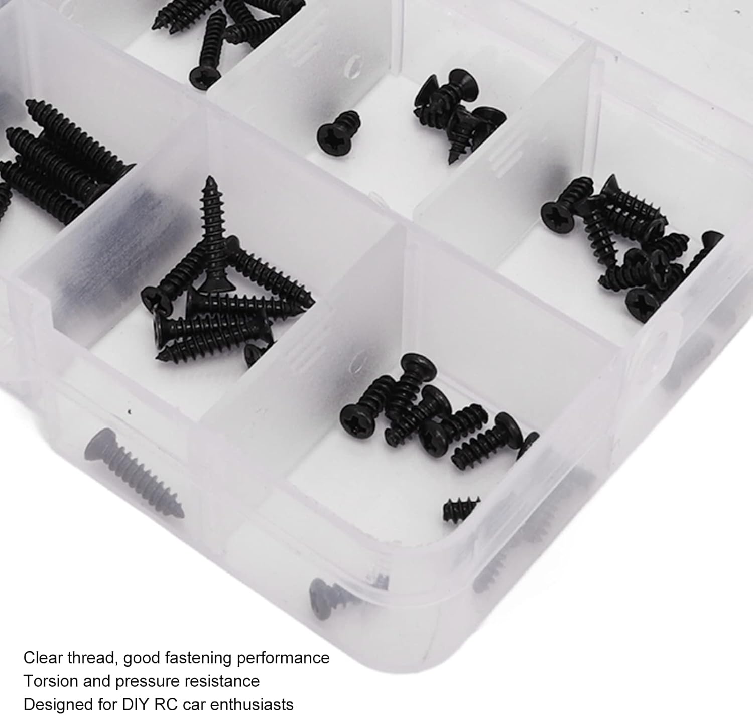 【Materiale di alta qualità】 Realizzato in materiale di acciaio inossidabile di alta qualità, questo set di scatole di viti per auto RC offre elevata durezza e resistenza alla ruggine, garantendo una lunga durata. La struttura robusta garantisce prestazioni affidabili e longevità Comodo stoccaggio: il set di viti RC viene fornito in una scatola trasparente piccola e leggera, che mantiene le viti ben organizzate e facili da trasportare e utilizzare. Il design della scatola garantisce l'accesso rapido e semplice alle viti quando necessario, garantendo praticità e facilità d'uso 【Filettature trasparenti】Dotate di filettature trasparenti, queste viti offrono eccellenti prestazioni di fissaggio e sono resistenti alla torsione e alla compressione. Le filettature trasparenti consentono un fissaggio preciso e sicuro, rendendoli ideali per gli appassionati di auto RC che apprezzano l'affidabilità nelle loro costruzioni 【Design unico】 Questo set di viti ti consente di sostituire direttamente le viti vecchie o danneggiate, rendendo i tuoi giocattoli per auto RC più belli. La funzione di sostituzione delle viti consente di risparmiare tempo e fatica, assicurandoti di poter aggiornare rapidamente la tua auto RC senza la necessità di modifiche estese 【Applicazione versatile】 Il kit viti per auto RC è disponibile in varie dimensioni per soddisfare le tue esigenze. È adatto per auto RC. La versatilità garantisce che puoi utilizzare questo kit di viti per diversi modelli di auto RC, fornendo agli appassionati che apprezzano sia la funzionalità che l'estetica nei loro veicoli RC