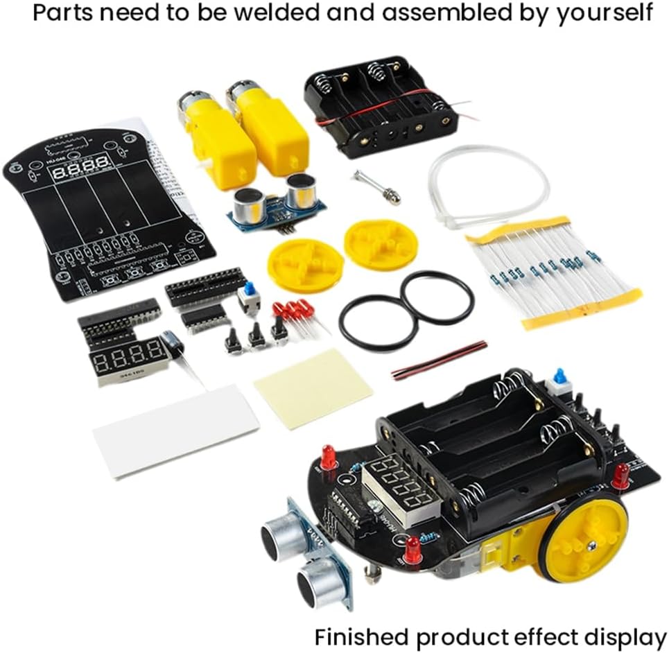 3. Il tubo digitale visualizza la distanza attuale 'ostacolo in tempo reale, fino a 5 metri 1. Utilizzando materiali di alta qualità, la qualità è garantita 4. Introdurre un concetto di progettazione di simulazione per rendere il circuito stampato più simile al telaio di un'auto, un chip di azionamento motore dedicato, controllare la rotazione e indietro del motore e controllare in modo flessibile la rotazione , indietro, in 'auto e altre azioni; il di controllo a chip singolo è più vicino alle persone 2. Misurazione della distanza ad ultrasuoni ed evitamento degli ostacoli, rotazione automatica o ritorno per evitare gli ostacoli si incontrano ostacoli 5. Ampia gamma di applicazioni, capacità di formazione pratica
