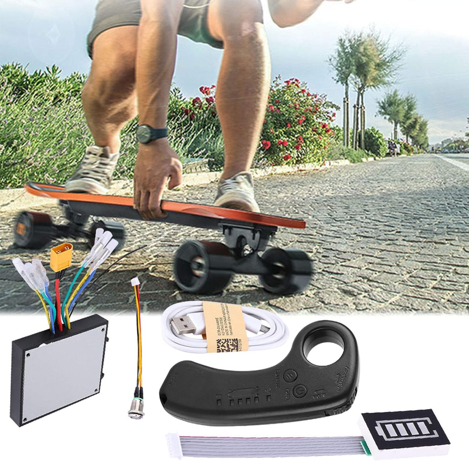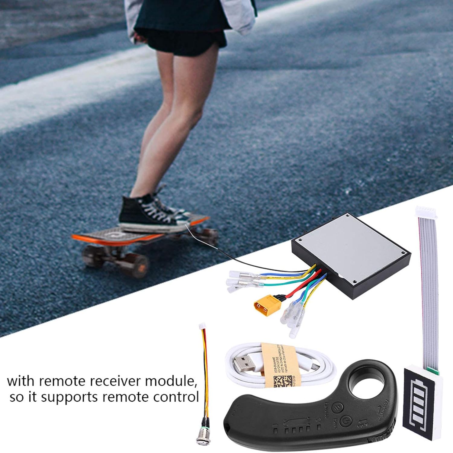Questo sistema di controllo elettrico per skateboard longboard ha un modulo di controllo EMP con modulo remoto, può fare qualsiasi cosa come ESC, ESC sarebbe facile da danneggiare, questo modulo di controllo sarebbe più stabile ed economico. Viene fornito con un controller portatile, ha una forma ergonomica, molto comodo da impugnare e utilizzare. 4 diverse modalità di velocità: modalità sport ad alta velocità, modalità economica ad alta velocità, modalità velocità media, modalità bassa velocità. La solida struttura della scheda madre può allungare notevolmente la durata. Con modulo ricevitore remoto, quindi supporta il controllo remoto. Realizzato con chip di alta qualità e componenti elettronici, il design a doppia unità può offrire prestazioni eccellenti e stabili. Il circuito ben organizzato è facile da installare, ma richiede competenze professionali.