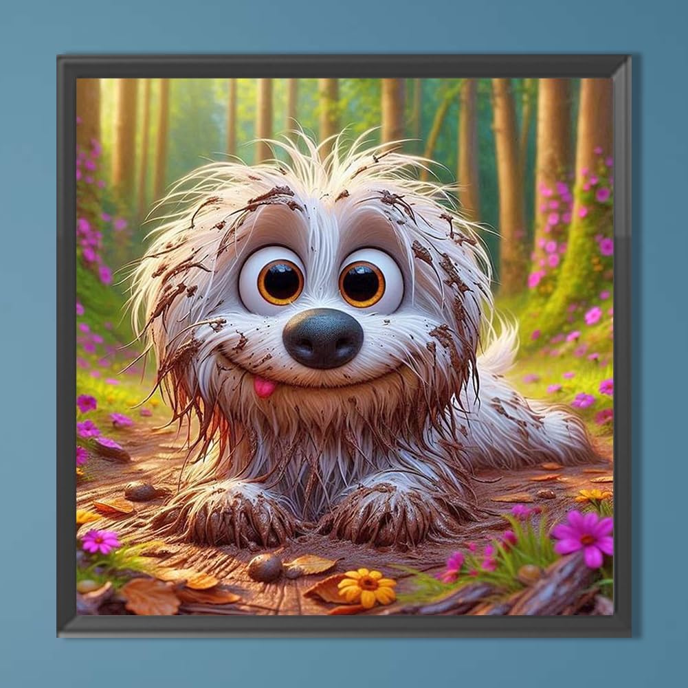 Kit fai da te 5D completo rotondo per cani, decorazione per la casa, 40 x 40 cm