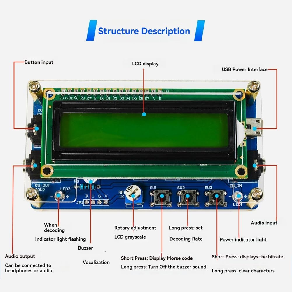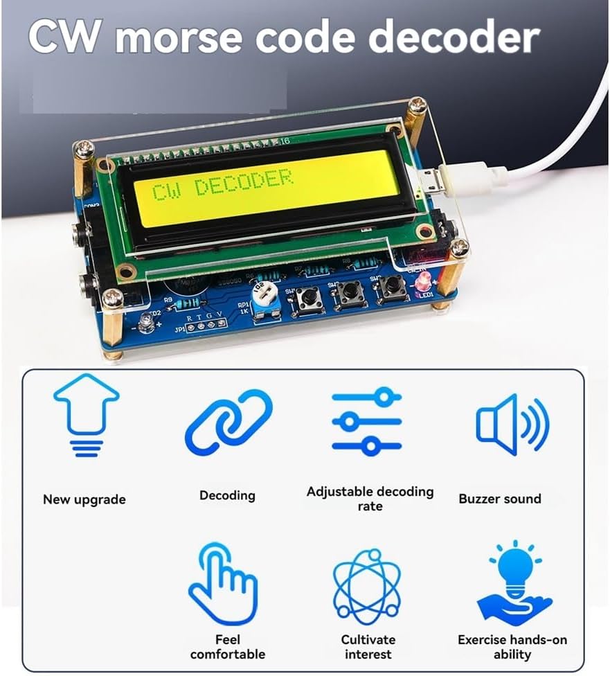 Kit fai da te decodificatore di codice Morse CW, decodificatore di codice Morse CW Trainer, kit di componenti elettronici fai-da-te con LCD digitale