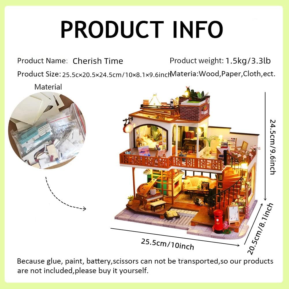 Questo kit fai da te per casa delle bambole in stile europeo presenta una villa a due piani e un cortile paesaggistico, completo di un pianoforte classico e una scala a chiocciola vintage. Il design elegante simboleggia una famiglia felice. Il kit richiede lucidatura, incollaggio e assemblaggio, un processo pratico che riduce efficacemente lo stress. Il pezzo completato offre un senso di realizzazione, rendendolo un progetto artigianale ideale per il relax. La casa in miniatura assemblata è dotata di luci a LED integrate, che creano unatmosfera calda e delicata che lenisce lanima e allevia lansia, creando un piccolo mondo tranquillo e confortevole. Questo modello fatto a mano è un regalo premuroso per festività come Natale e compleanni. È allo stesso tempo speciale e pratico, perfetto come decorazione o come ricordo prezioso. Ogni set viene sottoposto a rigorosi controlli di qualità e viene fornito con tutti gli accessori necessari. In caso di problemi di assemblaggio, contattare il servizio clienti per ricevere risposte da esperti, garantendo un processo di produzione senza problemi e senza preoccupazioni.