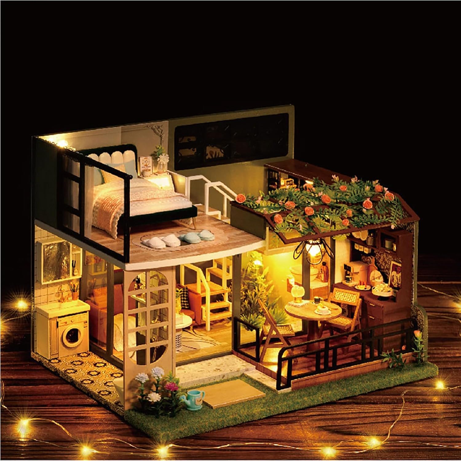Questo kit fai da te per casa delle bambole include tutti i componenti necessari ed è adatto a bambini dai 14 anni in su. Assemblando il modello in legno da soli, non solo vi divertirete a creare, ma svilupperete anche pazienza e creatività, e il pezzo completato vi darà un senso di realizzazione. Questo squisito modello di studio per casa delle bambole in miniatura è realizzato in legno di alta qualità ed è una delizia sia per adulti che per bambini. Il design a puzzle 3D vi permette di sperimentare la gioia della progettazione e della creazione, rendendolo una scelta ideale per sviluppare abilità pratiche. Il kit è dotato di luci LED realistiche e lampadine in miniatura che illuminano lintera scena, creando unatmosfera calda e sognante. Gli squisiti effetti di luce aggiungono un tocco decorativo unico alla vostra stanza, scrivania o libreria. Questo modello di casa delle bambole è unidea regalo creativa, perfetta per occasioni speciali come compleanni, Natale e San Valentino. Non solo sviluppa abilità pratiche, ma il suo design raffinato lo rende anche più premuroso dei normali lavori artigianali. Ogni set viene rigorosamente ispezionato prima della spedizione per garantire che tutte le parti siano complete. Acquista con fiducia e goditi una piacevole esperienza fai da te.