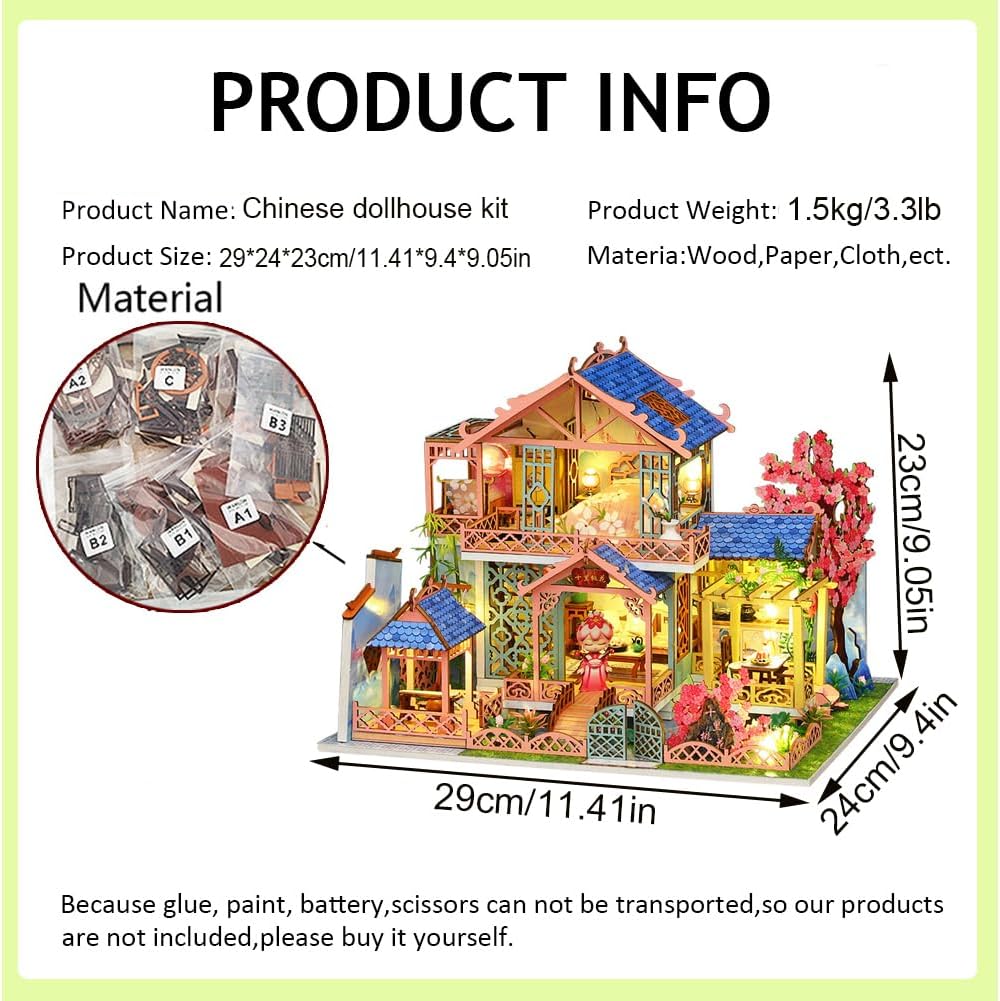 Questo kit fai da te per costruire una casa in miniatura presenta una struttura a due piani ispirata a una villa in stile cinese, con dettagli intricati e realistici. Scene vividamente riprodotte, tra cui una camera da letto, una sala da pranzo e un cortile, vi trasportano nel fascino unico di un mondo in miniatura. È sia un bellissimo elemento darredo che un pratico accessorio per la libreria. Lilluminazione integrata crea un effetto caldo ed elegante di notte, aggiungendo unatmosfera unica a qualsiasi stanza. Il kit è dotato di un dettagliato foglio di istruzioni a colori, che semplifica le fasi di assemblaggio anche per i principianti. Questo kit non solo migliora le competenze pratiche, ma favorisce anche interazioni divertenti con amici e familiari. La raffinata confezione lo rende un regalo ideale per amici e familiari. Che sia per un appassionato di fai da te o per un regalo di Natale, trasmette i vostri pensieri e crea ricordi duraturi. Offriamo un servizio clienti 24 ore su 24 per risolvere eventuali parti mancanti o problemi di assemblaggio. Nota: colla e batterie AAA non sono incluse; dovrete prepararle voi stessi.