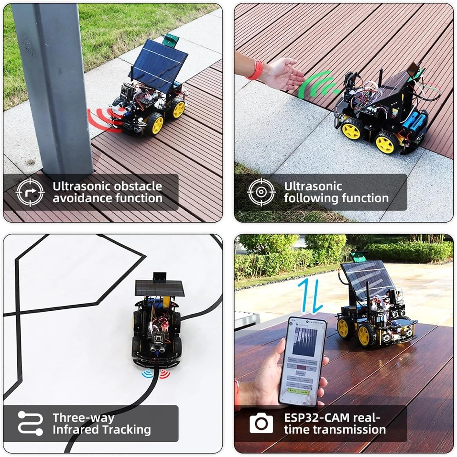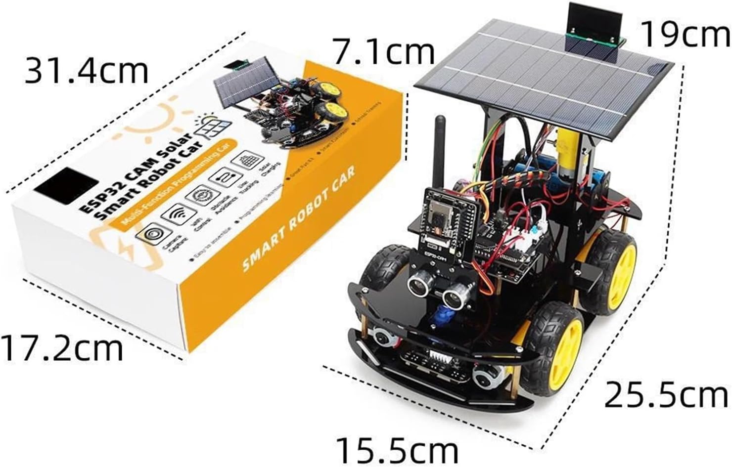 Vestibilità: for Arduino Professional ESP32 Cam Set di monitoraggio e ricarica solare Kit robotico for progetti di elettronica fai-da-te. Kit telaio per auto robot intelligente in metallo 4WD con ruota omnidirezionale Kit telaio per auto robot in metallo Smart 4WD Telaio per auto con ruota Mecanum Kit per auto intelligente con telaio in metallo e telecomando