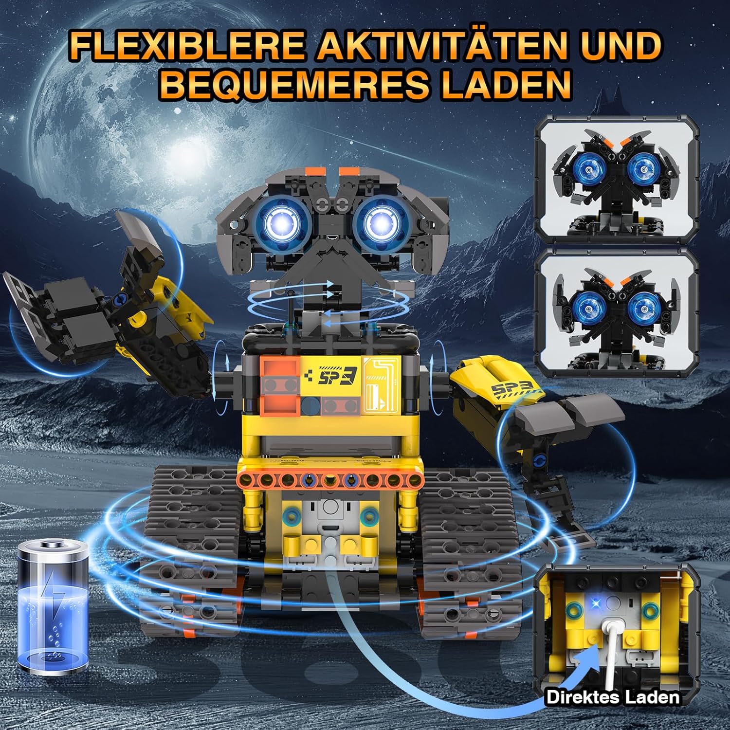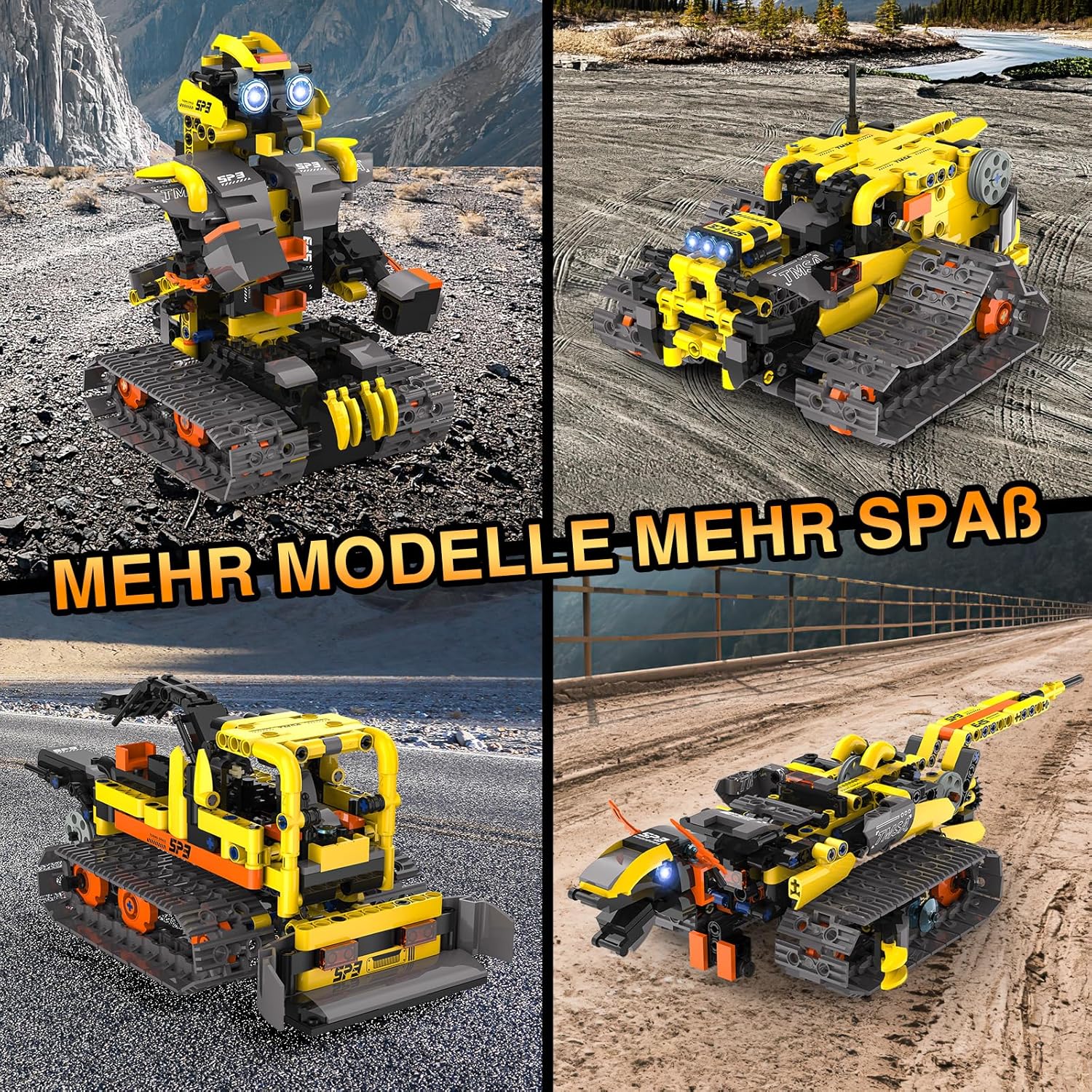 【Kit tecnico 5-IN-1】: è composto da cinque modelli: robot/boxer/drago/gru/veicolo da ricognizione spaziale. I cinque modelli hanno molte parti mobili, che rendono i giocattoli costruttivi fantastici e allenano l'immaginazione dei bambini, sviluppano il pensiero creativo e le abilità pratiche dei bambini.,Robot tecnico di controllo remoto: ha due metodi di controllo: telecomando e app. Puoi cambiare diverse modalità di guida tramite l'app (modalità controllo remoto/modalità giroscopica/modalità percorso/programmazione) e puoi guidare sia all'interno che all'esterno come preferisci. di materiali sicuri e non tossici, durevoli e lisci. Il modulo di alimentazione adotta un design di ricarica che elimina la necessità di smontare e installare la batteria e rende la ricarica più comoda.,Ottimo regalo per i bambini: questo set di costruzione tecnologica 5 in 1 può stimolare la creatività dei bambini e tenerli occupati per ore. È perfetto come regalo di compleanno e di Natale per bambini dagli 8 ai 12 anni 13 14 15+