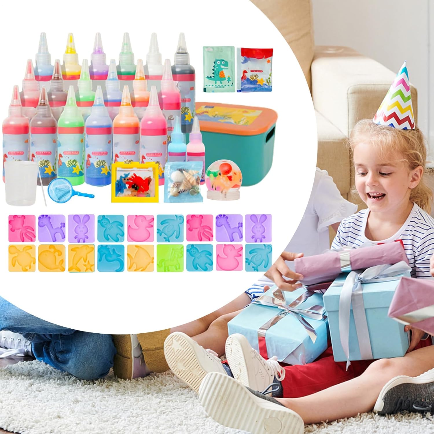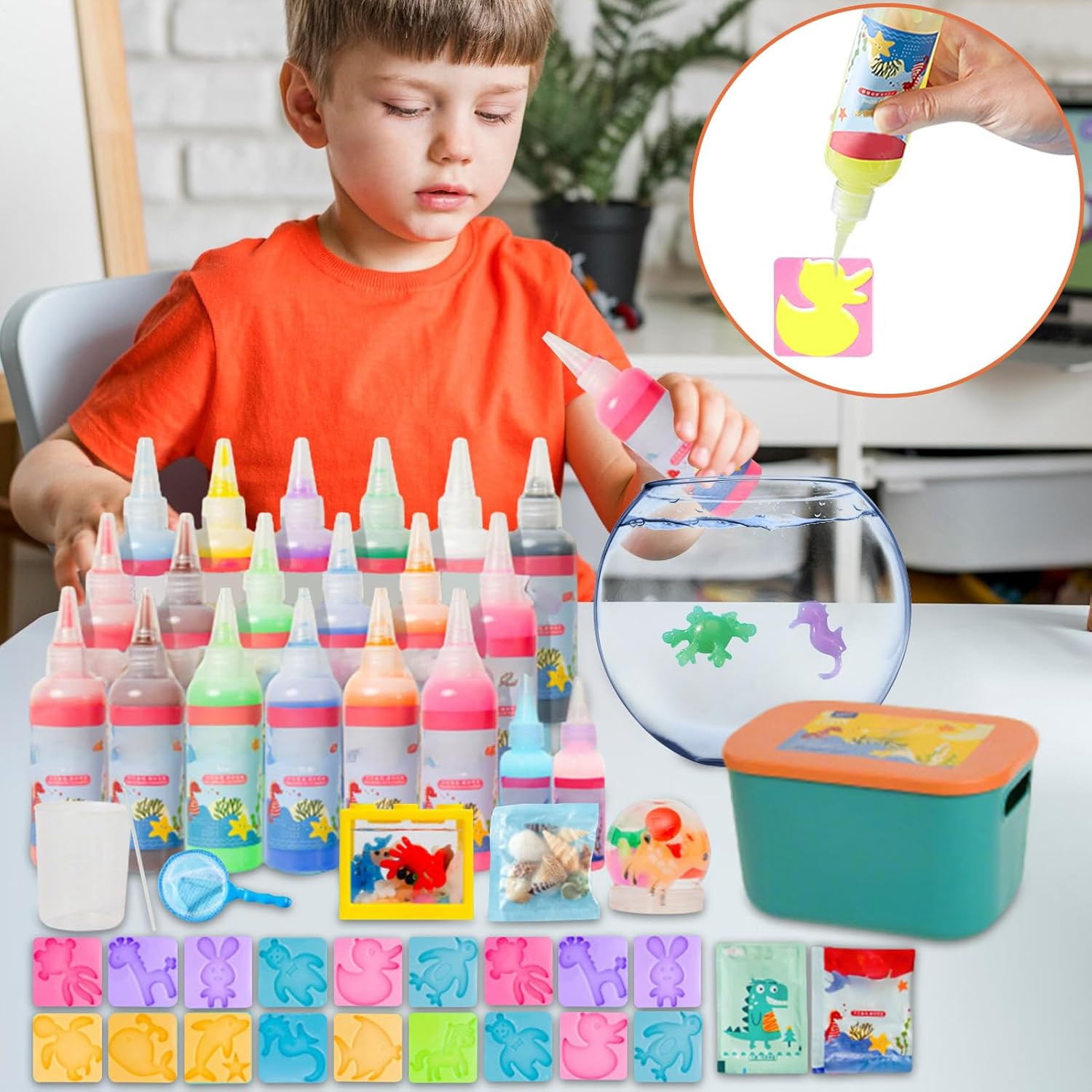 Crescita Creativa Osservativa: Stimola immaginazione e abilità manuale, migliorando al contempo concentrazione e capacità osservative attraverso interazioni dinamiche con i gel d'acqua, offrendo un'attività formativa arricchente per bambini e adulti. Attività Familiare Interattiva: Favorisce connessioni emotive più profonde giocando insieme al bambino con questo kit innovativo progettato per aumentare l'engagement e la complicità tra genitori e figli Sicuro e Innocuo: Grazie a materiali ecologici e privi di tossicità, questo kit riduce al minimo i rischi per la salute. Scelta affidabile per genitori che cercano rassicurazione e un approccio naturale al gioco creativo e coinvolgente. Momento Magico: Eccezionale idea regalo per eventi speciali, assicura divertimento e gioia durante le feste con attività di gioco in gel d'acqua, stimolando creatività e condivisione tra bambini e familiari. Scopri e Crea: Accendi la passione per la scoperta e l'arte con attività che stimolano la creatività, permettendo ai bambini di realizzare opere distintive in gel partecipando pienamente al viaggio creativo.