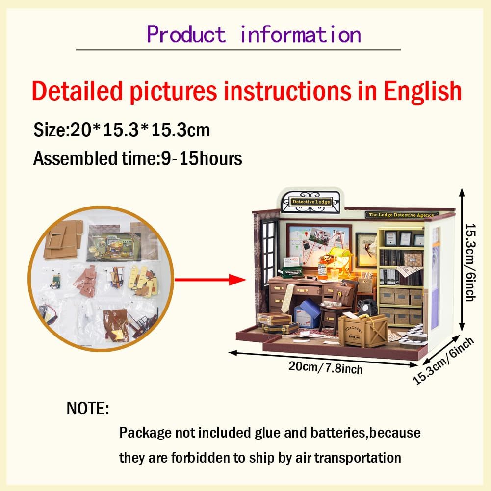 Le istruzioni in inglese con immagini dettagliate e colorate ti guideranno passo dopo passo e sono facili da montare con un po' di pazienza. Le nostre cabine fai-da-te sono di alta qualità e i mobili e le altre parti in legno sono tagliati con precisione per adattarsi correttamente. Luci a LED, piante, decorazioni e mobili sembrano molto realistici e artistici. Il teatro è adatto a persone di età superiore ai 14 anni. I bambini sotto i 14 anni necessitano dell'assistenza di un adulto. L'assemblaggio richiede pazienza. Migliora la tua creatività. È il regalo perfetto e significativo per i tuoi amici, bambini, amanti e genitori. A causa dei tempi di spedizione lunghi, l'articolo potrebbe danneggiarsi durante il trasporto, se l'articolo è danneggiato, ti preghiamo di contattarci immediatamente prima di lasciare un feedback, grazie per la tua comprensione.
