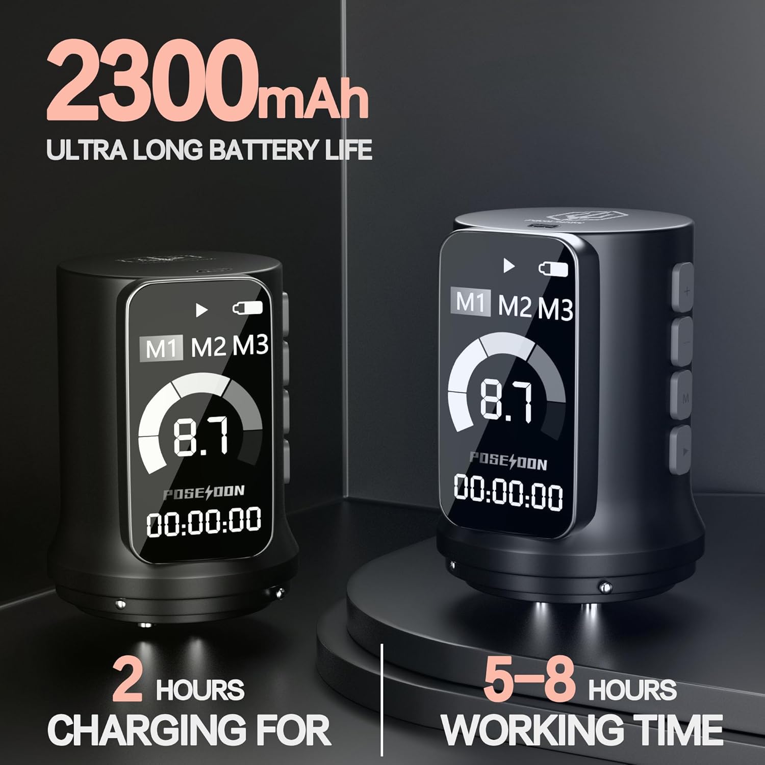 My previous cordless machine gave up the ghost, so I welcomed this Poseidon kit with the relief usually reserved for finding a parking space in zone 1. After several hours practising on synthetic skin I can say it has helped me make measurable progress — the learning curve feels honest rather than punishing. Line work is confident, shading behaves predictably, and the dot mode is genuinely useful for stippling and realism practice. For the price point, the performance is unusually consistent and sits comfortably alongside the more expensive unit I owned previously. Physically, the handset is on the chunkier side. It conveys solidity and balance, but after a long session my hand did start to ache — it’s the sort of weight that reminds you you’re working with precision engineering, rather than featherlight hobby kit. If you prefer a slim, pen-style machine you’ll notice the difference, but that extra girth does translate into a reassuring, robust feel that some more delicate devices lack. Changing grip positions or taking short pauses will mitigate fatigue; a professional who tattoos for hours might prefer something lighter, but for practising and short sessions it’s perfectly manageable. Technically this device is better thought through than many starter kits. The adjustable stroke — seven settings between roughly 2.4mm and 4.2mm — gives genuine control across lining, shading and detail work; it isn’t merely a gimmick. Switching between Normal and Dot modes is straightforward and the dot setting produces crisp, controlled stippling if you temper your speed. Twin 2300mAh batteries with USB-C fast charging are a practical touch: each cell promises several hours (manufacturer suggests five to eight), and being able to swap them mid-session avoids awkward interruptions. Wireless freedom here genuinely improves ergonomics by removing cable tugs and awkward routing. The kit contents are generous and thoughtfully assembled for a learner. It includes twenty assorted cartridge needles (5×1205RL, 5×1207RL, 5×1209RS, 5×1207CM), two batteries, grips, stencil paper, practice skin, an ink set, cups and other sundries. Having so much included means you can start practising immediately without ferrying supplies from multiple suppliers — which, when you’re learning, is a small but satisfying luxury. The cartridges alone cover the basics for lines, shader work and magnum fills, so you won’t be reaching for extras on day one. On safety and realism: I’m not ready yet to take this machine onto human skin. I’m inclined to spend more time refining my hand speed and needle control and, sensibly, I’ll ask a tattooist I trust to inspect both my technique and the kit before progressing to permanent work. The unit itself has produced results comparable to my previous, pricier machine in practice tests, but the decision to tattoo a person should always hinge on skill rather than equipment — the kit facilitates learning, it does not replace apprenticeship. Value is where this kit really sings. At under £70, it supplies a comprehensive set-up that would otherwise cost considerably more if purchased item by item. For beginners who want a single purchase that covers machine, consumables and practice materials, it’s an economical and surprisingly capable option. If you’re a complete beginner, treat this as a very well-stocked classroom; if you’re an intermediate hobbyist it’s a pragmatic back-up that punches above its weight. If you prefer a svelte, ultra-light pen style, or you know you’ll tattoo professionally for marathon sessions, consider whether the handset’s heft will suit your working style. For most learners and casual artists, though, this Poseidon kit is a reassuring, well-spec’d companion — solidly built, versatile in function and excellent value for money. And if your hand does start to grumble after an hour, you can at least console yourself that you’re getting proper practice rather than just fiddling about.