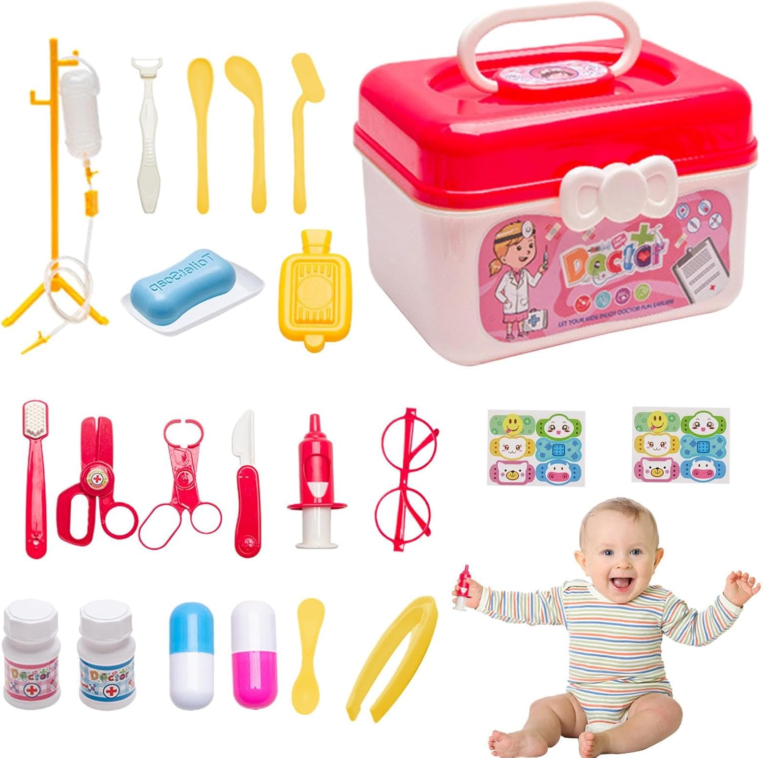 Connessione: questo set di giocattoli medico per bambini può migliorare l'interazione genitore-figlio, aiutare genitore-figlio a stabilire una connessione e sviluppare abilità motorie e pratiche 【Attrezzature per l'apprendimento】 Con il nostro set di giocattoli per pediatri, i bambini possono comprendere l'attrezzatura medica, aiutare i bambini a ridurre l'ansia dei medici, promuovere la qualità della manutenzione e imparare la responsabilità dei medici Materiale durevole: il set di giocattoli del medico per bambini non contiene oggetti appuntiti, è realizzato in materiale ABS di alta qualità, sano ed ecologico, sicuro e affidabile 【Aumenta la creatività】 Libera la creatività e l'immaginazione del tuo bambino con questo set di costumi da medico, un ricco set di 23 pezzi che funziona davvero, morbidi tappi per le orecchie in silicone per le orecchie dei bambini Ottima idea regalo: il nostro set di giocattoli medici per bambini offre ai bambini un divertimento infinito, un regalo perfetto per compleanno, Natale o Pasqua per tuo figlio o tua figlia. Che grande regalo, i tuoi bambini lo adoreranno