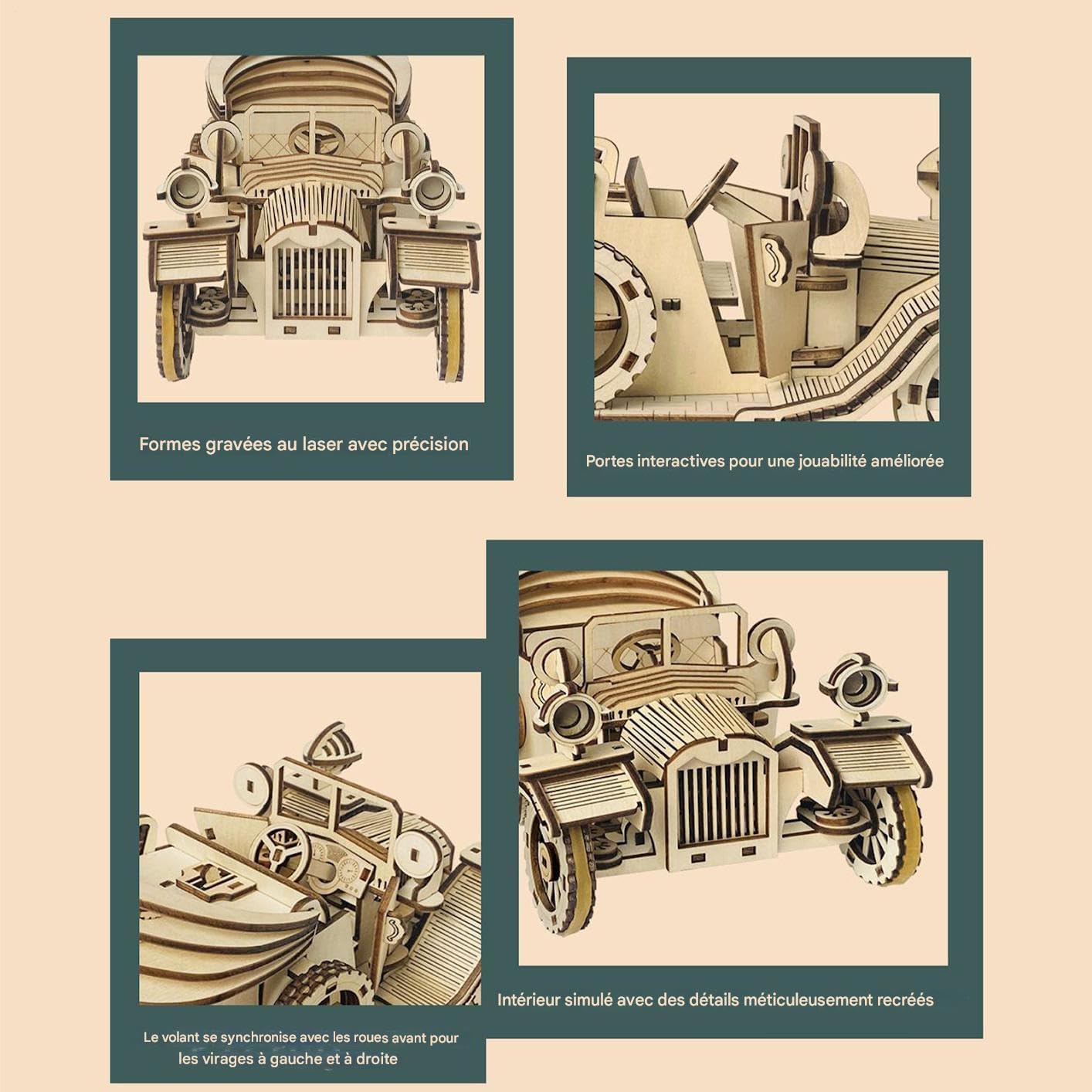 Funzione cognitiva e decorativa: questo puzzle 3D in legno combina sfida intellettuale e fascino artistico per migliorare l'estetica degli spazi ufficio attraverso un lavoro creativo e creativo, offrendo un'atmosfera di lavoro stimolante e unica Artigianato del legno: realizzato per preservare la consistenza naturale delle fibre, offrendo un'esperienza tattile liscia senza scheggiature e una finitura sicura, consentendo un assemblaggio e un gioco senza preoccupazioni per i Arte Vintage e Caratteristica: Grazie al suo tetto rimovibile e alle ruote che rotolano con fluidità, questo puzzle auto in legno incarna un know-how senza tempo, ideale per collezionisti e amanti delle creazioni artigianali Lavoro artigianale con dettagli complessi: progettato per offrire una precisione vintage con precisione scolpita in modo preciso, questo puzzle 3D auto in legno incoraggia un'immersione concentrazionale, fornendo un'esperienza gratificante di svago artistico mindful Concentrazione e realizzazione: il puzzle auto in legno incorpora un design a strati di 220 pezzi, consentendo agli utenti di alleviare lo stress sviluppando la pazienza e ottenendo soddisfazione attraverso il suo processo di assemblaggio gradualmente ritmato