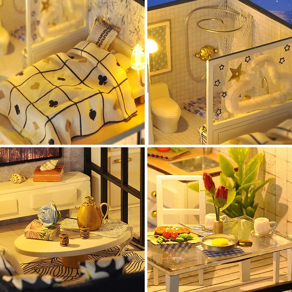Questo moderno modello di villa duplex in stile loft ricrea meticolosamente una scena domestica in miniatura. Presenta un elegante soggiorno, un elegante pianoforte, unaccogliente camera da letto, romantiche finestre a tutta altezza e una comoda cucina, il tutto accentuato da unilluminazione soffusa, che crea unatmosfera calda e accogliente. Questo kit di modellismo fai da te assemblato a mano include lucidatura e incollaggio. Il processo manuale è antistress e il pezzo completato emana un senso di realizzazione, perfetto per rilassarsi. Una volta assemblata, puoi accendere le luci e riprodurre musica per ammirare la tua mini villa realizzata a mano. I dettagli squisiti offrono piacere visivo, effetti rilassanti e aggiungono interesse alla tua vita. Questa casa fatta a mano è un regalo perfetto per le feste, un regalo premuroso e pratico per amici e familiari per Natale, compleanni e altre occasioni. È un ottimo oggetto decorativo e da collezione ed è apprezzato da persone di tutte le età. Ogni set viene sottoposto a rigorosi controlli di qualità e viene fornito con un set completo di accessori. Offriamo assistenza post-vendita professionale. Per qualsiasi domanda relativa al montaggio, contattare in qualsiasi momento il servizio clienti.