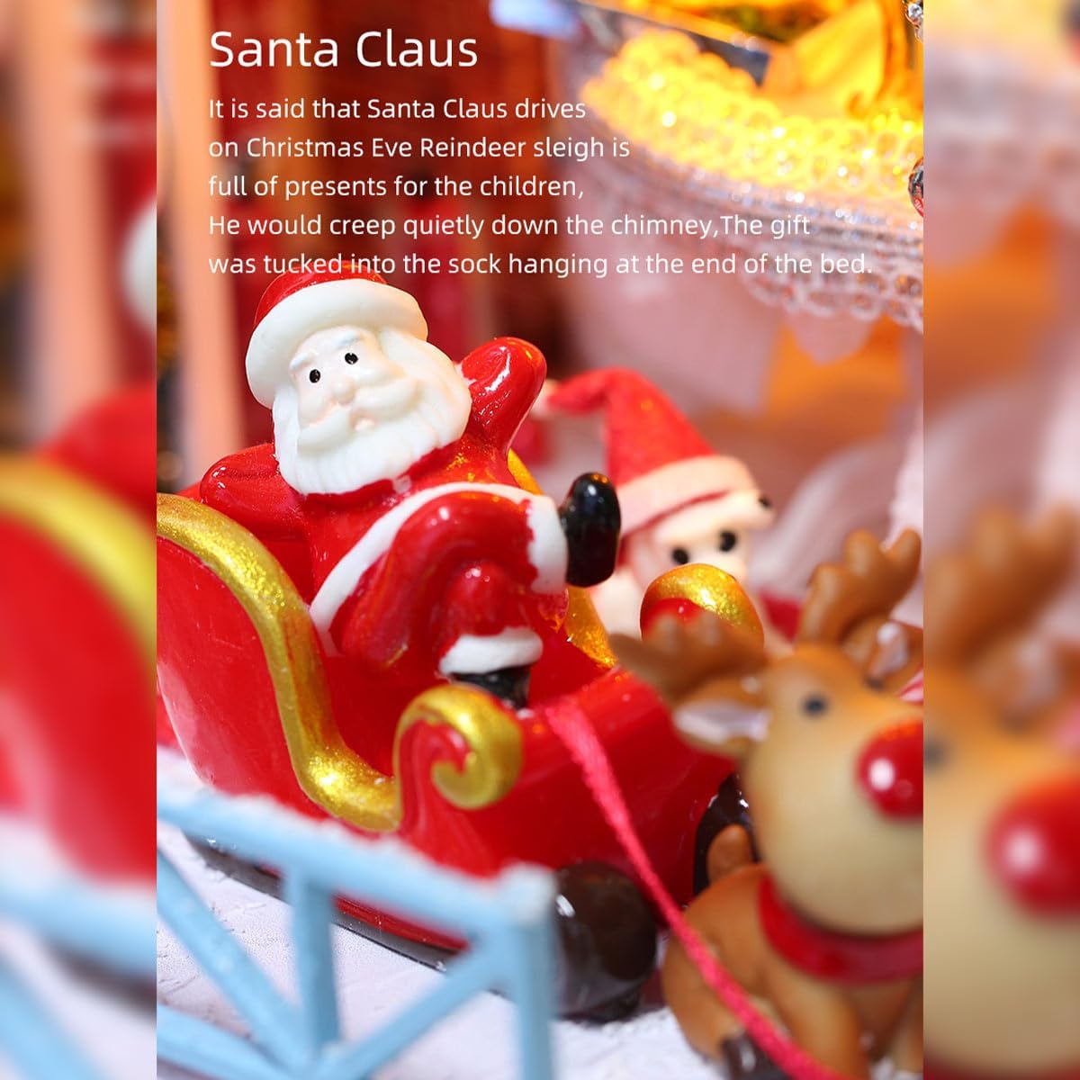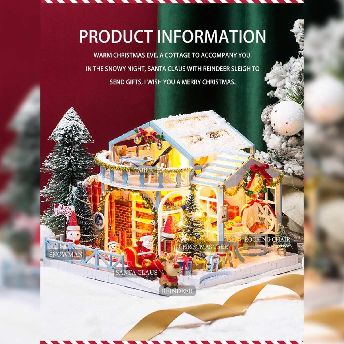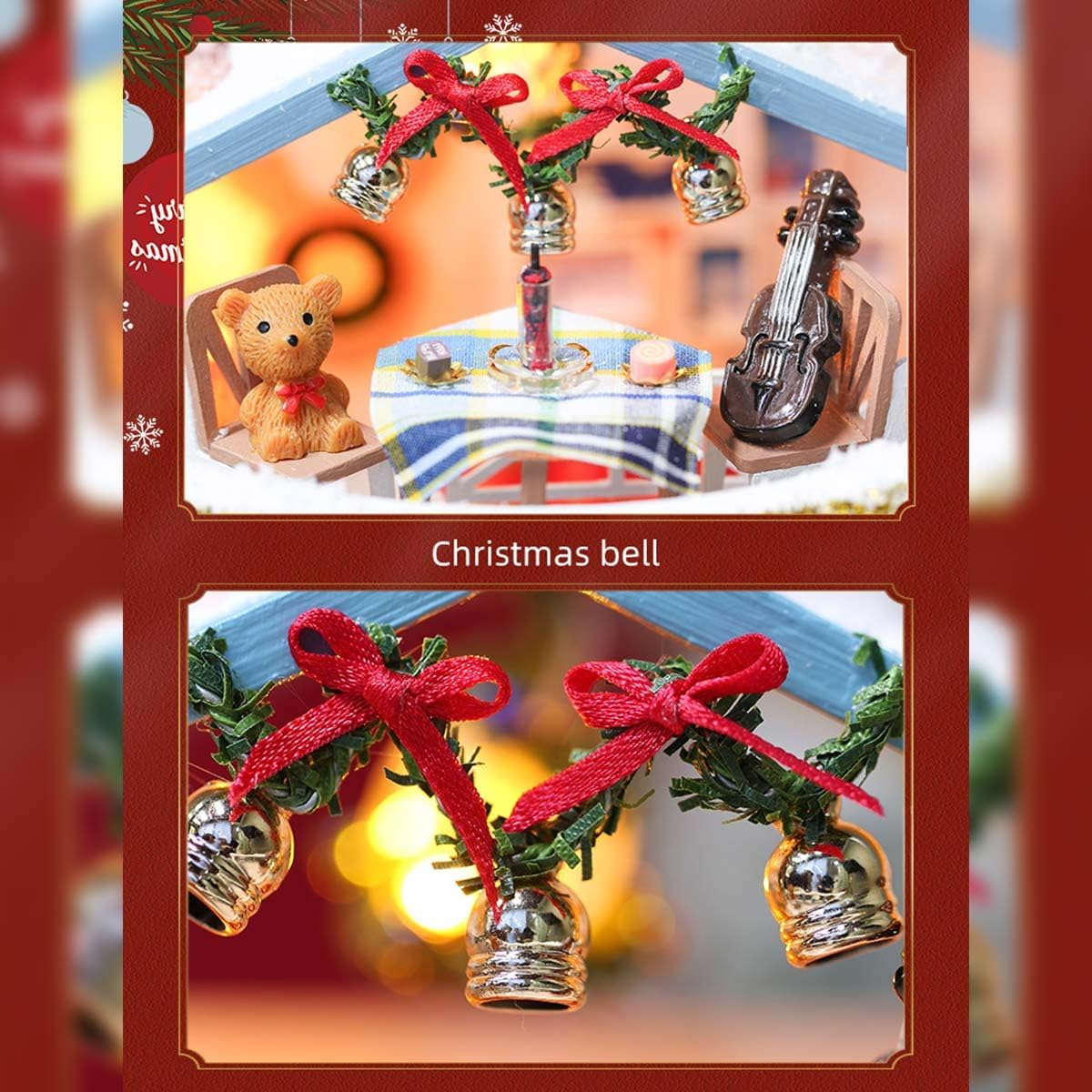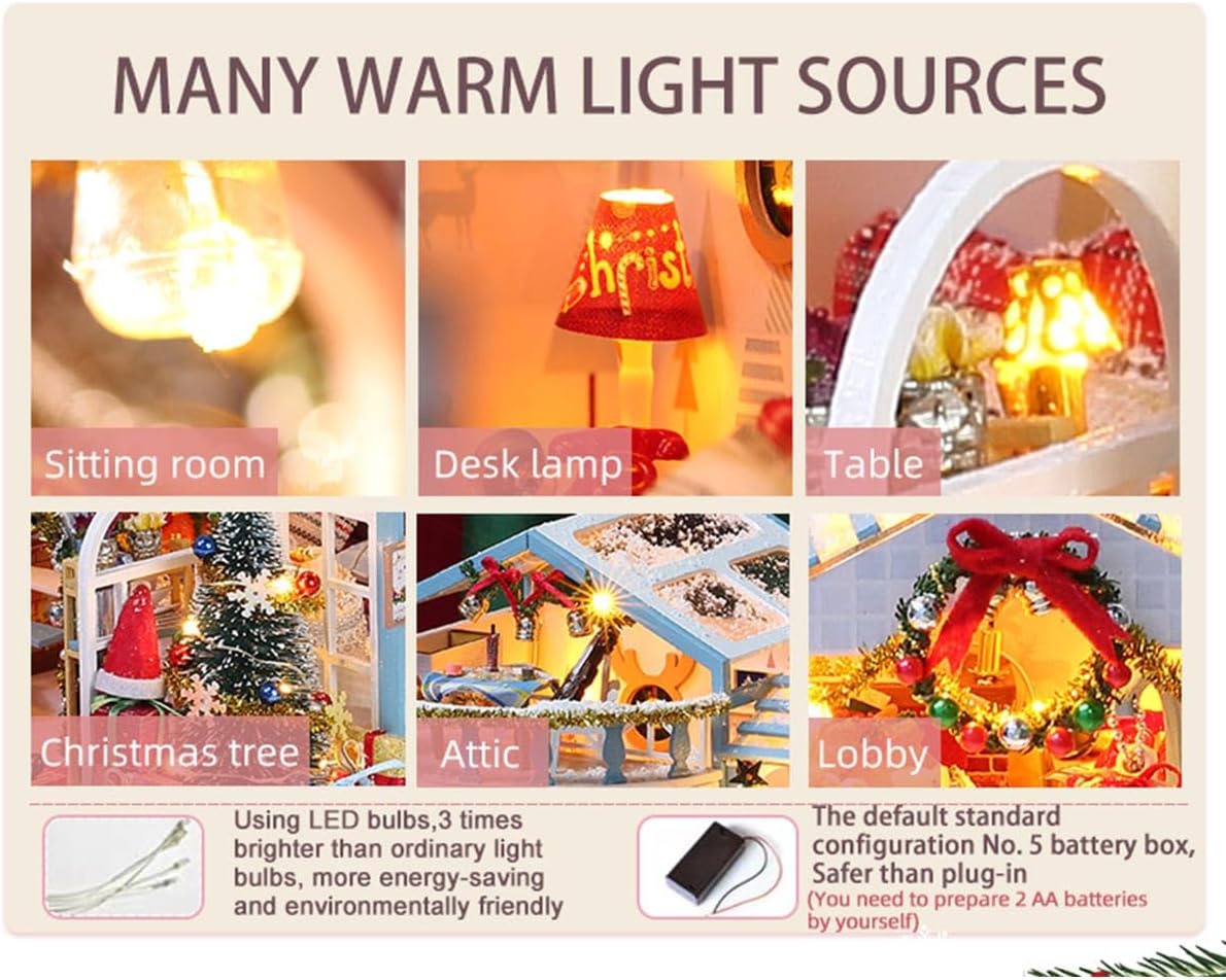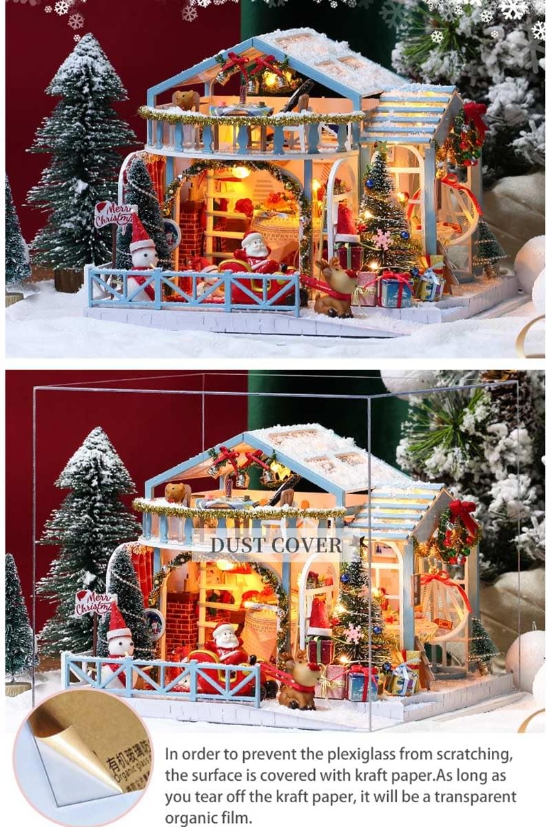 Motivo natalizio festivo: casa di neve bianca e blu con albero decorato, cibo natalizio e simpatico pupazzo di neve per una magica scena invernale. Costruzione interattiva fai-da-te: costruisci la struttura, disponi i mobili, installa luci a LED e aggiungi movimento musicale: un processo creativo gratificante. Mix di materiali di alta qualità: combinazione di legno, tessuto, carta e resina per texture realistiche e qualità duratura. Effetti luminosi e musicali: la calda luce LED e il carillon integrato creano un'accogliente atmosfera natalizia quando il modello è illuminato. Cupola protettiva in vetro: con una copertura trasparente e antipolvere per visualizzare il modello in miniatura finito mantenendolo immacolato.