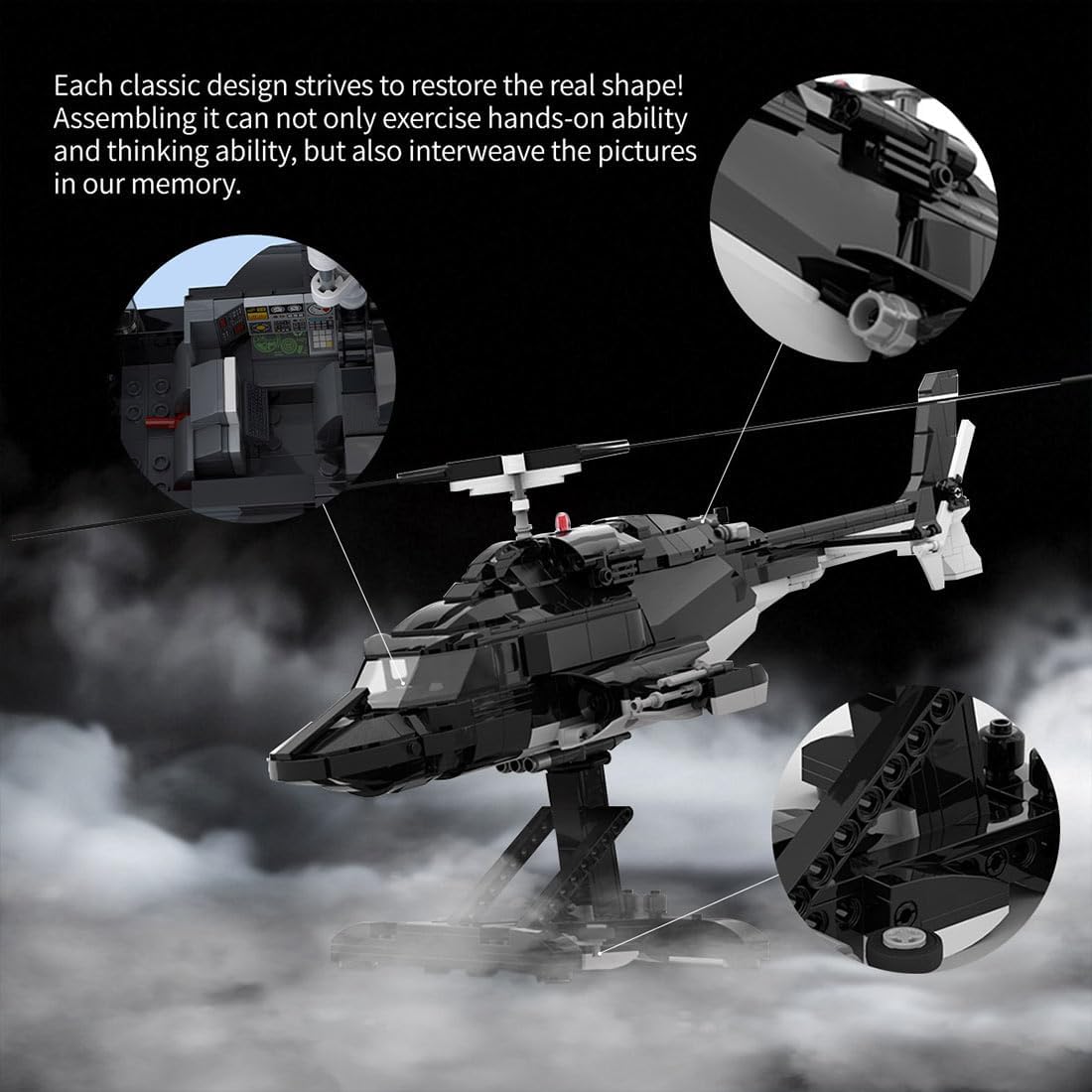 Autentico modello di elicottero MOC - Questo set di blocchi di costruzione per elicottero MOC è stato progettato da MOCturnal e si basa su un famoso elicottero cinematografico, ispirato al Bell 222 con due motori a turbina e dettagli realistici come una mitragliatrice montata esternamente Due versioni in un set: Il modello può essere costruito con o senza armi - una caratteristica flessibile per fan e collezionisti Promuove la concentrazione e le capacità motorie - Questo set di blocchi di costruzione giocattolo non serve solo come attività ricreativa creativa, ma anche per lo sviluppo di capacità di risoluzione dei problemi e pensiero spaziale Replica realistica con valore da collezione - Il modello di elicottero offre una struttura dettagliata e fedele all'originale con elevata stabilità strutturale - perfetta per gli appassionati di modellismo, collezionisti e appassionati di tecnologia 1039 mattoncini in ABS di alta qualità - Il kit del modello di elicottero contiene oltre 1000 parti su misura realizzate in materiale ABS ecologico - colorati, stabili e sicuri, senza spigoli vivi o sbavature