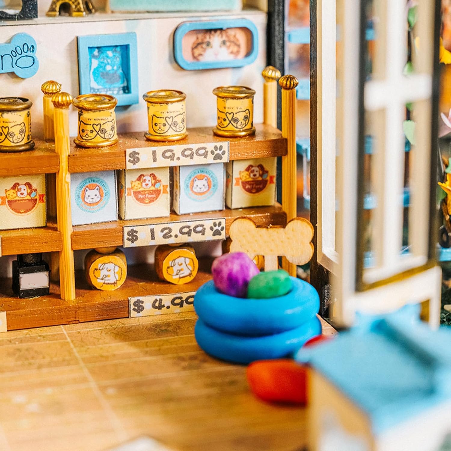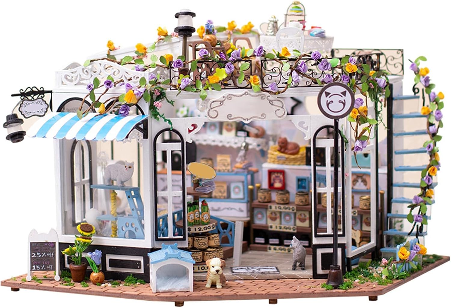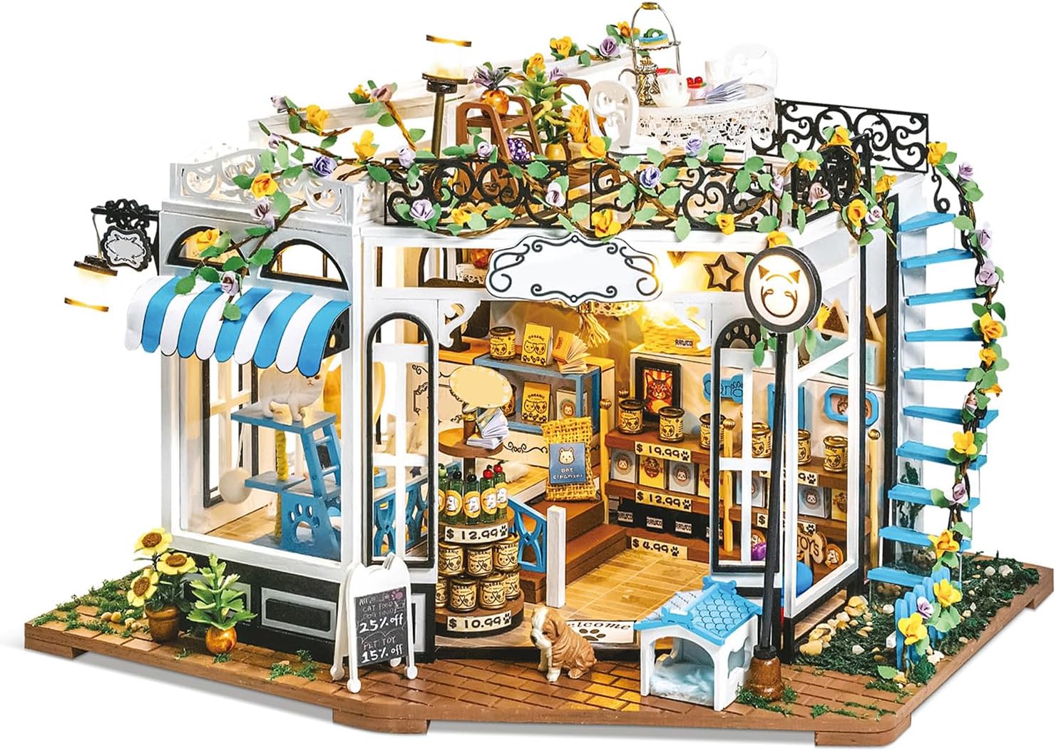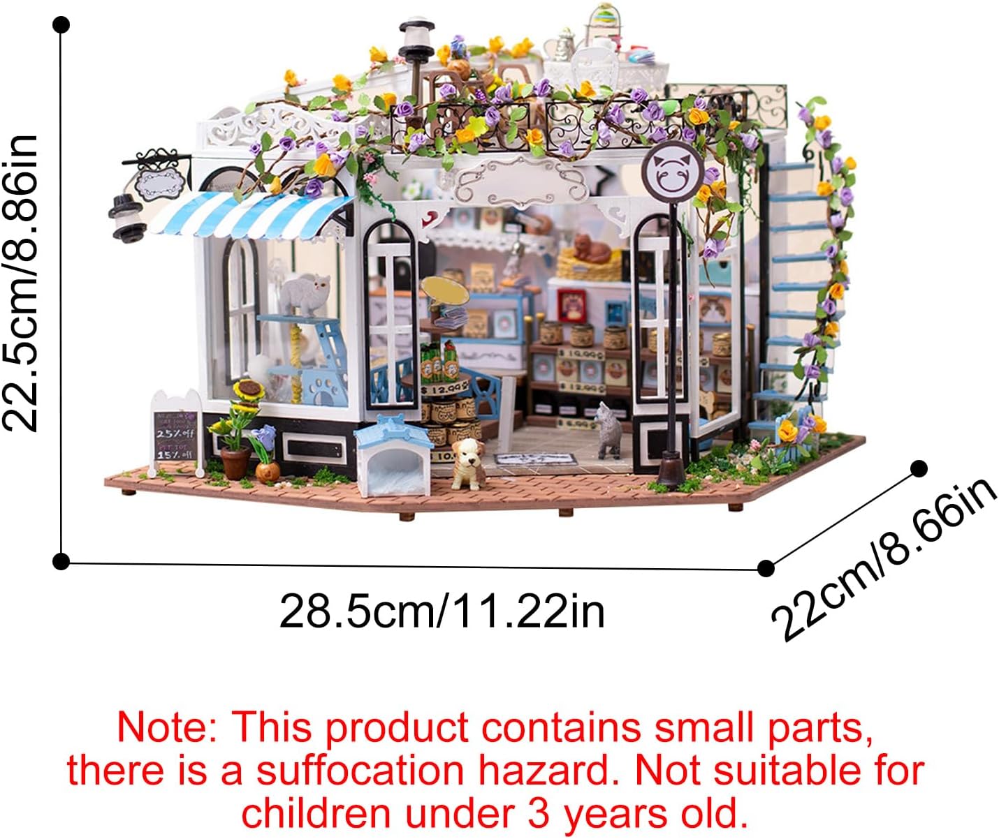 [MODELLO PARADISO PER ANIMALI DOMESTICI] Esplora un mini paradiso per animali domestici con numerosi dettagli come un'area snack, una cuccia per cani, un'area di riposo per animali domestici e un tiragraffi a due piani che creano un'esperienza coinvolgente. [ARTIGIANATO PREMIUM] Realizzato in legno MDF, tessuto, metallo e carta, la trama squisita e i dettagli di questo modello lo rendono un pezzo di artigianato avanzato e di alta qualità. [ILLUMINAZIONE ACCOGLIENTE] Migliora il tuo spazio con il sistema di illuminazione a LED che crea un'atmosfera accogliente di notte, rendendolo un'aggiunta perfetta al tuo design degli interni. [Sfida le tue abilità] Ideale per adulti con esperienza artigianale, l'impegnativo processo di assemblaggio di questo modello offre un senso di realizzazione e miglioramento delle abilità. [PERFETTO] Le dimensioni finali di 28,5*22,5*22 cm lo rendono un modello da collezione ideale e unico per gli amanti degli animali o gli appassionati di artigianato, pratico e significativo per ogni occasione.