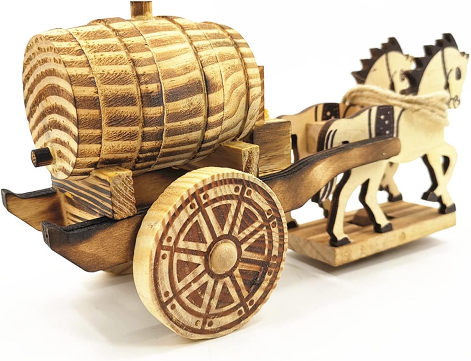 Materiale durevole: il modello in legno del carrello a doppia testa è realizzato in materiale di legno di alta qualità, robusto, non facile da danneggiare e può essere utilizzato a lungo. Design retrò: adotta il design dell'antica carrozza doppia cinese e sul retro è presente una piccola botte di legno. Lo stile è retrò, interessante e molto collezionabile. Esecuzione squisita: la superficie del modello di carrozza a due cavalli è lucida, liscia e priva di sbavature ed è confortevole. C'è una corda di canapa sul collo del cavallo, che è classica e retrò. La superficie della carrozza ha una struttura chiara ed è molto delicata nella lavorazione. Mobile: il carrello ha ruote davanti e dietro e due ruote dietro. È molto stabile e può essere spinto forte per farlo funzionare. È molto interessante e molto adatto ai bambini per praticare le abilità manuali. Multifunzionale: design classico in stile retrò cinese, bello, mobile, da collezione e decorativo, adatto per la decorazione d'interni o altre decorazioni d'interni.