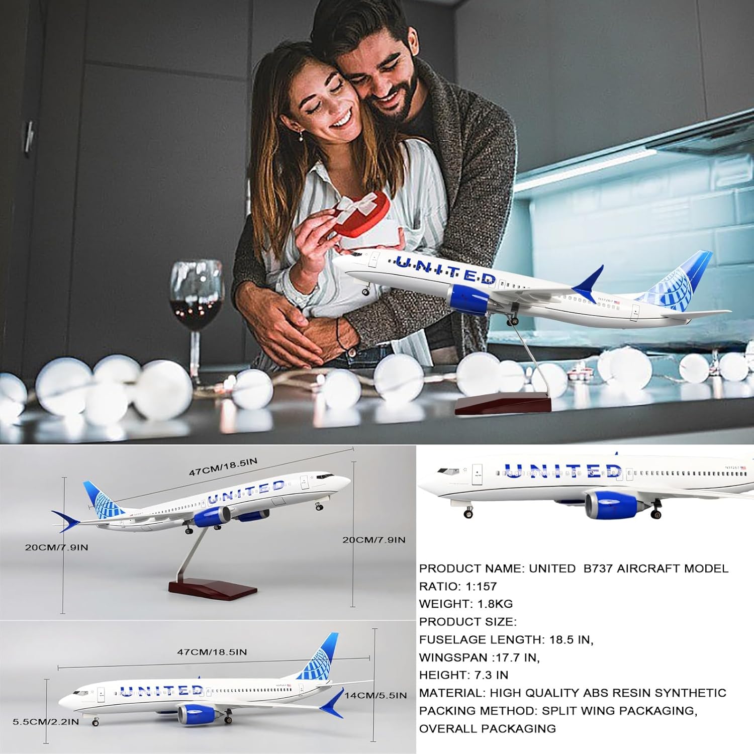 【Costruzione pressofusa di alta qualità】: realizzata in lega di zinco di alta qualità e plastica ABS, questa replica in scala 1:85 presenta una fusoliera liscia, motori a turbina cavi realistici e finestrini della cabina stampati con precisione for un'autenticità di livello museale. Contorni dei finestrini realistici e livree specifiche della compagnia aerea for un'esposizione di livello museale. 【Funzionalità interattive for un gioco dinamico】: carrello di atterraggio retrattile a scorrimento fluido, pale del motore a rotazione manuale (design della turbina cava) e attivazione opzionale tramite tocco/voce (alimentato a batteria) migliorano il coinvolgimento. 【Montaggio a scatto senza colla】 – Il corpo in lega pressofusa resistente con connettori colorati garantisce un'installazione senza sforzo; include una base espositiva in legno lucidato con logo United inciso. 【Aspetto estetico migliorato】 – Presenta una vivace verniciatura bicolore con finitura lucida, accenti metallici sulle alette e decalcomanie della cabina di pilotaggio stampate con precisione for immagini realistiche. Passa dalla modalità di volo a quella di atterraggio con ruote rimovibili. Le turbine del motore ruotano manualmente mentre i bordi affilati delle ali (attenzione: maneggiare con cura) migliorano il realismo. 【Regalo completo】Confezione pronta all'uso. Include una custodia protettiva in acrilico, una guida di montaggio illustrata e un certificato di autenticità da regalare a piloti, viaggiatori o collezionisti di modelli. Ideale for gli scaffali degli appassionati di aviazione, come decorazione for la scrivania dell'ufficio, come cimelio di pensionamento/laurea o come elemento centrale for avviare una conversazione nei soggiorni.