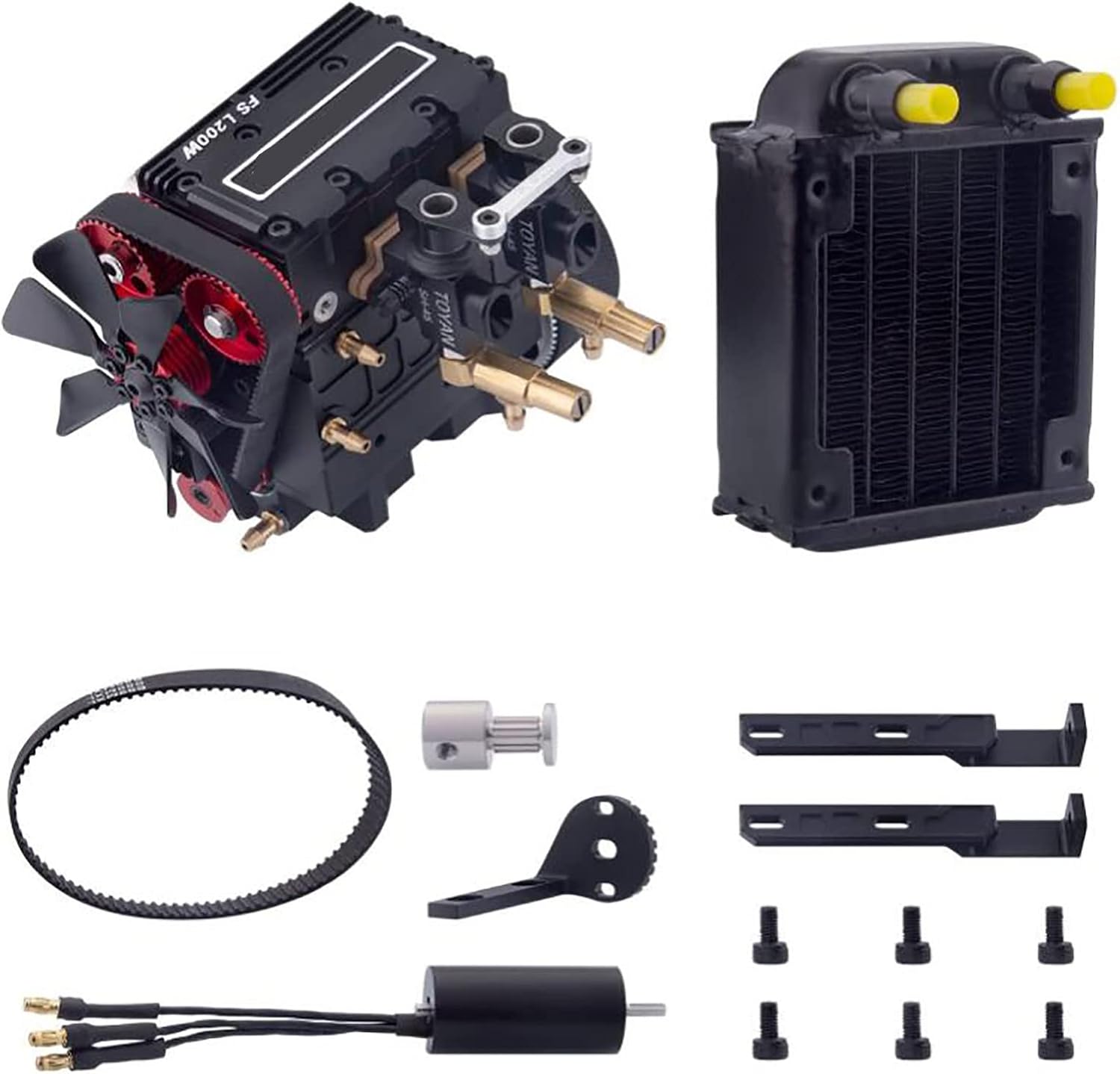 * [Modello squisito]: questo è un motore a metanolo bicilindrico in linea a quattro tempi raffreddato ad acqua molto raffinato. Materiale metallico, la cilindrata è di 7 cc. Può essere meglio compatibile con i modelli RC, adatto per auto RC 1:8, 1:10, 1:14, modello di nave RC, migliora il rapporto di potenza dell'unità. *[Design albero motore]: albero motore allungato e albero motore asincrono. Il design allungato dell'albero motore può essere utilizzato con cambi avanti/retromarcia. Adottando la struttura asincrona dell'albero motore, il funzionamento è più fluido e la risposta all'accelerazione è più sensibile! La velocità massima è di 16.000 giri/min. *[Raffreddamento ad acqua e doppi carburatori]: il motore FS-L200W adotta un nuovissimo serbatoio di raffreddamento ad acqua, combinato con una ventola di raffreddamento, per ridurre il rischio di surriscaldamento e migliorare le prestazioni di autoraffreddamento. Con un nuovo design a doppio carburatore, il giocatore ha più spazio di regolazione, rendendo la risposta dell'acceleratore più sensibile e il lavoro più stabile. *[Prestazioni superiori]: la corsa lunga può aumentare efficacemente la coppia. Puleggia regolabile di grandi dimensioni con motore brushless a coppia elevata. La struttura compatta della puleggia regolabile riduce efficacemente il rischio di salto dei denti durante il funzionamento ad alta velocità. Paraolio flessibile personalizzato per risolvere in modo completo il problema delle perdite di olio dai cuscinetti. *[Facile da montare]: il motore è di alta qualità, ben realizzato e pratico. Goditi l'assemblaggio mentre costruisci il motore. Può essere utilizzato come decorazione o adattato a un modello RC. Il modello perfetto da regalo e da collezione per gli appassionati di modellismo e i collezionisti.