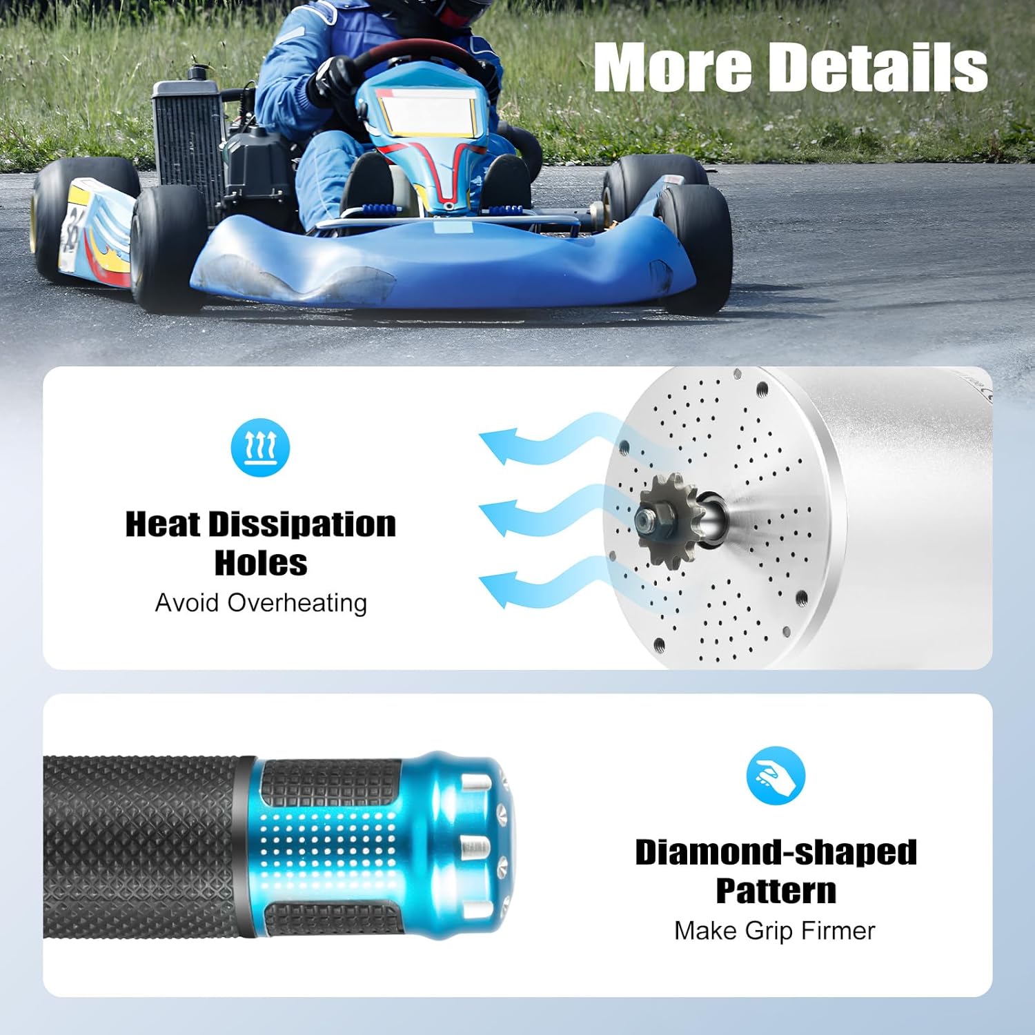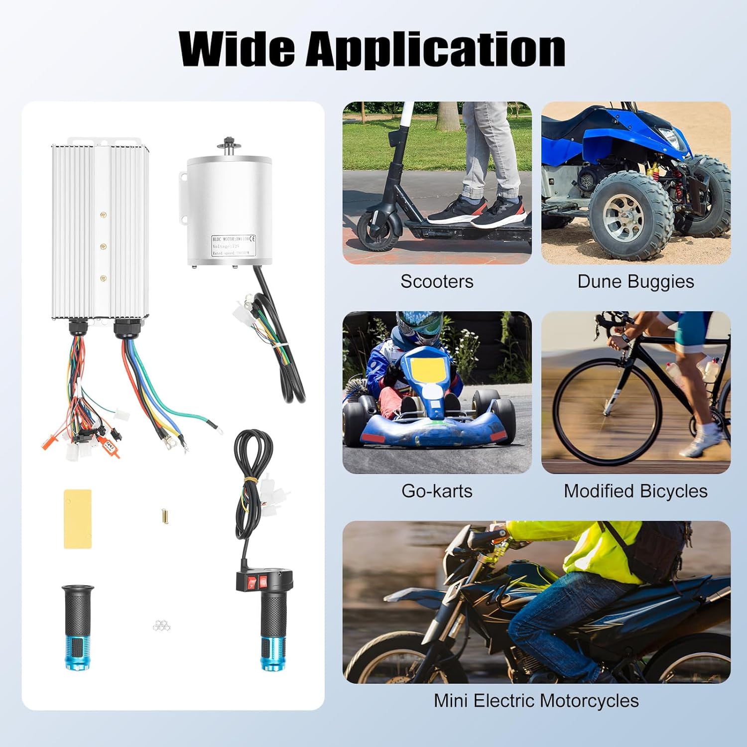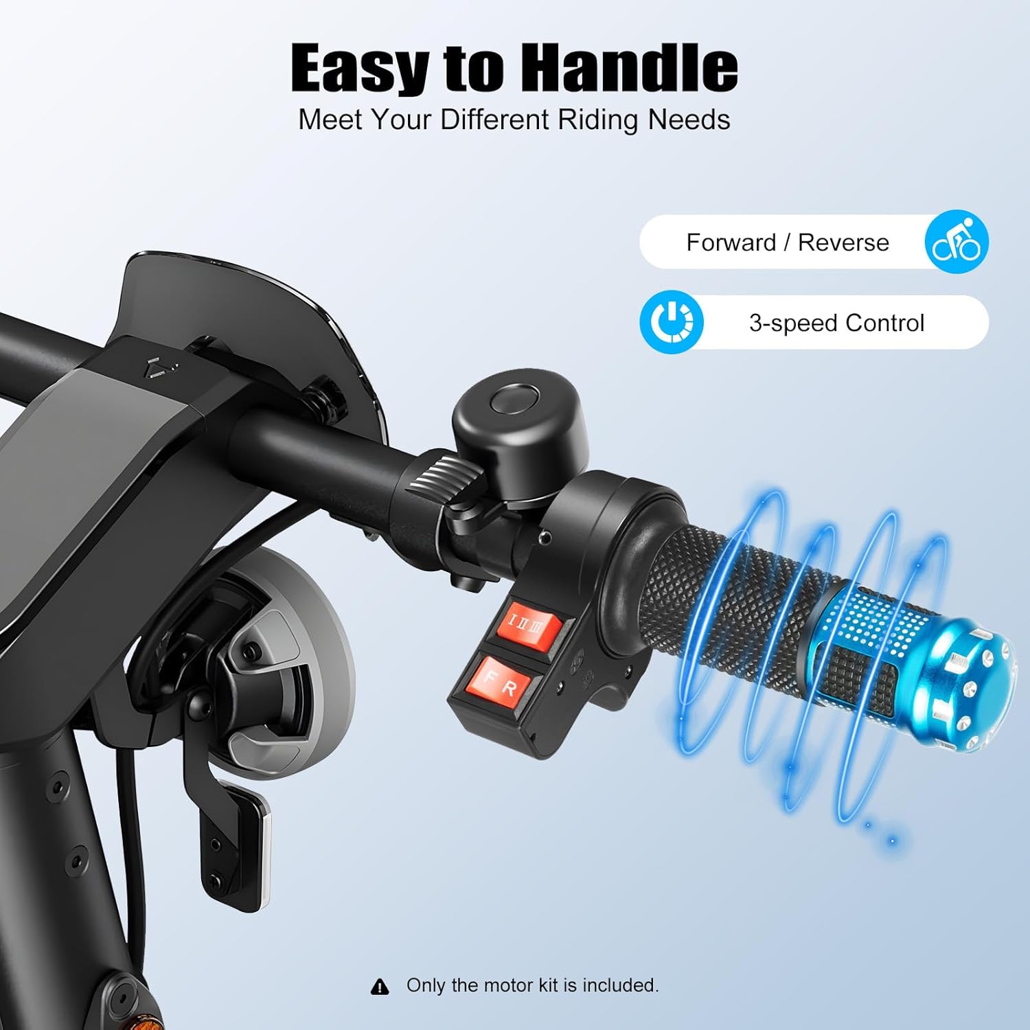 Elevata capacità di carico: la ruota ha un'elevata capacità di carico (100-200 kg). Che tu sia un atleta professionista o un atleta amatoriale, ti offre un'emozionante esperienza ciclistica. Prestazioni eccellenti: L'elevata potenza (3000W) consente una velocità nominale di 4900 giri al minuto e una velocità massima di 6600 giri al minuto. Sembra di scivolare in un tunnel spazio-temporale che unisce tecnologia e velocità, interpretando perfettamente l'estetica della velocità. Sicuro da usare: la ruota è protetta IP33 e ha un isolamento di Classe E. Anche durante le attività all'aperto in ambienti difficili, ti offre più tranquillità. Robusto e durevole: il motore è costituito da un alloggiamento in alluminio di alta qualità con bobine in rame puro. Sono resistenti alle alte temperature, silenziosi, resistenti alla corrosione e alla ruggine e garantiscono una lunga durata. Facile da usare: nella consegna è incluso un manubrio. L'impugnatura dell'acceleratore è dotata di un interruttore avanti/indietro e di un interruttore a 3 velocità. Sono facili da usare e soddisfano le diverse esigenze di guida.