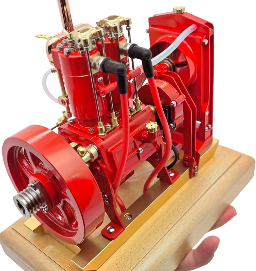 Motore vintage: questo motore presenta una configurazione a due cilindri sincroni verticali ed è dotato di un regolatore di velocità meccanico per mantenere la velocità stabile. Il motore è dotato di raffreddamento a circolazione d'acqua con radiatore, pompa dell'acqua e ventola. Realizzato in ottone e acciaio inossidabile, questo motore è un perfetto capolavoro meccanico. Completamente assemblato e montato su base in legno, è pronto per l'uso subito dopo aver aggiunto il carburante. Le prestazioni del motore ti sorprenderanno perché ti offrono un'esperienza unica di funzionamento meccanico Principio realistico: perfetto come ottimo strumento per l'educazione e l'apprendimento della comprensione del principio di funzionamento e dei principi meccanici del kit motore Regalo perfetto: sorprendi i tuoi amici e familiari amanti della tecnologia a Natale, Halloween, compleanni e altre occasioni! Il nostro kit mini motore è un regalo unico e squisito di alta qualità e lavorazione eccellente. Perfetto come decorazione sofisticata per la casa o come ornamento unico per la collezione di desktop da ufficio. Suggerimenti caldi: adatto per adulti e adolescenti di età superiore ai 16 anni. Si prega di utilizzare la macchina secondo le istruzioni per evitare danni alla macchina dovuti a un funzionamento errato