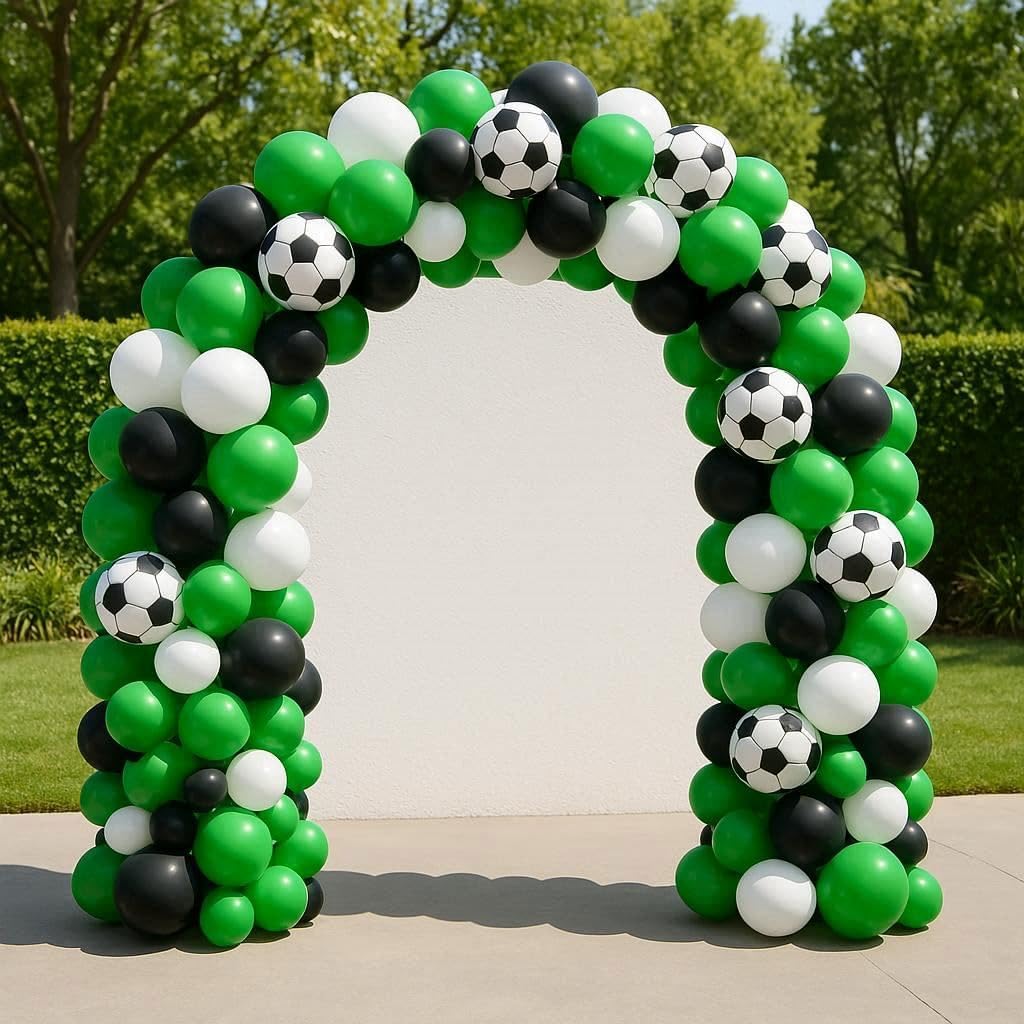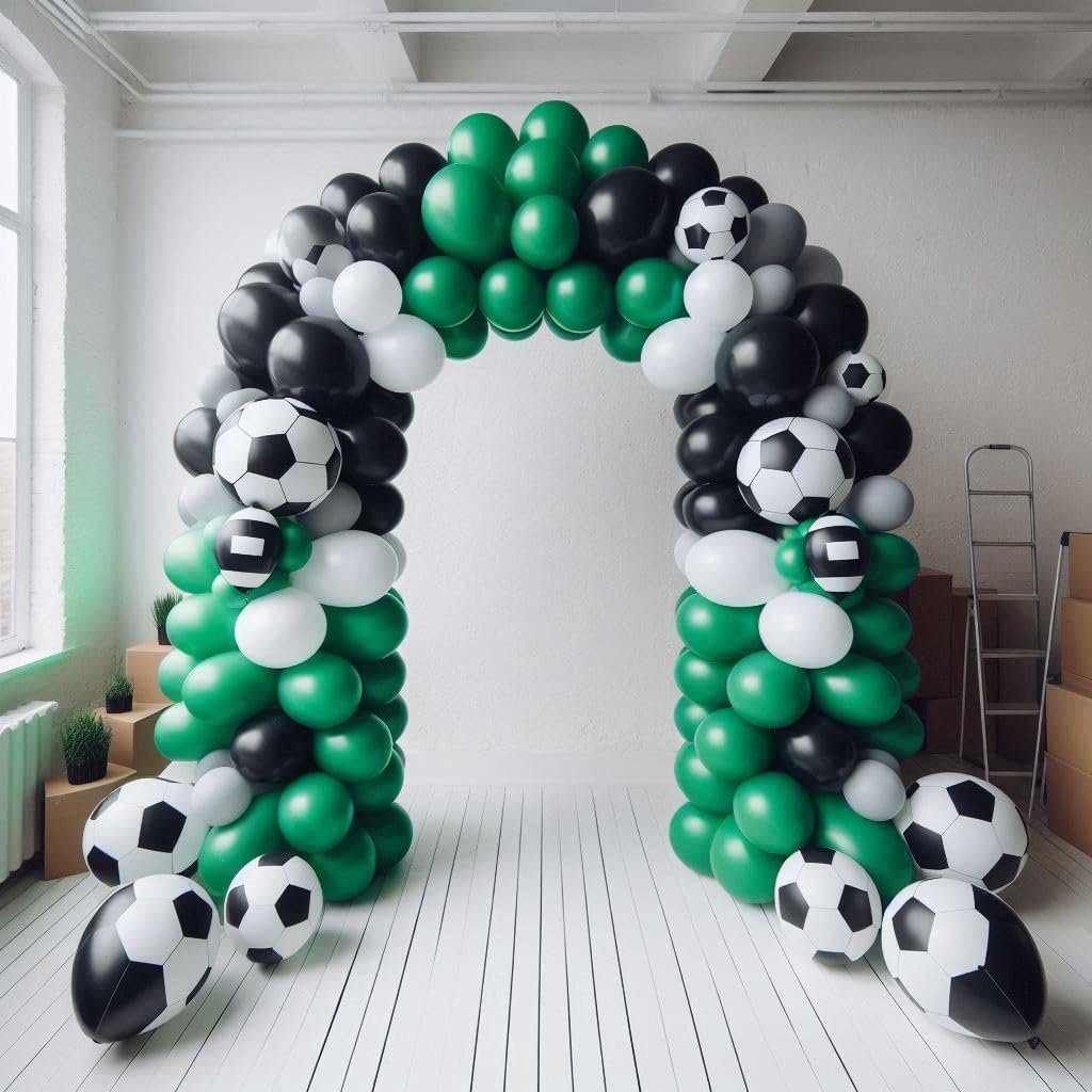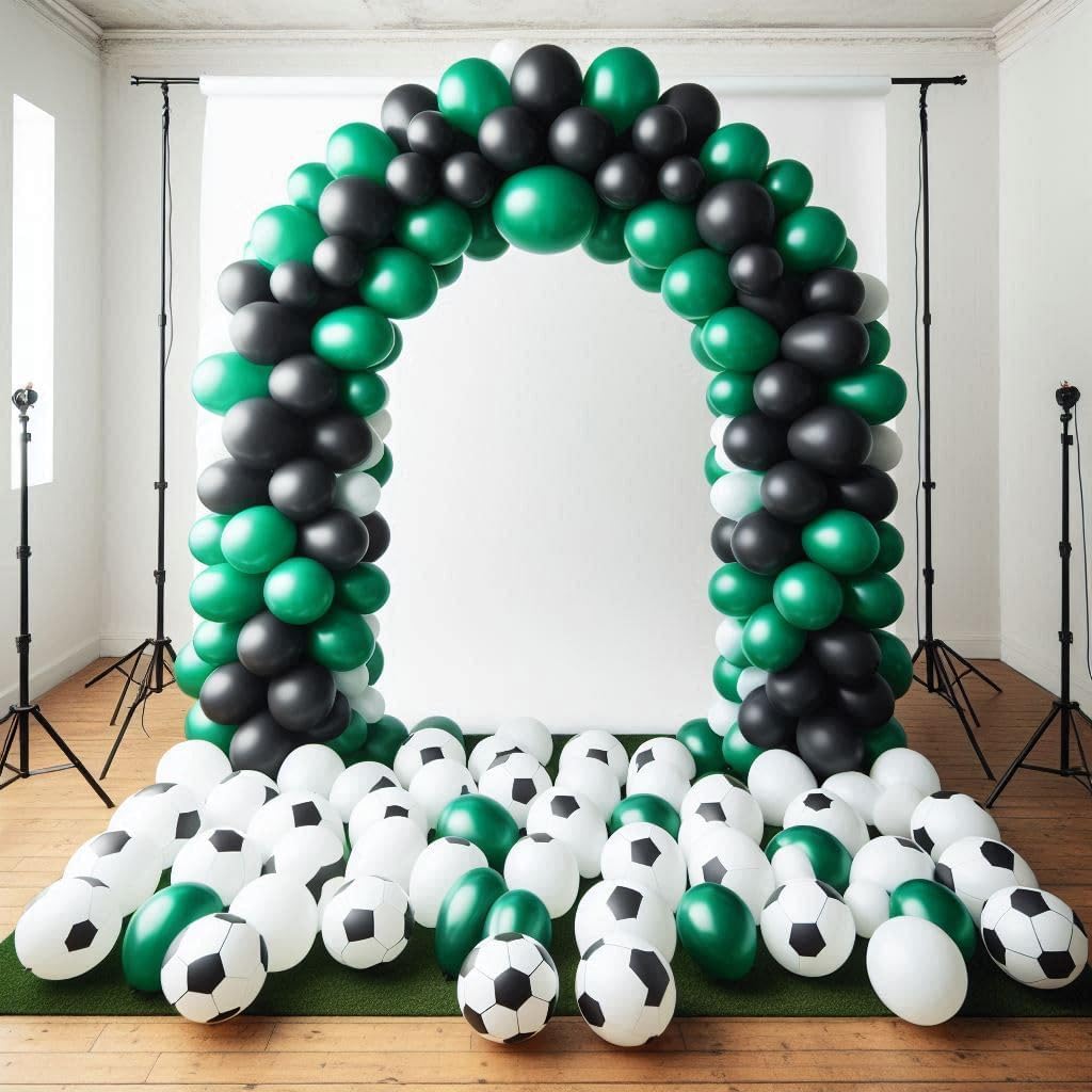 Kit di 45 palloncini da calcio con ghirlanda: la confezione da 45 palloncini include palloncini verdi neri con stampa di calcio con 1 striscia ad arco e 1 rotolo di punti di colla per palloncini, rendendo la tua festa di calcio indimenticabile. Il kit per arco a palloncino (pompa non inclusa) è fornito per aiutarti a realizzare ghirlande o archi di palloncini più facilmente Palloncini di alta qualità: ospitare un evento è già stressante, l'ultima cosa di cui hai bisogno è preoccuparti di quanto dureranno i tuoi palloncini. I palloncini sono realizzati in pelle spessa di alta qualità che non si pop facilmente e sono VERI al loro colore. Il lattice permette ai palloncini di allungarsi molto bene quando li gonfiate. Uso versatile: dai inizio alle feste di calcio con questo epico arco a palloncino! Questi eccellenti palloncini sono perfetti per una miriade di occasioni, tra cui feste di club di calcio, compleanni di ragazzi, feste di calcio, baby shower, feste a tema Coppa del Mondo e molto altro ancora. Creando un capolavoro di palloncini, questo grande arco a palloncino farà sicuramente parlare i tuoi ospiti e sarà una grande aggiunta per decorare il tuo locale. Installazione semplice: decora la tua festa con questo bellissimo kit di ghirlande per palloncini, hai la tua ispirazione unica per rendere questi palloncini nella forma desiderata, questo è un kit fai da te che non hai bisogno di esperienza per realizzare bellissime ghirlande di palloncini. Goditi il divertimento fai da te per appenderli in luoghi freschi come alberi, pareti, finestre, porte, tavoli da pranzo e ovunque tu voglia. Promemoria delicata: si consiglia di utilizzare una pompa ad aria manuale o una pompa elettrica ad alta potenza per il gonfiaggio. Non gonfiare troppo, è necessario solo l'85%-95% del gas, non è consigliabile utilizzare il palloncino in un ambiente ad alta temperatura. Gonfiare il palloncino prima della festa e tenerlo in un luogo fresco e ventilato. I palloncini sono ossidati nell'aria, creando un effetto opaco che è visivamente migliore se utilizzato a una festa