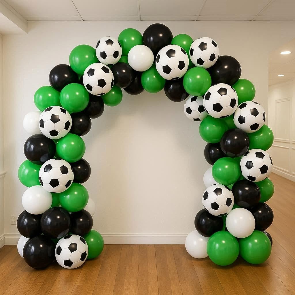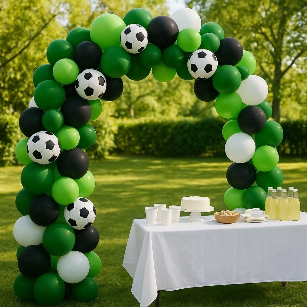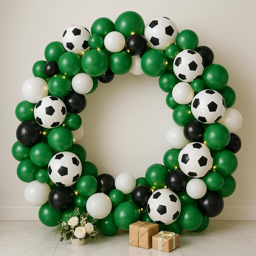 Kit di 45 palloncini da calcio con ghirlanda: la confezione da 45 palloncini include palloncini verdi neri con stampa di calcio con 1 striscia ad arco e 1 rotolo di punti di colla per palloncini, rendendo la tua festa di calcio indimenticabile. Il kit per arco a palloncino (pompa non inclusa) è fornito per aiutarti a realizzare ghirlande o archi di palloncini più facilmente Palloncini di alta qualità: ospitare un evento è già stressante, l'ultima cosa di cui hai bisogno è preoccuparti di quanto dureranno i tuoi palloncini. I palloncini sono realizzati in pelle spessa di alta qualità che non si pop facilmente e sono VERI al loro colore. Il lattice permette ai palloncini di allungarsi molto bene quando li gonfiate. Uso versatile: dai inizio alle feste di calcio con questo epico arco a palloncino! Questi eccellenti palloncini sono perfetti per una miriade di occasioni, tra cui feste di club di calcio, compleanni di ragazzi, feste di calcio, baby shower, feste a tema Coppa del Mondo e molto altro ancora. Creando un capolavoro di palloncini, questo grande arco a palloncino farà sicuramente parlare i tuoi ospiti e sarà una grande aggiunta per decorare il tuo locale. Installazione semplice: decora la tua festa con questo bellissimo kit di ghirlande per palloncini, hai la tua ispirazione unica per rendere questi palloncini nella forma desiderata, questo è un kit fai da te che non hai bisogno di esperienza per realizzare bellissime ghirlande di palloncini. Goditi il divertimento fai da te per appenderli in luoghi freschi come alberi, pareti, finestre, porte, tavoli da pranzo e ovunque tu voglia. Promemoria delicata: si consiglia di utilizzare una pompa ad aria manuale o una pompa elettrica ad alta potenza per il gonfiaggio. Non gonfiare troppo, è necessario solo l'85%-95% del gas, non è consigliabile utilizzare il palloncino in un ambiente ad alta temperatura. Gonfiare il palloncino prima della festa e tenerlo in un luogo fresco e ventilato. I palloncini sono ossidati nell'aria, creando un effetto opaco che è visivamente migliore se utilizzato a una festa