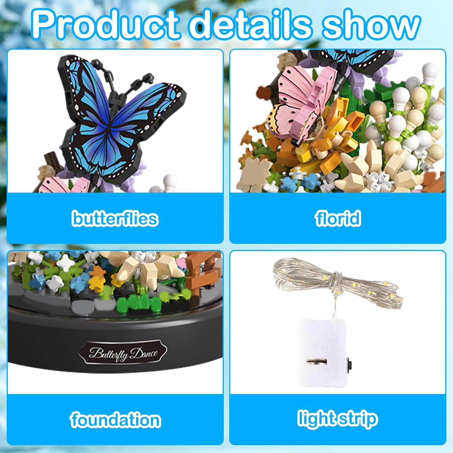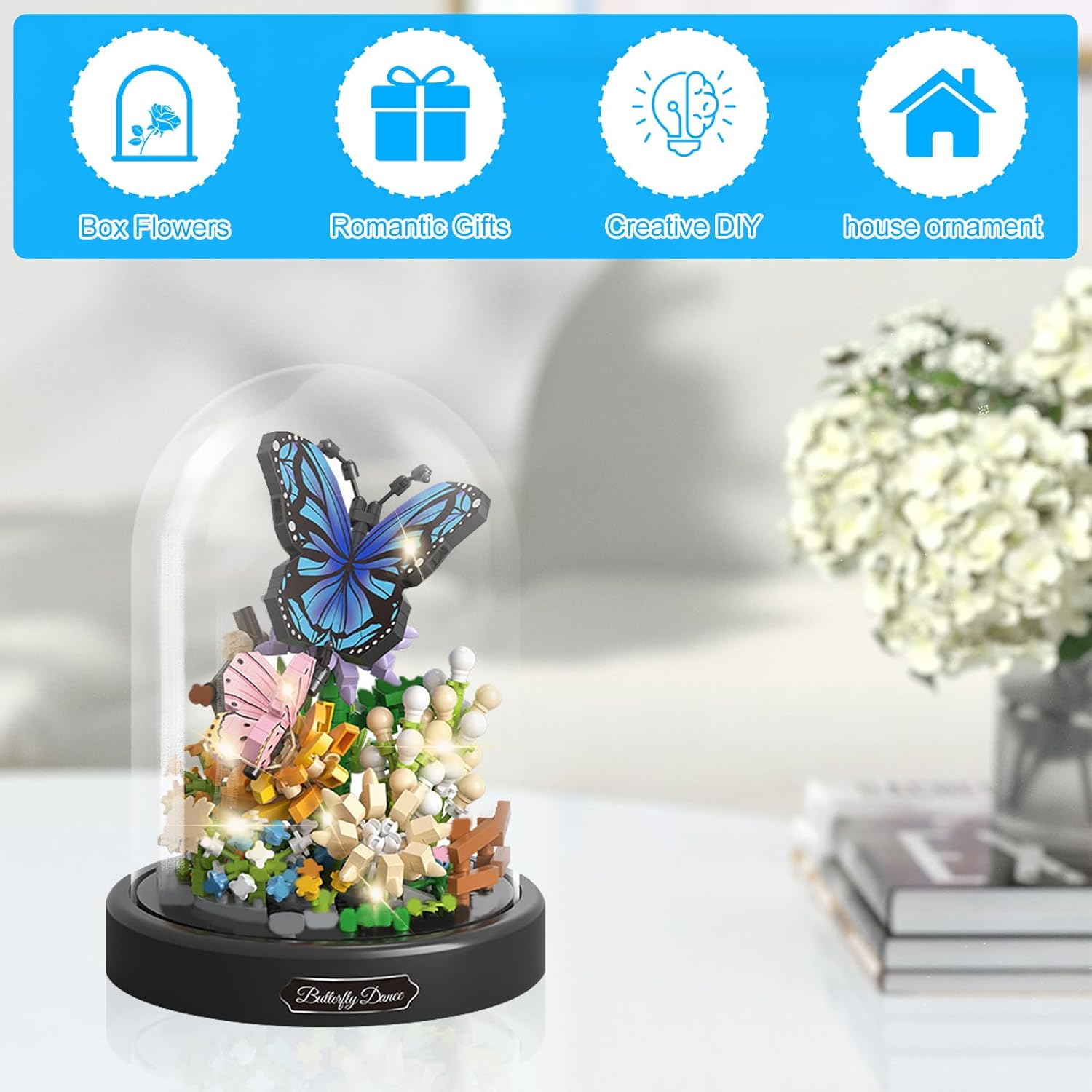 Kit di giocattoli per costruire fiori: riceverai un set di bouquet di fiori e blocchi di farfalle con una copertura antipolvere trasparente che ti consente di vedere chiaramente la vivida bellezza del bouquet e mantenere il pezzo sempre bello. COSTRUZIONE CREATIVA: i colori vivaci dei fiori da costruzione creano una meravigliosa atmosfera fantastica per iniziare la giornata con energia, e i mini fiori da costruzione hanno dettagli di fiori e farfalle ancora più realistici per creare una sensazione unica di realismo. Facile da montare: i mattoncini per fiori e insetti vengono forniti con istruzioni dettagliate che puoi seguire per costruire rapidamente e facilmente set di giocattoli per costruire fiori da favola. Tieni presente che sono inclusi mini elementi costitutivi, quindi ti consigliamo di utilizzare uno strumento per completare il processo. MATERIALE DI ALTA QUALITÀ: Il giocattolo per costruire fiori è realizzato in plastica ABS sicura e di alta qualità, liscia al tatto, senza sbavature, struttura robusta e colori brillanti e realistici. Può essere utilizzato come decorazione per soggiorno, camera da letto, feste e ufficio per decorare la tua casa. Regalo perfetto: il giocattolo per costruire fiori può essere usato come regalo per amanti, mogli, amici e così via, come Natale, compleanno, San Valentino, matrimonio, Capodanno, anniversario, festa della mamma e altri regali festivi, il bouquet che non sbiadisce rappresenta l'amore eterno.