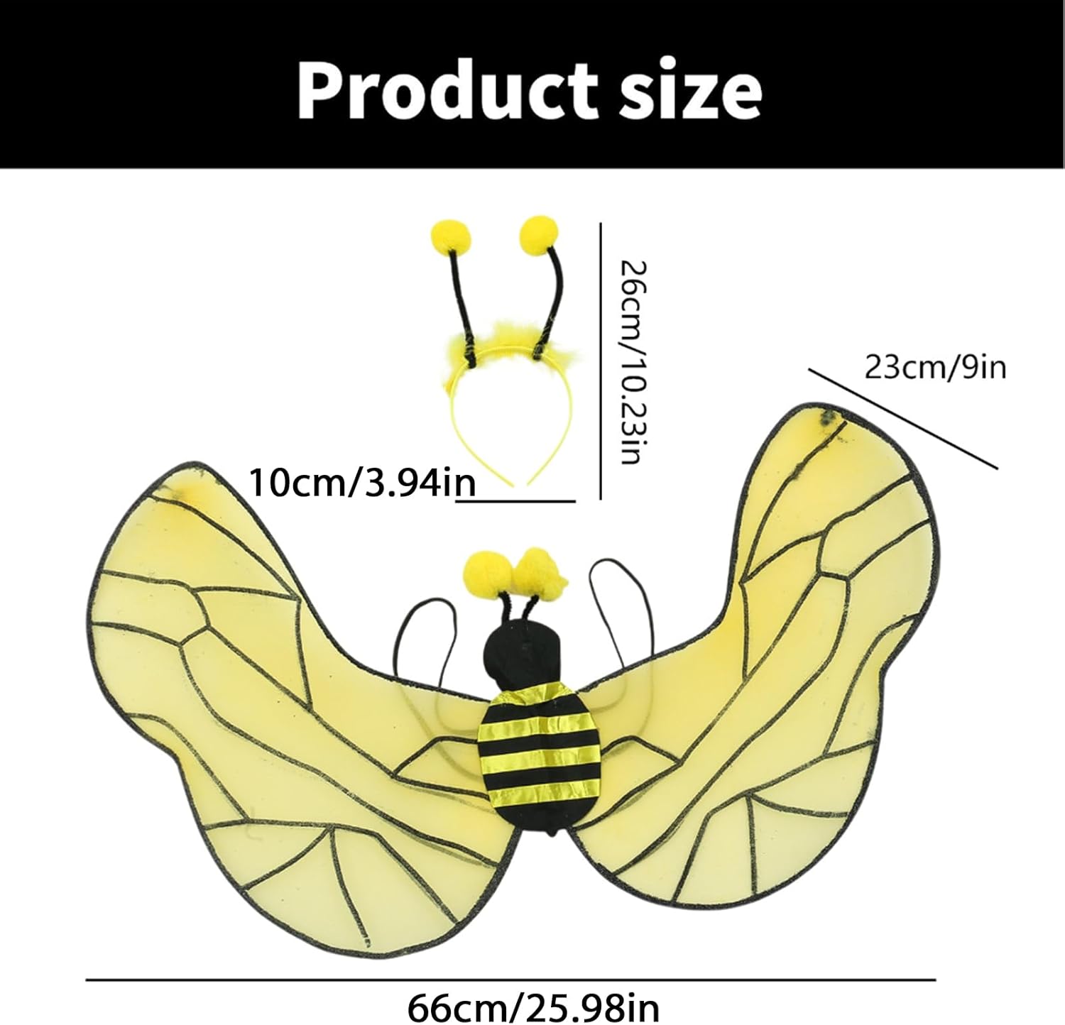 Accessori per costume da api, ali di api, bacchetta magica, fascia per orecchie, elastico regolabile per adattarsi al set adatto per donne adulte, ragazze. Facile da indossare e da togliere, l'ala delle api con elastico in vita, si può indossare facilmente per vestire qualsiasi outfit. Materiali realizzati in stoffa, comodi, morbidi, leggeri da indossare, facili da spostare, cosplay e danza. Ampia gamma di applicazioni, è per festival all'aperto, feste a tema fiabe, costume di Halloween, fotografia, regali di compleanno per ragazze, spettacoli di danza, travestimenti da principessa delle fate, abbigliamento quotidiano, spettacoli scolastici. Il pacchetto include: Kit costume api