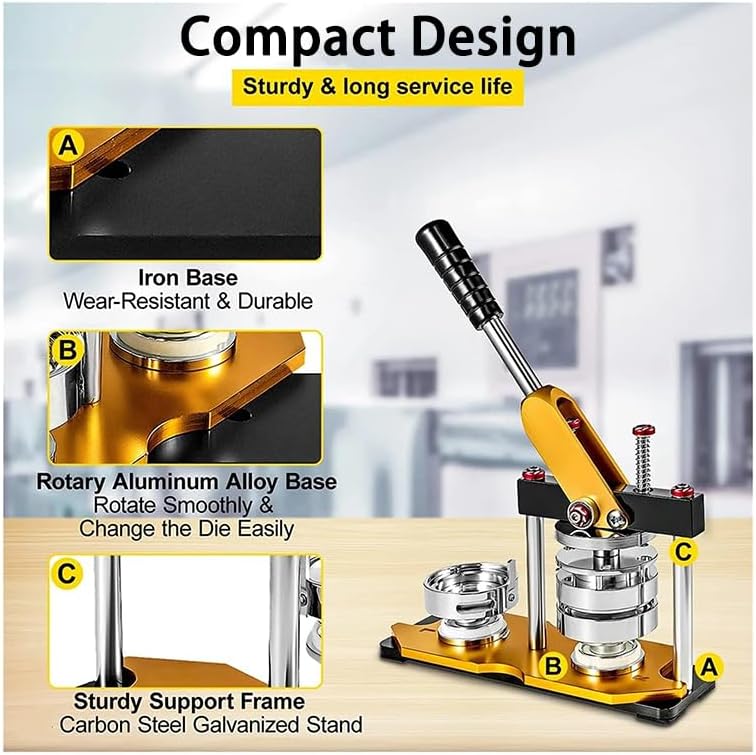 COSTRUZIONE PREMIUM IN ACCIAIO INOSSIDABILE: La macchina per bottoni rotondi da 58 mm è realizzata in acciaio inossidabile di alta qualità, garantendo durata, funzionamento regolare e una lunga durata. Viene fornito completo di 100 set di accessori per un utilizzo immediato. Facile da montare e utilizzare: progettata per i principianti, questa pressa per badge è dotata di una maniglia ergonomica e cuscinetti lisci per un funzionamento confortevole. Semplici passaggi di assemblaggio lo rendono accessibile a utenti di tutti i livelli. 【Precisione migliorata con supporto rotante】Dotata di una tecnologia di montaggio rotante migliorata, questa macchina garantisce ogni volta un allineamento preciso e una produzione di badge impeccabile, rendendola ideale per ottenere risultati di qualità professionale. APPLICAZIONI FAI DA TE VERSATILI: Perfetto per gli appassionati del fai da te, questo set ti consente di creare badge personalizzati per una varietà di scopi tra cui regali, eventi e progetti personali, incoraggiando la creatività e l'espressione personale. 【Sviluppa creatività e capacità motorie】 Uno strumento eccellente per i bambini, questa macchina per bottoni promuove lo sviluppo di abilità pratiche, immaginazione e creatività. Goditi il tuo tempo progettando e realizzando badge unici.