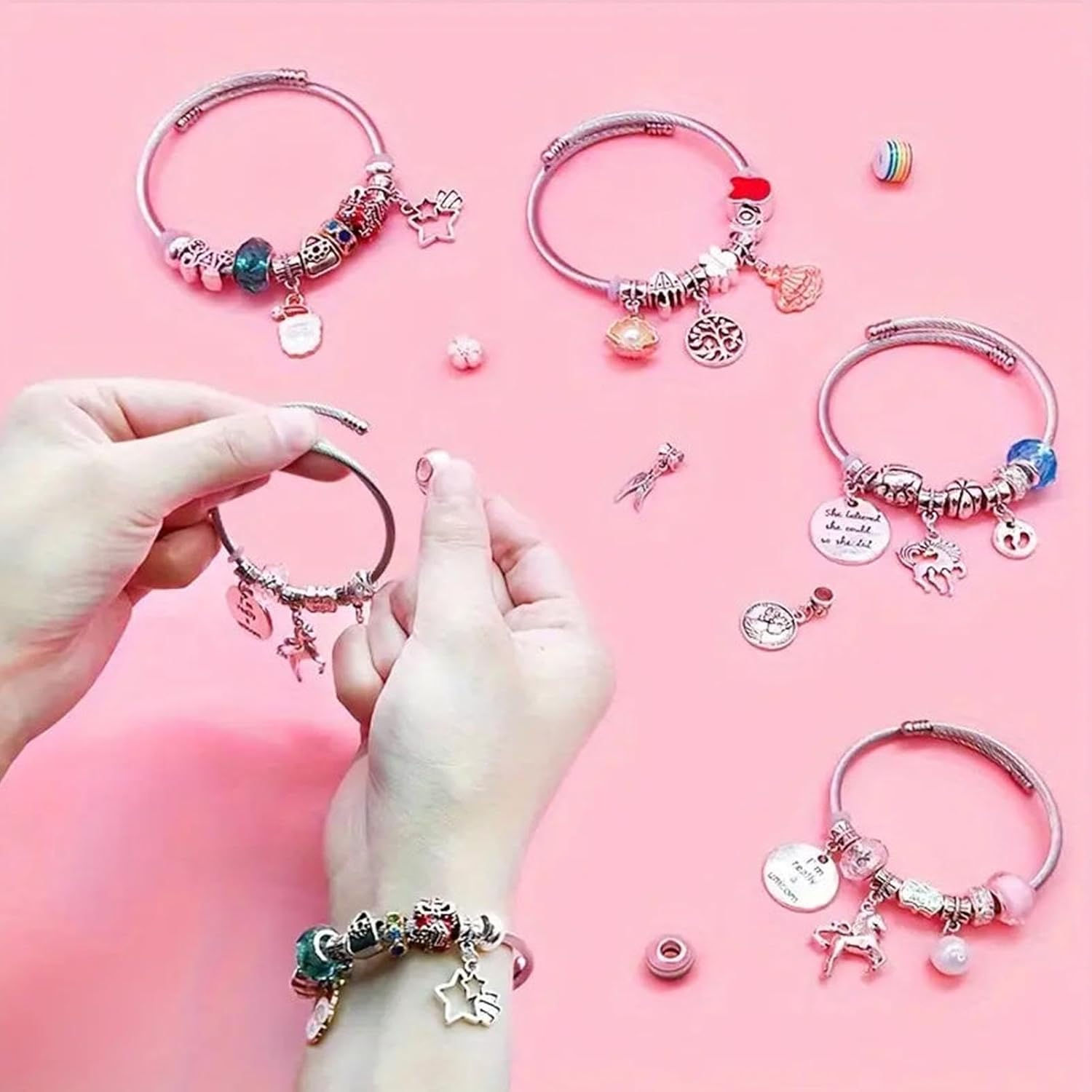 Stimola la creatività e l'immaginazione: sblocca la tua creatività e immaginazione con il nostro kit per creare gioielli per ragazze. Il set perfetto per l'artigianato fatto a mano, con tanti colori diversi, è lo strumento molto utile per passare il noioso in qualsiasi giorno della settimana. Crea un braccialetto unico adatto al tuo Comodità creativa: libera la tua creatività con il nostro kit per creare gioielli per ragazze. Ogni pezzo è finemente realizzato a mano con un'attenta attenzione ai dettagli. Le dimensioni compatte del kit lo rendono facile da organizzare e posizionare, perfetto per qualsiasi lavoro Sorprendi la amata: sorprendila con un regalo unico che permetterà loro di creare bellissimi gioielli per la famiglia, gli amici e i colleghi, rendendo indimenticabili compleanni, vacanze e occasioni speciali Facile da usare: non sono necessari strumenti o colla. Svita senza sforzo il coperchio terminale per rimuoverlo, le perline a tuo piacimento e stringi il coperchio terminale per ore di creatività senza soluzione di continuità Costruisci per durare: migliora le tue abilità nella creazione di gioielli con questo eccellente kit per la creazione di gioielli per ragazze realizzato con materiali di alta qualità con buona durata e robustezza. Mostra con facilità le tue idee su bracciali, collane e altri oggetti artigianali essendo resistenti all'usura e facili da esporre