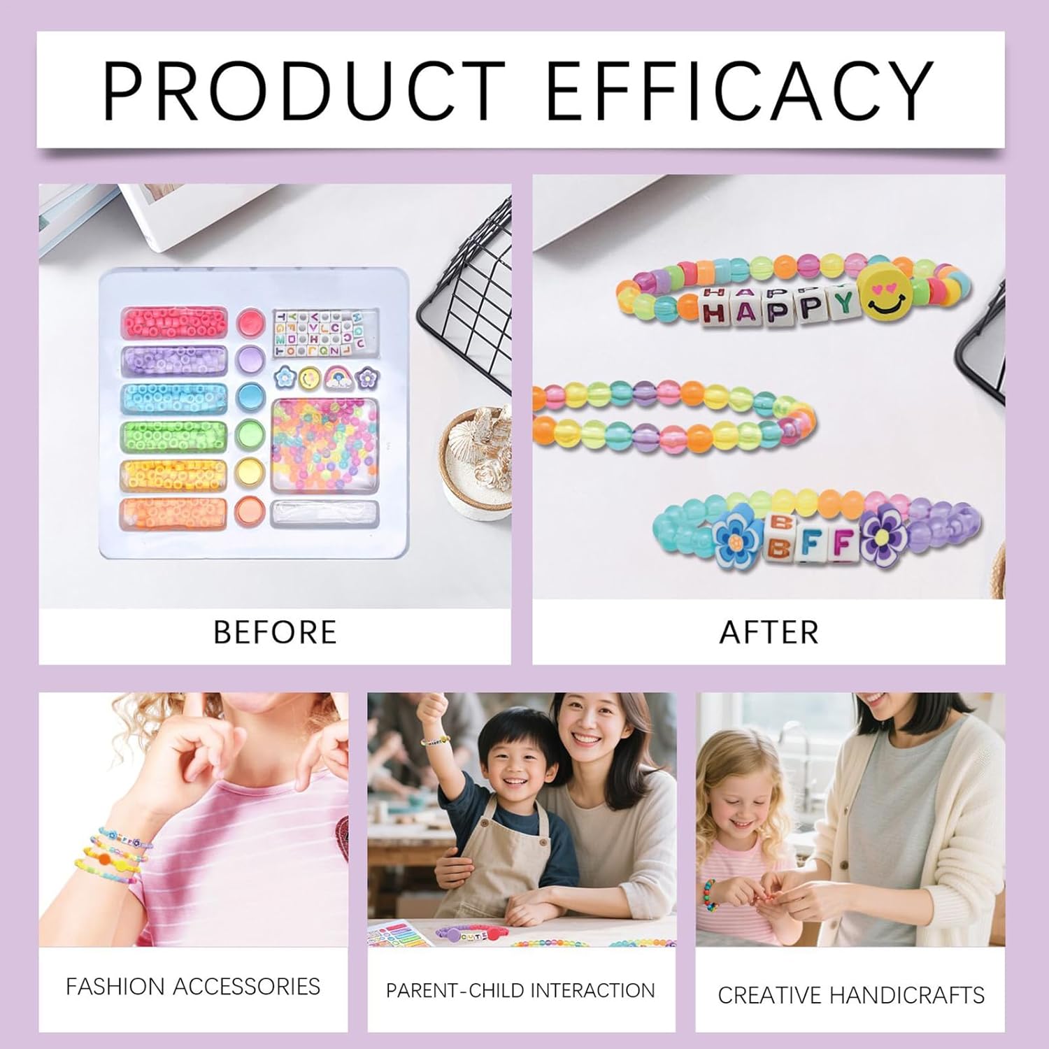 Creazione Ispiratrice: Il kit per braccialetti include 16 modelli di perle tematiche che incoraggiano la creatività attraverso l'abbinamento cromatico, aiutando a produrre braccialetti handmade adatti a regali o quotidiana, unendo 8 di filo brillanti e multiple scelte di nei progetti Migliora la coordinazione occhio-mano: Il kit per braccialetti favorisce il posizionamento preciso dei grani, migliorando la coordinazione occhio-mano mentre stimola la creatività dei bambini coinvolgendoli in un divertente processo creativo a casa o durante le festività Creatività Protetta: I fili flessibili appositamente studiati evitano tensioni sulle dita durante l'uso, rendendo questo kit braccialetti la scelta affidabile per genitori attenti alla sicurezza dei bambini nell'esplorazione della manualità creativa Design ordinato: Grazie ai suoi scomparti stratificati, il kit fornisce una soluzione di storage portatile che mantiene tutti i materiali ben suddivisi e accessibili, promuovendo ordine e convenienza ovunque nasca l'ispirazione creativa Esperienza Coinvolgente : Il kit creazione braccialetti perline crea momenti memorabili coinvolgendo le famiglie in un'attività collaborativa che rafforza i legami, migliora il riconoscimento di colori e forme e offre un'esperienza condivisa gioiosa in ambiente domestico